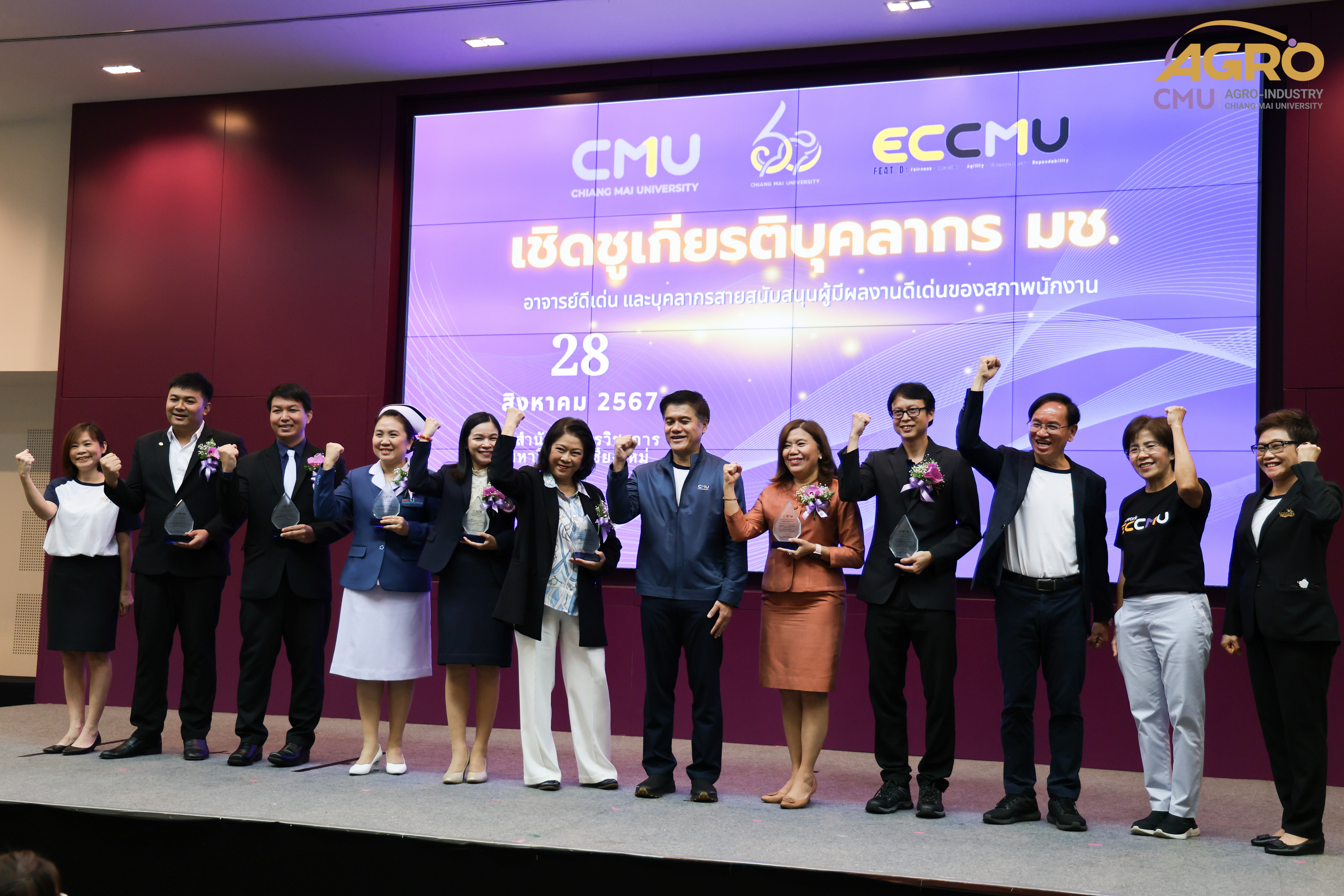เมื่อวันที่ 28 สิงหาคม 2567 รองศาสตราจารย์ ดร.กิตติศักดิ์ จันทนสกุลวงศ์ ผู้ช่วยคณบดี ผู้แทนคณบดีเข้าร่วมในพิธีมอบโล่รางวัล เชิดชูเกียรติบุคลากร มหาวิทยาลัยเชียงใหม่ อาจารย์ดีเด่น และบุคลากรสายสนับสนุนผู้มีผลงานดีเด่นของสภาพนักงาน พร้อมกันนี้ได้เป็นผู้แทนรับรางวัล โดยคณะอุตสาหกรรมเกษตร มีบุคลากรได้รับคัดเลือกให้เป็นผู้ได้รับรางวัล “อาจารย์ดีเด่นของสภาพนักงานมหาวิทยาลัยเชียงใหม่ ประจำปี พ.ศ.2567” คือ ศาสตราจารย์ ดร.พรชัย ราชตนะพันธุ์ สาขาวิทยาศาสตร์และเทคโนโลยี ณ ห้องประชุมทองกวาว 1 สำนักบริการวิชาการ มหาวิทยาลัยเชียงใหม่