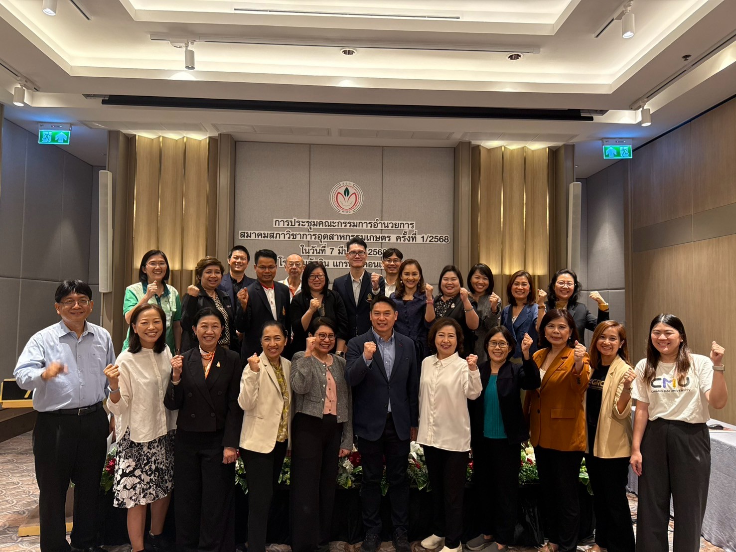 On March 7, 2025, the Faculty of Agro-Industry, Chiang Mai University, organized the AIAC Meeting 1/2568 at Asawin Grand Convention Hotel, Bangkok. On this occasion, Associate Professor Dr.Yuthana Phimolsiripol, Dean of the Faculty of Agro-Industry, Chiang Mai University, as the President of AIAC, presided over the opening ceremony, and moderated the meeting which was involved discussions and strengthening collaborations included interactive activities such as workshops and panel discussions. Additionally, the highlight of the important aims was to build social bridges engagement among members of Agro-Industry Academic Council Association (AIAC) from various universities.