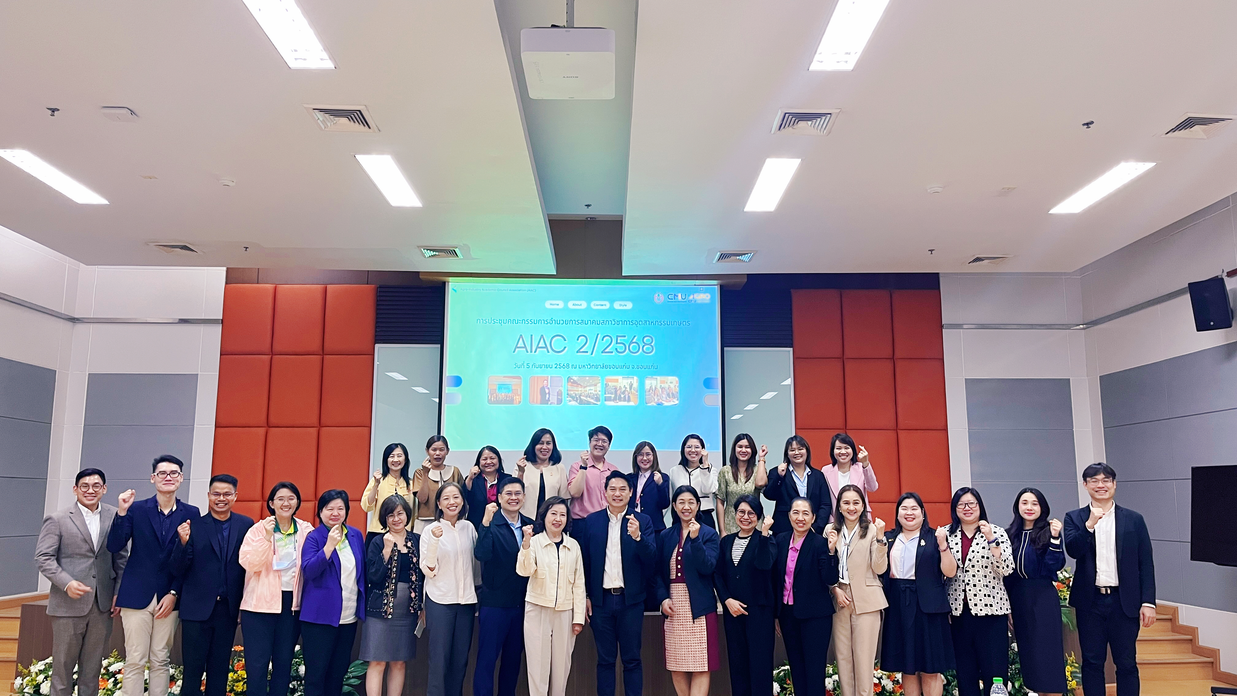 On 5–6 September 2025, Associate Professor Dr. Yuthana Phimolsiripol, Dean of the Faculty of Agro-Industry, Chiang Mai University, as President of the Association of Institutes of Agro-Industry Council (AIAC), together with Assoc. Prof. Dr. Sujinda Sriwattana, faculty member of the Faculty of Agro-Industry and Advisor to the Association, participated in the 2/2025 Executive Board Meeting of the Association of Institutes of Agro-Industry Council (AIAC), hosted by Khon Kaen University. The meeting aimed to strengthen academic collaboration, exchange knowledge, and foster joint research initiatives to enhance the capacity and academic excellence of member universities. The delegation was warmly welcomed by Assistant Professor Dr. Araya Chaoruangrit, Dean of the Faculty of Technology, Khon Kaen University, together with faculty members and staff.