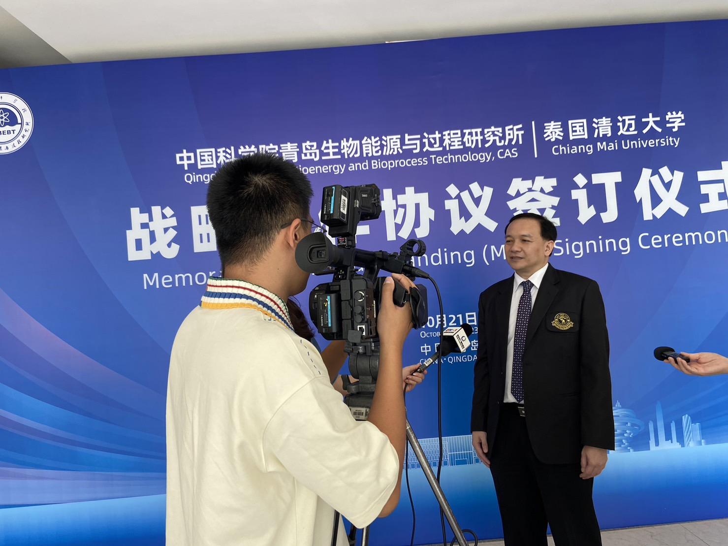 พร้อมกันนี้ ศาสตราจารย์ปฏิบัติ ดร. ชรินทร์ เตชะพันธุ์ ได้ให้สัมภาษณ์สื่อเกี่ยวกับความร่วมมือฯ ดังกล่าว จากนั้นเข้าเยี่ยมชม QIBEBT’s Pavilion การนำเสนอความก้าวหน้างานวิจัยที่มีร่วมกัน เยี่ยมชม Microbial Manufacturing Engineering Center และในช่วงบ่ายศึกษาดูงานที่ Qingdao Vland Biotech Inc.