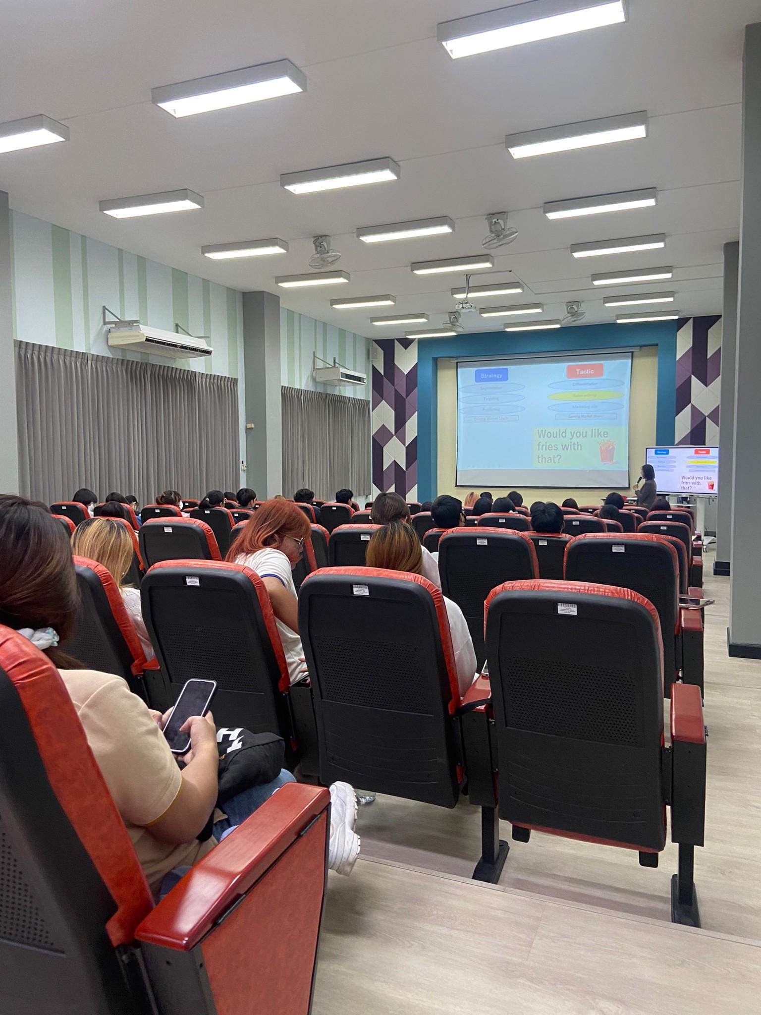 เมื่อวันที่ 4 ตุลาคม 2566 ผู้ช่วยศาสตราจารย์ ดร.สุทัศน์ สุระวัง รองคณบดีฝ่ายวิชาการ ให้การต้อนรับ Mr. Nagahiro Hisashi, General manager Ms. Sutharat Wirachapan, Recruitment manager จากบริษัท Yoshinoya Holdings Co., Ltd. พร้อมเข้าจัดบรรยายให้กับนักศึกษาในหัวข้อ “Marketing in Food-service Business” ณ ห้อง 1-111 อาคาร 1 เวลา 09.00-12.00 น. เป็นการอบรมให้ความรู้แก่นักศึกษาที่มีความสนใจศึกษาหรือต้องการทำงาน ณ ประเทศญุ่ปุ่น นอกจากนี้ยังให้ความรู้เกี่ยวกับอุตสาหกรรมอาหารญี่ปุ่นเพื่อนำองค์ความรู้มาประยุกต์ใช้ในอนาคต ทางคณะอุตสาหกรรมเกษตรขอขอบพระคุณ Mr. Nagahiro Hisashi, General manager Ms. Sutharat Wirachapan, Recruitment manager จากบริษัท Yoshinoya Holdings Co. เป็นอย่างสูง