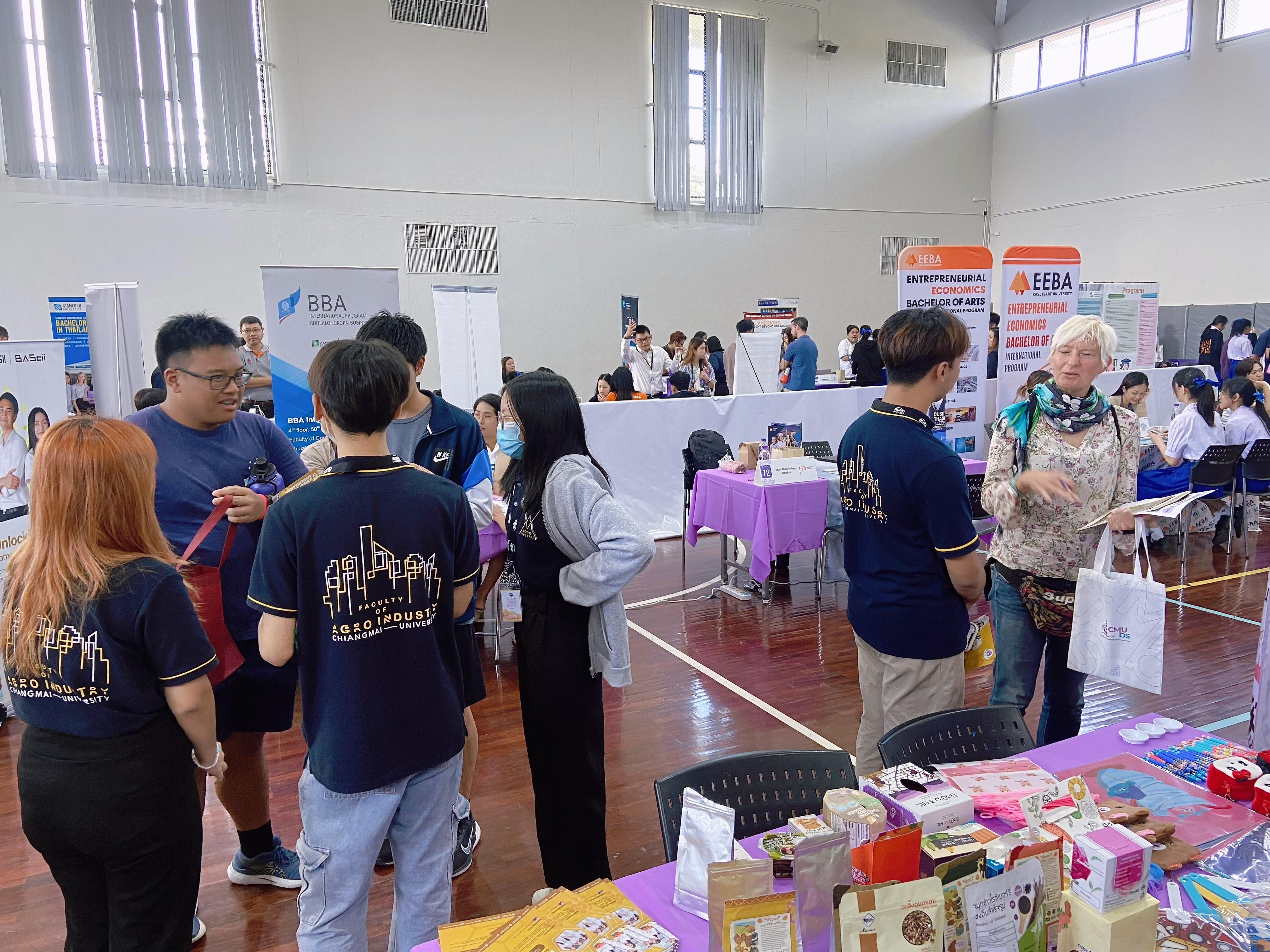 On 2 November 2023, at 10.00 am. Faculty of Agro-industry participated in the CMIS Thai University International Program Fair 2023, presenting 6 bachelor’s degree programs provided by our faculty, and promoting especially on International Program in Food Science and Technology. The event attracts significant interest from parents and high school students who tend to pursue Bachelor’s degree from Faculty of Agro-industry. They come from wide array of schools in Chiangmai. For example, Chiangmai International school, The Prince Royal’s College, Ambassador Bilingual School, etc. We also informed them about the admission news and procedures that will be done through TCAS, and CMU-IPAS system (for international program). We hope to create opportunities in education for students and for our faculty to grow.
