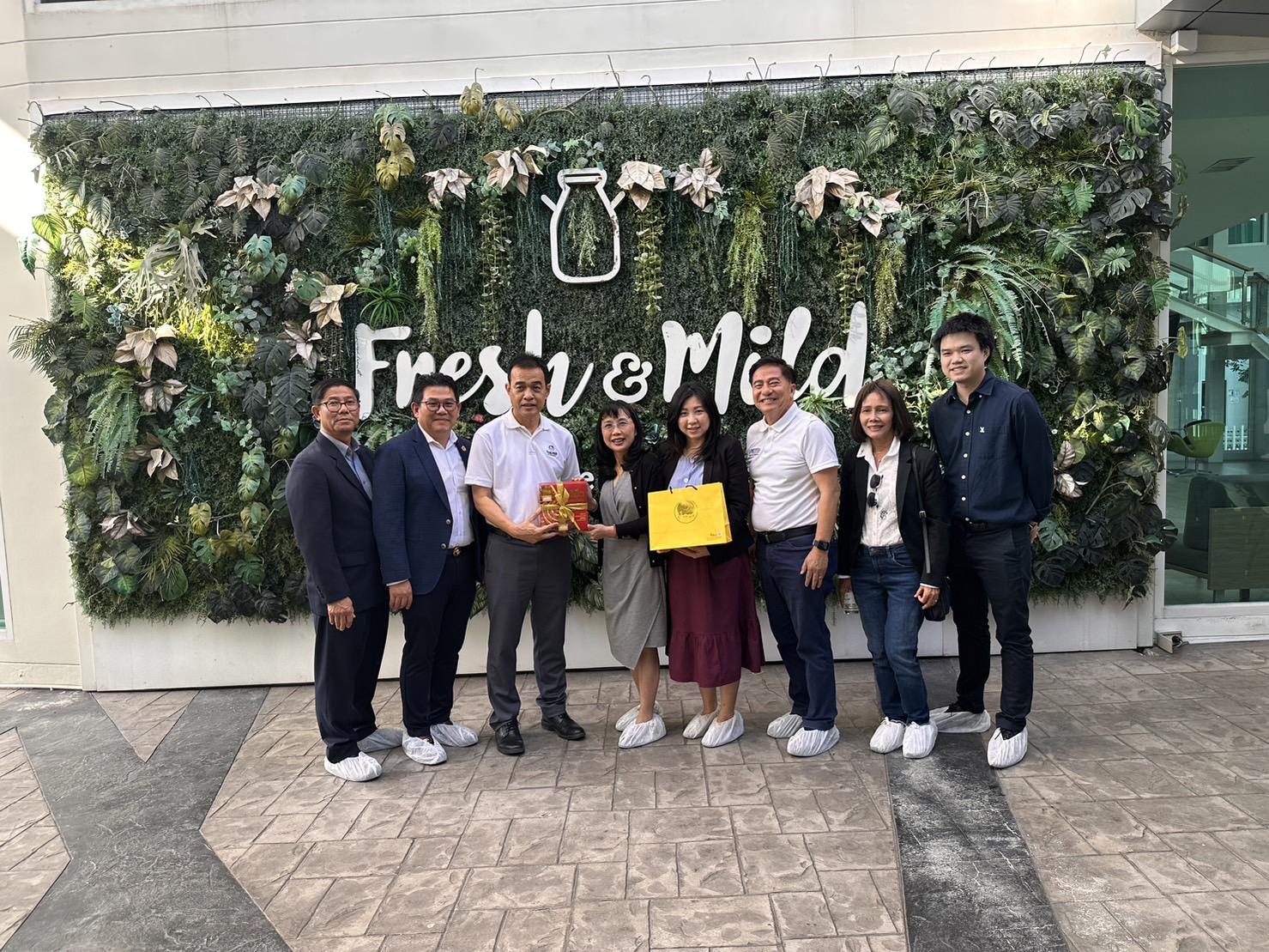 ในวันที่ 21 ธันวาคม 2566 ผู้ช่วยศาสตราจารย์ ดร.สุจินดา ศรีวัฒนะ คณบดี คณะอุตสาหกรรมเกษตร รองศาสตราจารย์ ดร.พิชญา พูลลาภ รองคณบดี และ ผู้ช่วยศาสตราจารย์ ดร.สรญา เขียวนาวาวงศ์ษา ให้การต้อนรับ อาคันตุกะจาก Khmer Fresh Milk Co.,Ltd. นำโดย ดร.สมภพ ศักดิ์พันธ์พนม กรรมการอำนวยการคณะอุตสาหกรรมเกษตร และทีมงานจากบริษัท Asset Pro Management Co.,Ltd. ในโอกาสมาเยี่ยมคณะอุตสาหกรรมเกษตร เพื่อหารือความเป็นไปได้ในการสร้างความร่วมมือในอนาคต พร้อมเข้าร่วมเยี่ยมชมโรงงานต้นแบบคณะอุตสาหกรรมเกษตร และได้เดินทางเข้าเยี่ยมชมโรงงานการผลิต บริษัท ChiangMai Freshmilk จำจัด ตำบลท่าวังตาล อำเภอสารภี จังหวัดเชียงใหม่