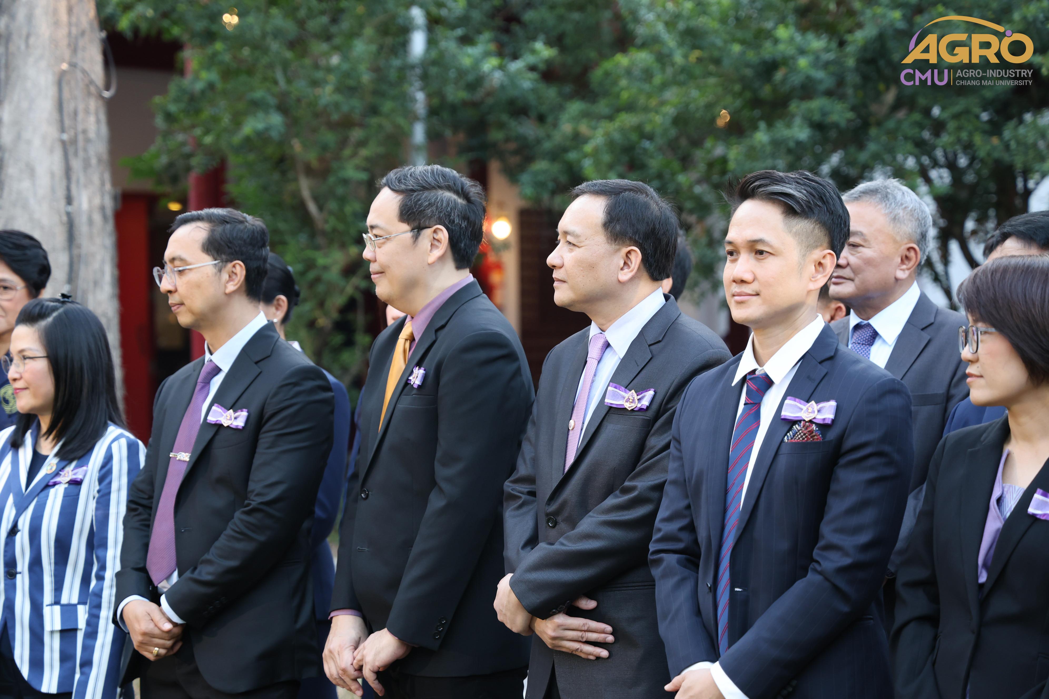เมื่อวันอาทิตย์ที่ 28 มกราคม 2567 ผู้ช่วยศาสตราจารย์ ดร.สุจินดา ศรีวัฒนะ คณบดีคณะอุตสาหกรรมเกษตร พร้อมด้วยผู้บริหารและบุคลากรคณะอุตสาหกรรมเกษตร ร่วมมอบช่อดอกไม้ เพื่อแสดงความยินดีกับ ศาสตราจารย์ปฏิบัติ ดร.ชรินทร์ เตชะพันธุ์ รองอธิการบดีมหาวิทยาลัยเชียงใหม่ ในโอกาสที่ได้รับการประกาศเกียรติคุณให้เป็น นักศึกษาเก่ามหาวิทยาลัยเชียงใหม่ดีเด่น ประจำปี 2566 สาขาวิชาการ ณ ศาลาธรรม มหาวิทยาลัยเชียงใหม่