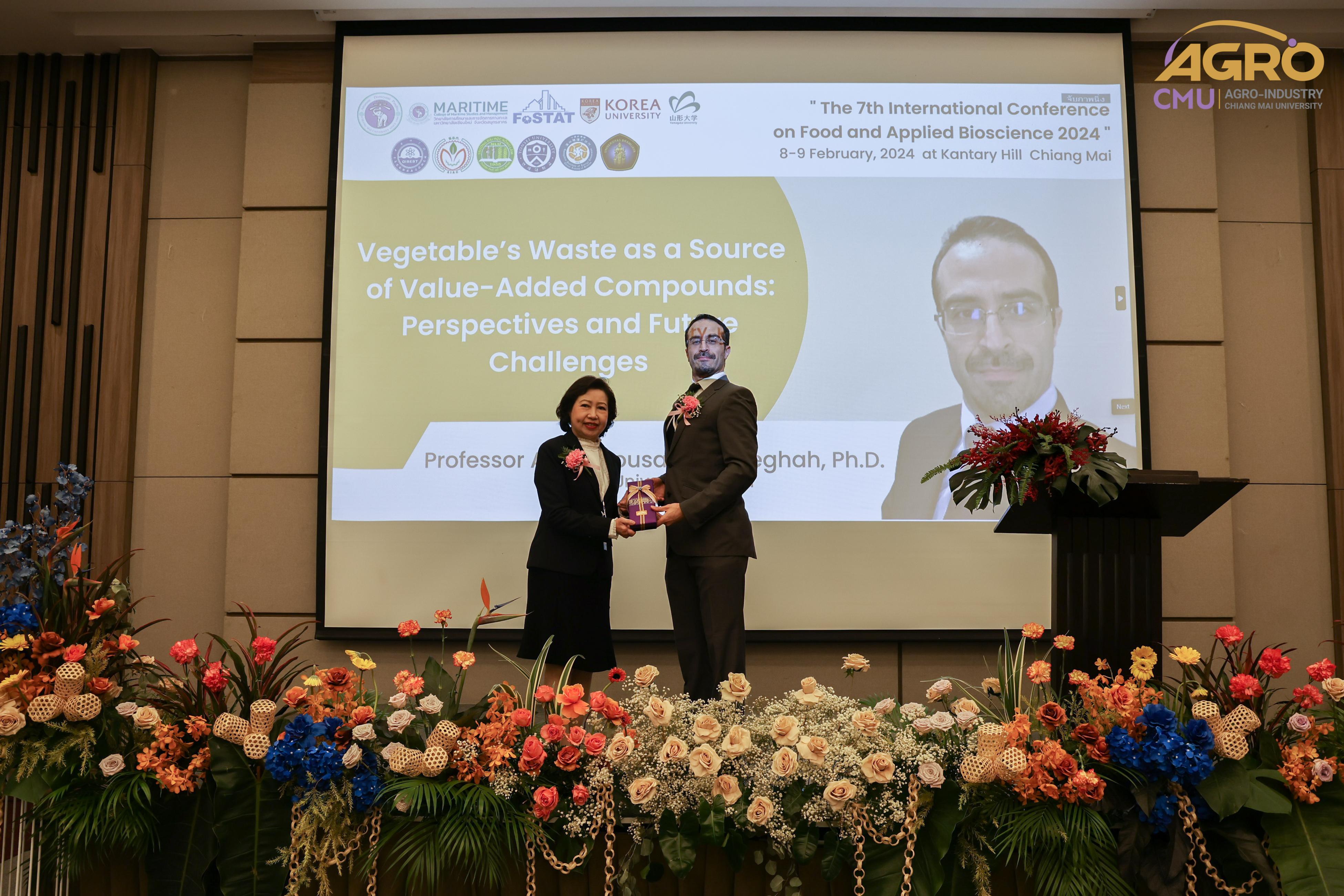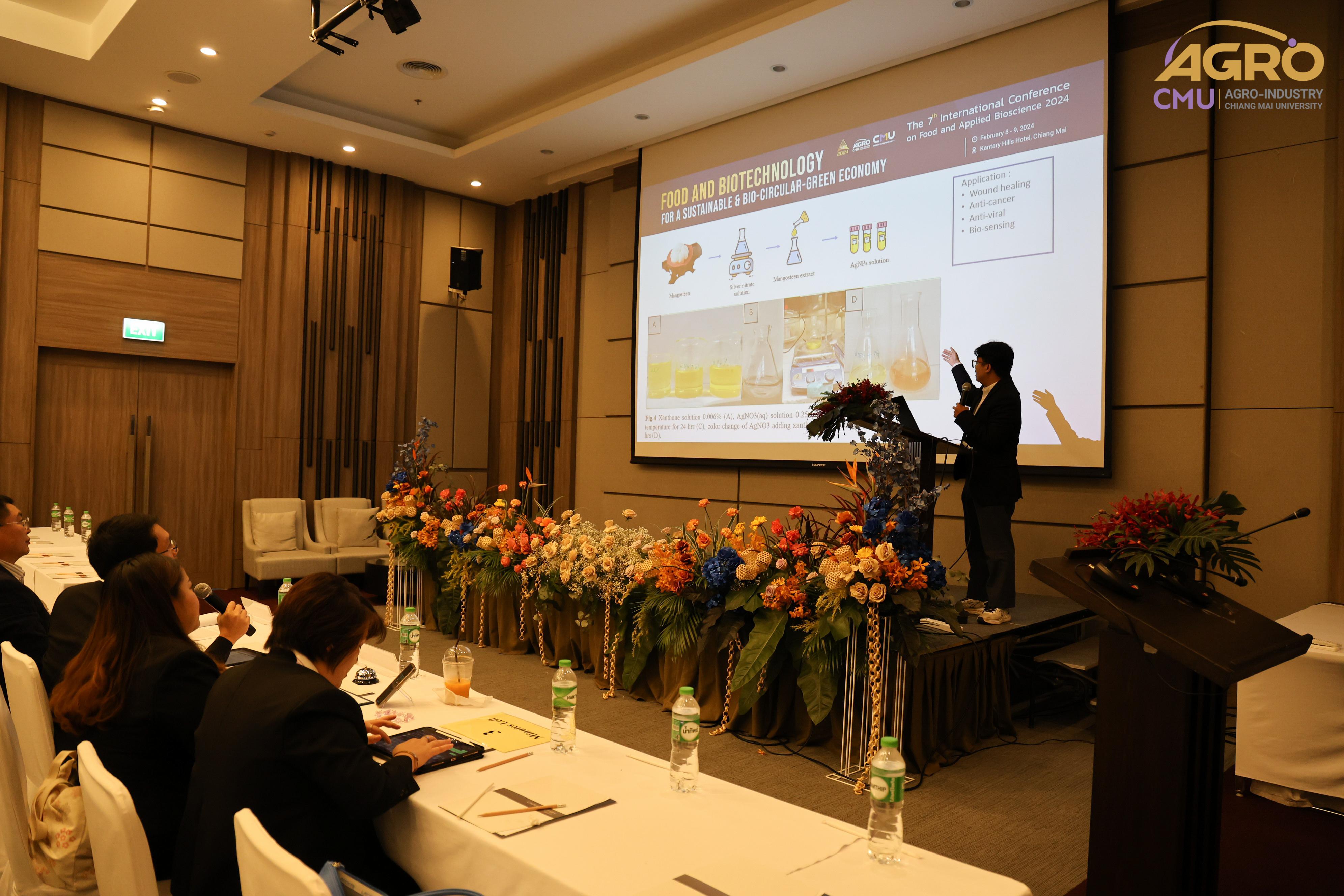 On Thursday, February 8, 2567, Professor of Practice Charin Techapun Ph.D., Vice President representing the President of Chiang Mai University, presided over the opening ceremony of the 7th International Conference on Food and Applied Bioscience 2024: Food and Biotechnology for a sustainable and Bio-Circular-Green Economy. This conference was organized by the Faculty of Agriculture, Chiang Mai University, in collaboration with the College of Marine Studies and Management, Chiang Mai University; Food Science and Technology Association of Thailand (FoSTAT); Korea University; Yamagata University; Qingdao Institute of Bioenergy and Bioprocess Technology; Agro-Industry Academic Council Association (AIAC); Nong Lam University; Yonsei University; GuangZhou Institute of Energy Conversion, Chinese Academy of Sciences; and Universitas Brawijaya during February 8-9, 2567, at Kantary Hills, Chiang Mai. The conference aimed to disseminate academic knowledge and agricultural industry innovations internationally, fostering knowledge exchange, research experiences, and industrial advancements in agriculture to promote collaboration within the agricultural industry network among academics, researchers, relevant government agencies, and the general public. Approximately 200 people registered for the conference, and there were six keynote speakers from five countries: Poland, China, South Korea, Japan, and Thailand, as well as invited speakers from various countries including Malaysia, Indonesia, Spain, and China.