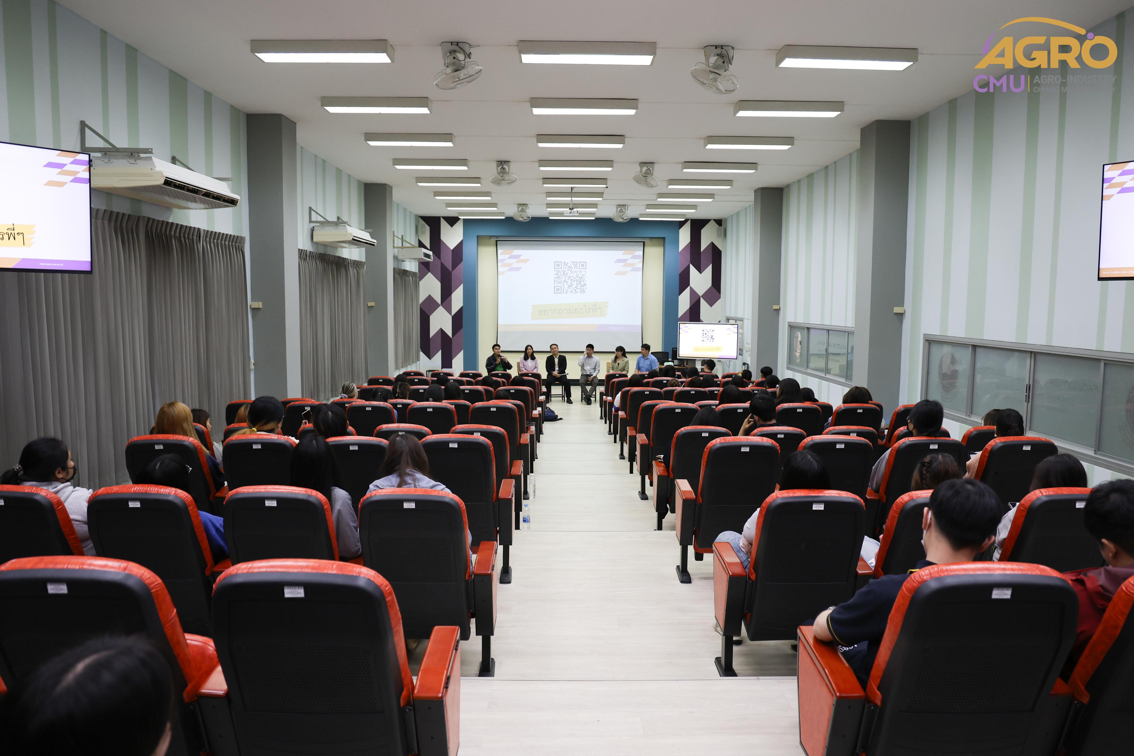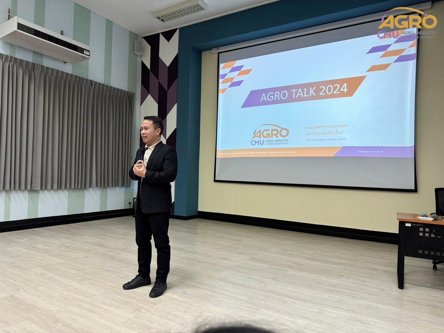เมื่อวันที่ 19 กุมภาพันธ์ 2567 ที่ผ่านมา สำนักวิชาอุตสาหกรรมเกษตร ได้จัดกิจกรรม “AGRO TALK 2024” เพื่อให้นักศึกษาได้เห็นถึงแนวทางการประกอบอาชีพในอนาคต การเตรียมความพร้อมก่อนเข้าสู่วิชาชีพ และเสริมสร้างความสัมพันธ์อันดีระหว่าง ศิษย์ปัจจุบัน ศิษย์เก่า และบุคลากรของคณะฯ โดยในกิจกรรมนี้ได้รับเกียรติจากรุ่นพี่ศิษย์เก่าหลากหลายสาขาอาชีพในการเป็นวิทยากรและเข้าร่วมการเสวนา จำนวน 5 ท่าน ได้แก่ 1) พี่ต้น (เฉลิมพล ใหม่คำ) ผู้จัดการโรงงานแปรรูปเนื้อไก่ ลำปาง บริษัท ซีพีเอฟ (ประเทศไทย) จำกัด (มหาชน) 2) พี่โต้ (ยุทธพงษ์ เรืองสิริ) รองกรรมการผู้จัดการบริษัท เชียงใหม่ เฮลตี้ โปรดักส์ จำกัด 3) พี่แนน (เบญญาภา ภิญโญฤทธิ์) Medical Representative (บริษัท ลอรีอัล ประเทศไทย จำกัด) 4) พี่เฟิร์น (ธันย์ชนก ยอเสน) นักวิทยาศาสตร์ ห้องปฏิบัติการกลาง คณะเกษตรศาสตร์ มหาวิทยาลัยเชียงใหม่ และ 5) พี่โดนัท (ณัชพล อยู่เย็น) นักวิชาการส่งเสริมการเกษตรปฏิบัติการ สำนักงานเกษตรจังหวัดเชียงใหม่