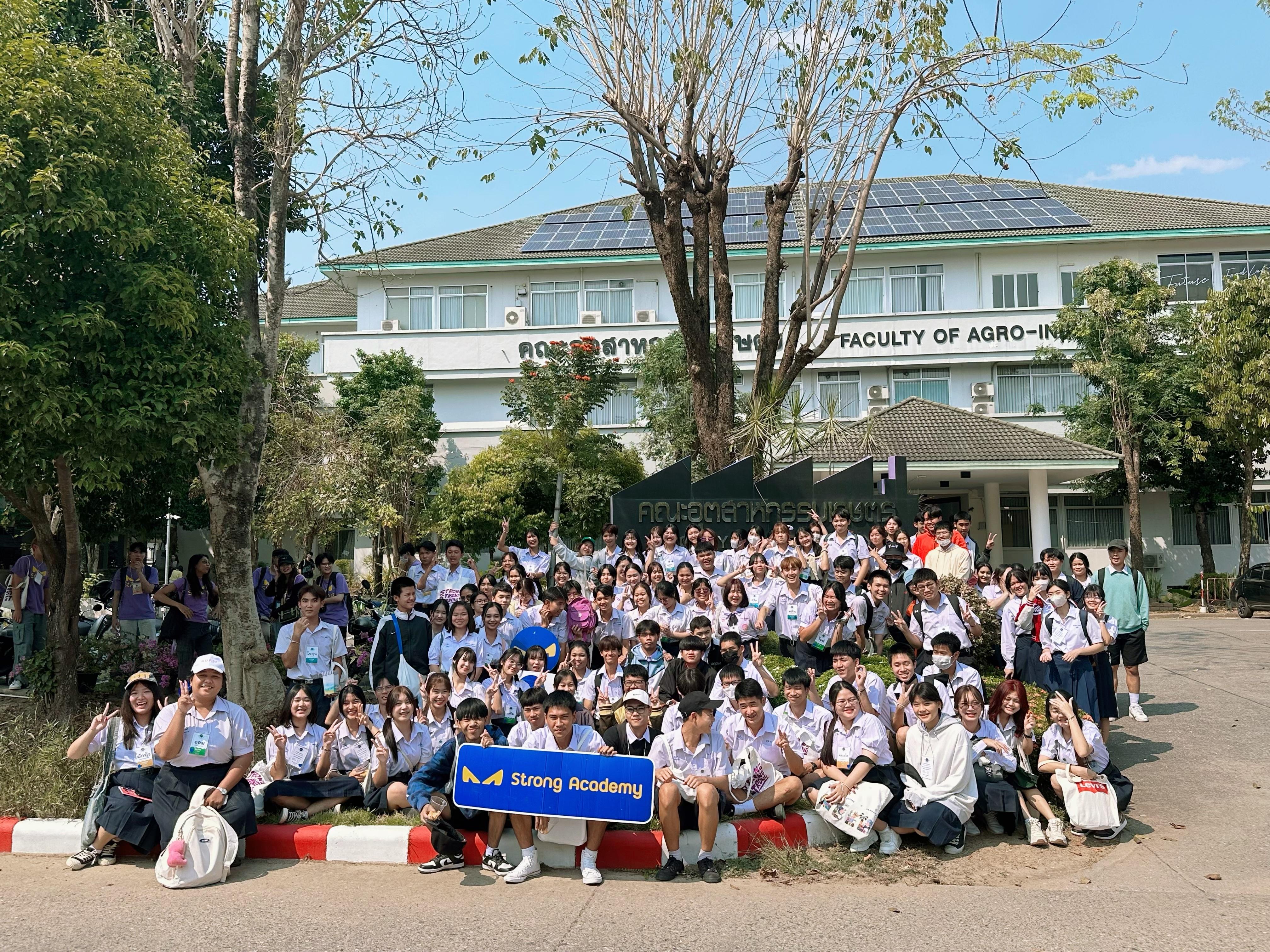 เมื่อวันศุกร์ที่ 29 มีนาคม 2567 คณะอุตสาหกรรมเกษตร ให้การต้อนรับ น้อง ๆ นักเรียนชั้นมัธยมศึกษาตอนปลายจากโรงเรียนทั่วประเทศ จำนวน 102 คน และคณะครูผู้ดูแล จาก ค่ายกวดวิชากับสถาบันกวดวิชา Strong Academy โดยมีผู้ช่วยศาสตราจารย์ ดร.สุทัศน์ สุระวัง รองคณบดีฝ่ายวิชาการ ให้การต้อนรับและให้ข้อมูลหลักสูตร 7 สาขาวิชา เพื่อเสริมประสบการณ์การเรียนรู้ และสร้างแรงบันดาลใจในการเลือกศึกษาต่อในระดับอุดมศึกษา โดยทางคณะอุตสาหกรรมเกษตร ได้เตรียมให้น้อง ๆ ได้เข้าเยี่ยมชมห้องปฏิบัติการ ฐานกิจกรรมเปิดโลก Biotech และฐาน Food Biotechnology กับสาขาวิชาเทคโนโลยีชีวภาพฯ อีกด้วย