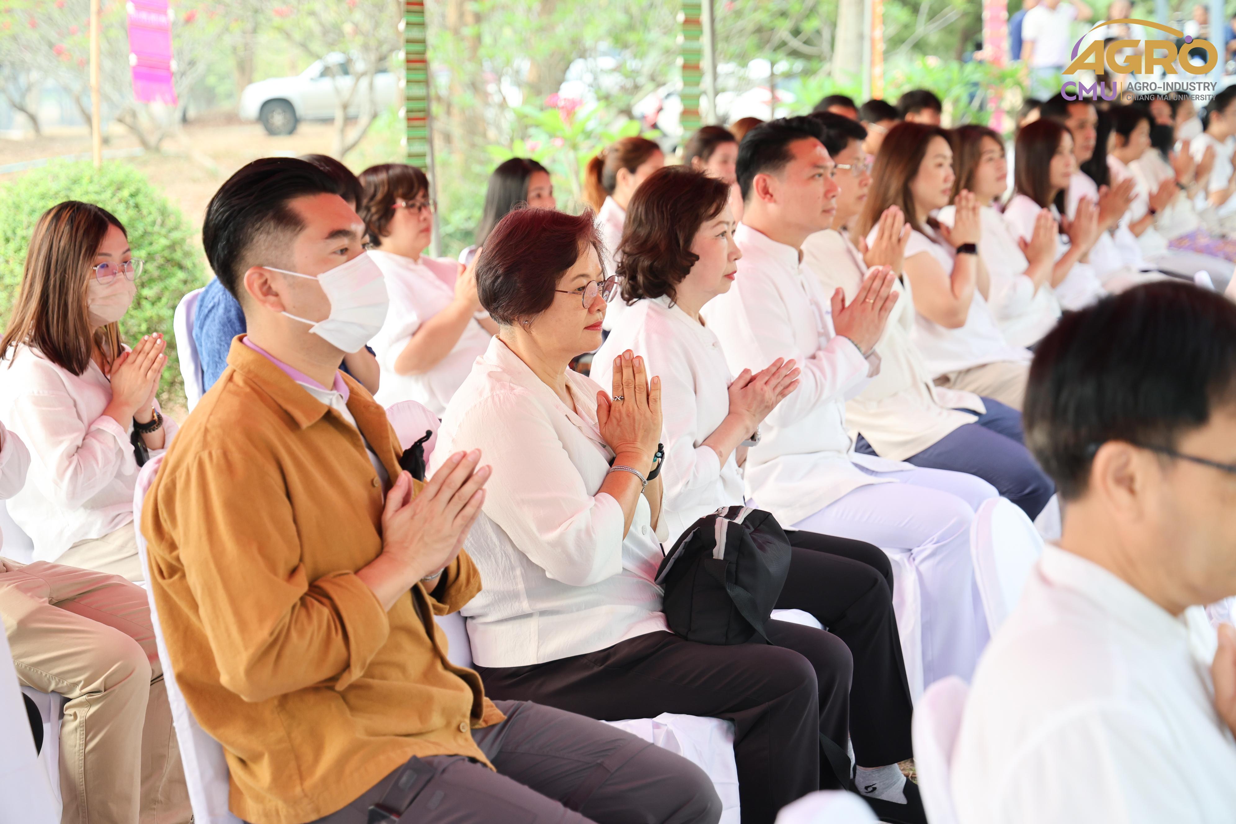 เมื่อวันที่ 7 พฤษภาคม 2567 ผู้ช่วยศาสตราจารย์ ดร.สุจินดา ศรีวัฒนะ คณบดีคณะอุตสาหกรรมเกษตร พร้อมด้วย นางสาวปิยะนุช สวัสดี เลขานุการคณะอุตสาหกรรมเกษตร ร่วมพิธีบวงสรวงบอกกล่าวเทพาอารักษ์ประจำองค์พระพุทธแสนญาติ ณ หอพระพุทธแสนญาติ ศูนย์วิจัย บูรณาการ สาธิตและฝึกอบรมนวัตกรรมการเกษตร (ไร่แม่เหียะ) คณะเกษตรศาสตร์