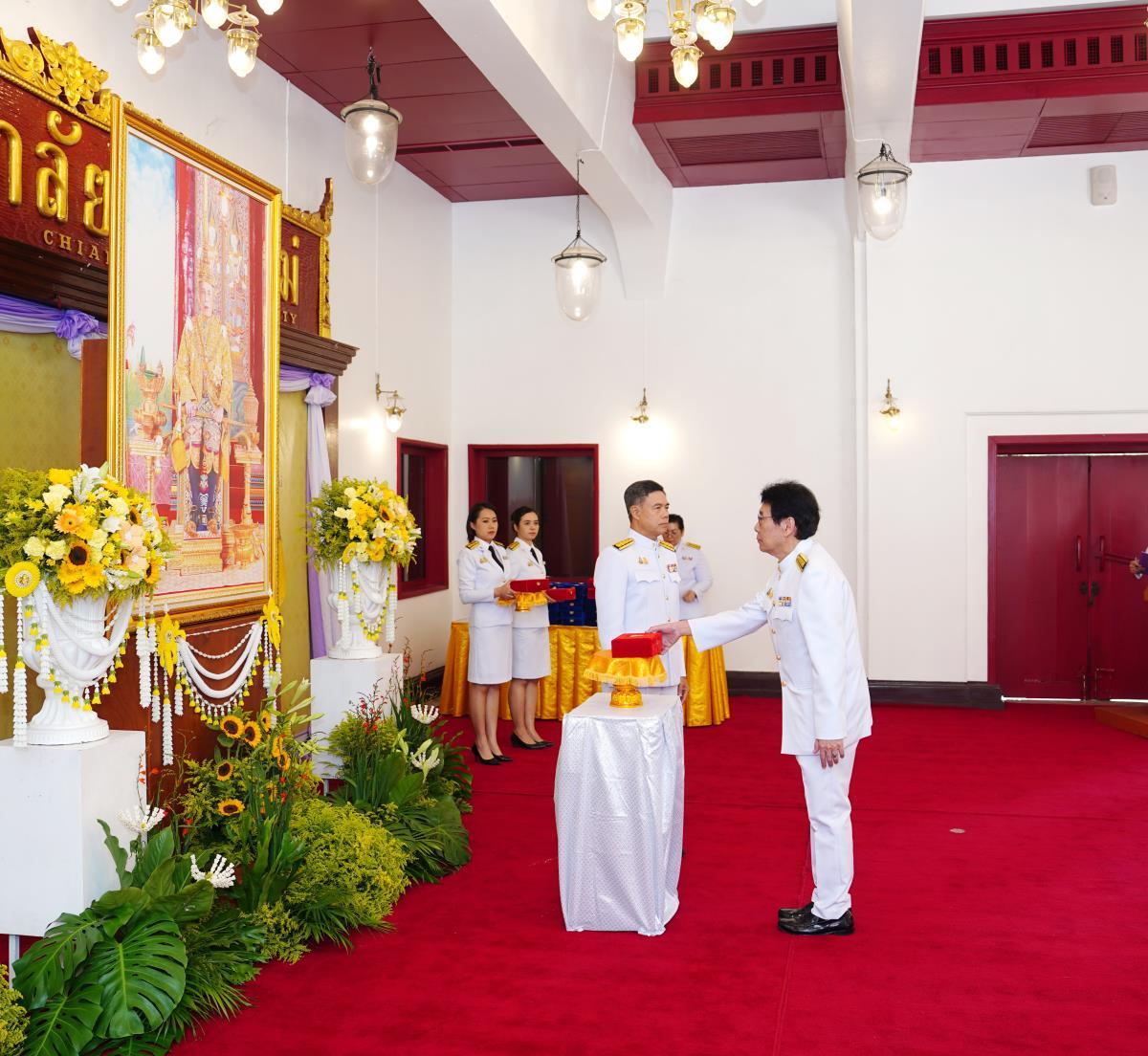 พิธีรับพระราชทานเครื่องราชอิสริยาภรณ์ชั้นสายสะพาย ประจำปี 2565 และ 2566 หน้าพระบรมฉายาลักษณ์พระบาทสมเด็จพระเจ้าอยู่หัว