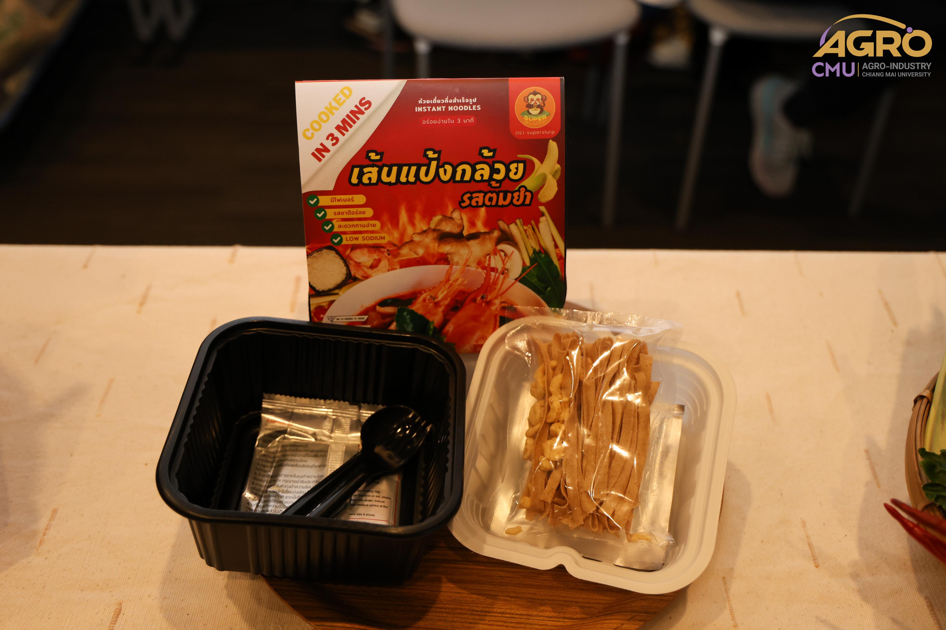 ผลิตภัณฑ์: เส้นแป้งกล้วยคืนตัวเร็ว รสต้มยำ (Namwa Banana Instant Noodle)