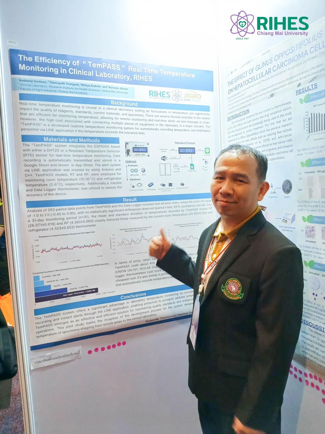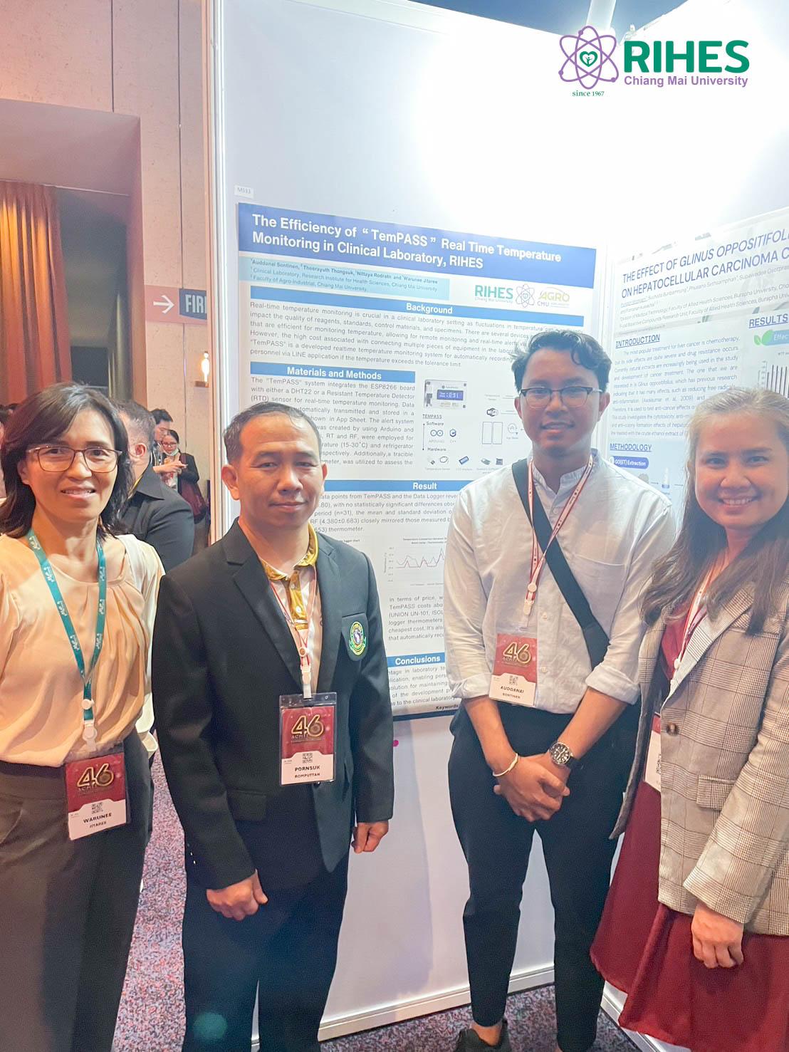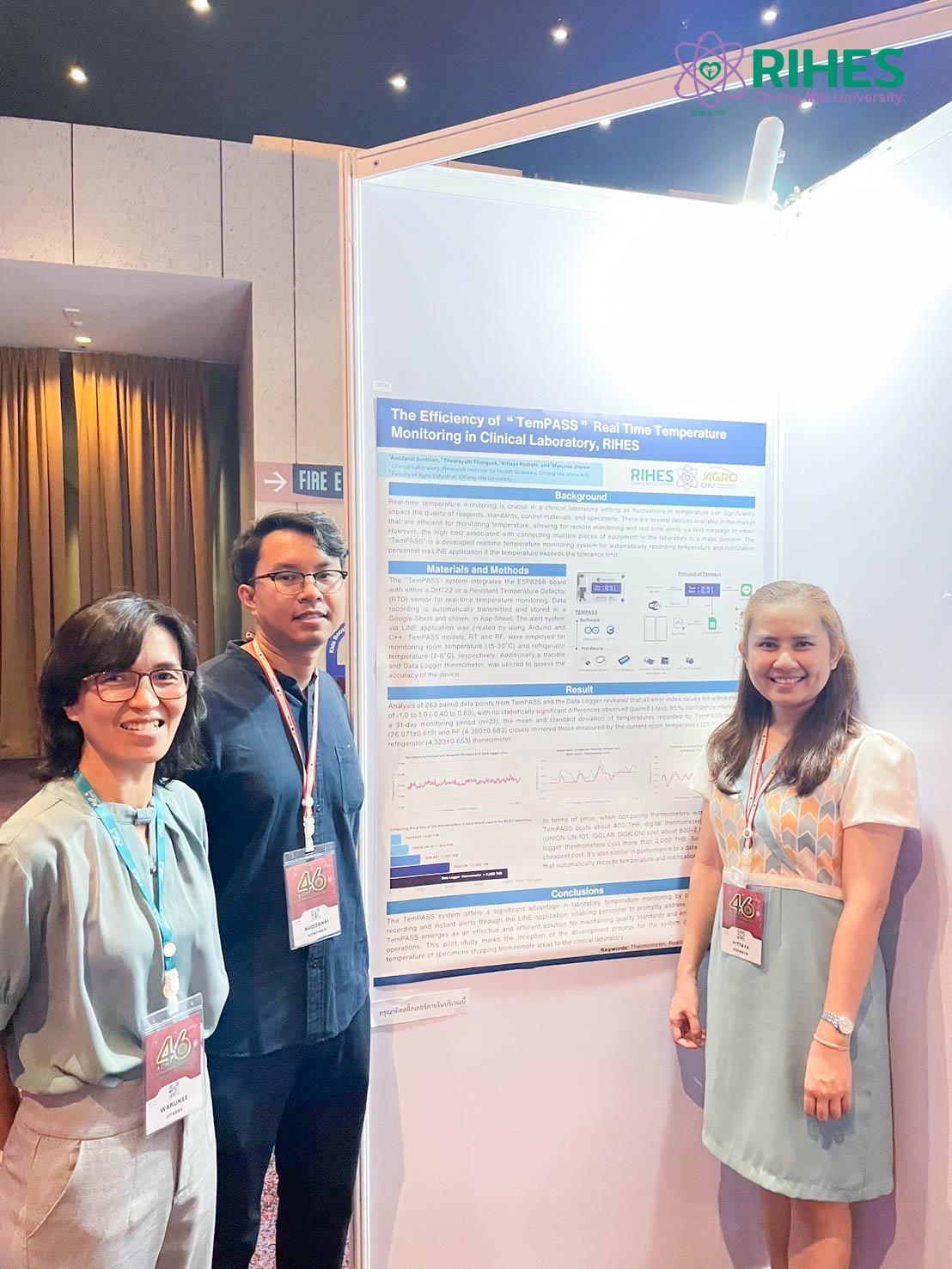 ในหัวข้อ “Medical Technologists: Power for a Better Tomorrow”และได้นำเสนอผลงานวิชาการแบบ Poster Presentation ในหัวข้อเรื่อง “The efficiency of TemPASS' Real Time temperature monitoring system in Clinical Laboratory, RIHES”
