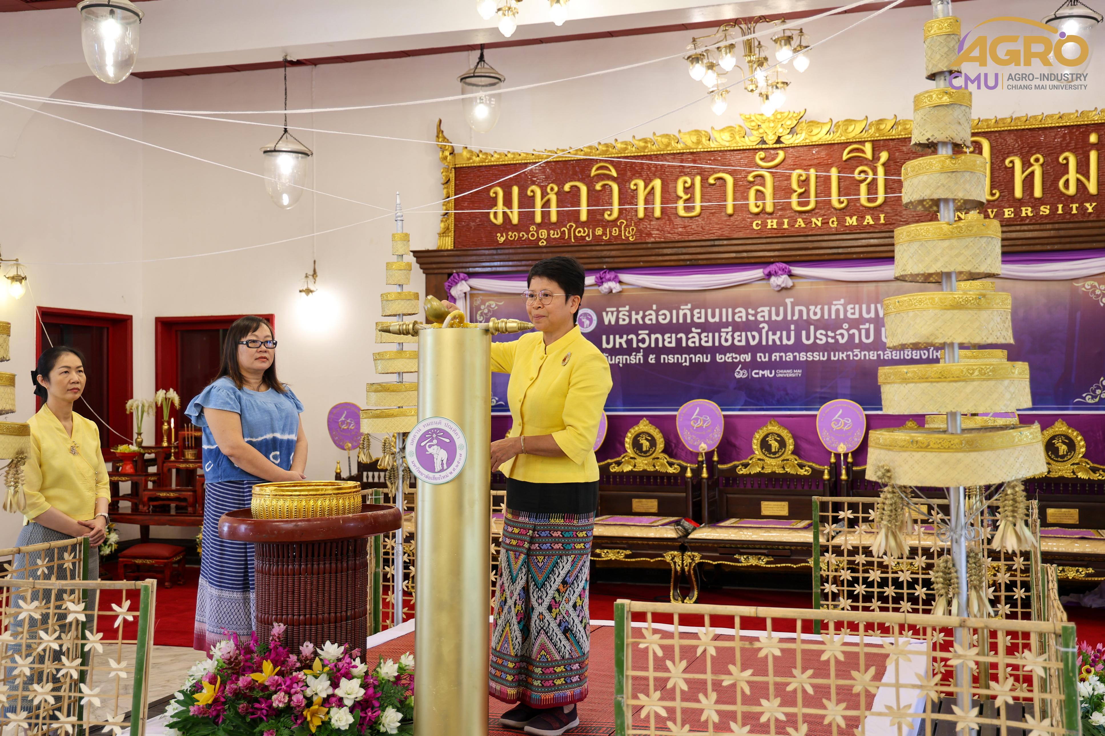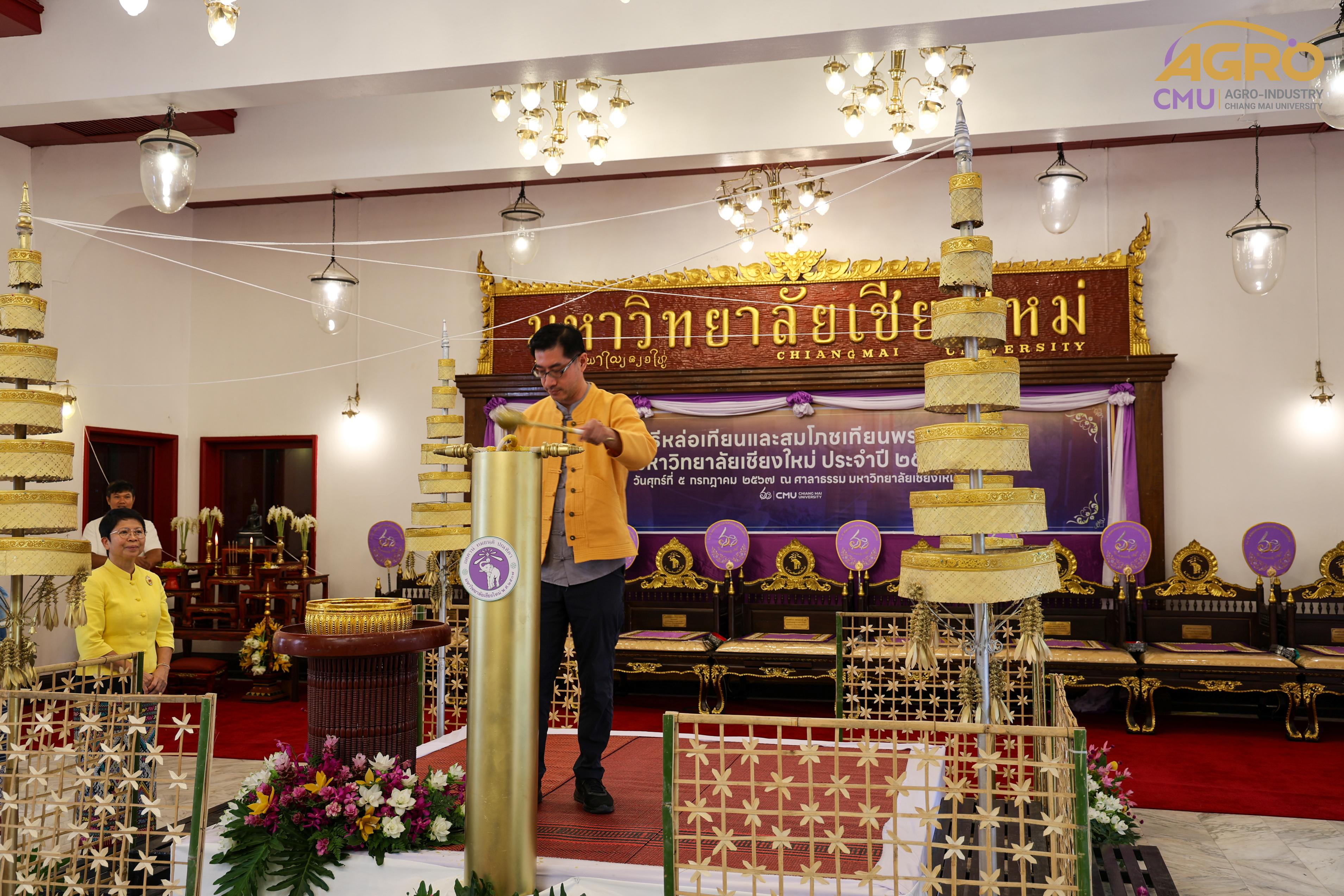 เมื่อวันศุกร์ที่ 5 กรกฎาคม 2567 รองศาสตราจารย์ ดร.พิสิฐ ศรีสุริยจันทร์ รองคณบดีคณะอุตสาหกรรมเกษตร ผู้แทนคณบดี พร้อมด้วยผู้บริหารและบุคลากร เข้าร่วมพิธีหล่อเทียนและสมโภชเทียนในวันเข้าพรรษา ของมหาวิทยาลัยเชียงใหม่ ประจำปี 2567 ณ ศาลาธรรม มหาวิทยาลัยเชียงใหม่ เพื่อเป็นการทำนุบำรุงพระพุทธศาสนาและส่งเสริมประเพณีอันดีงามสืบไป