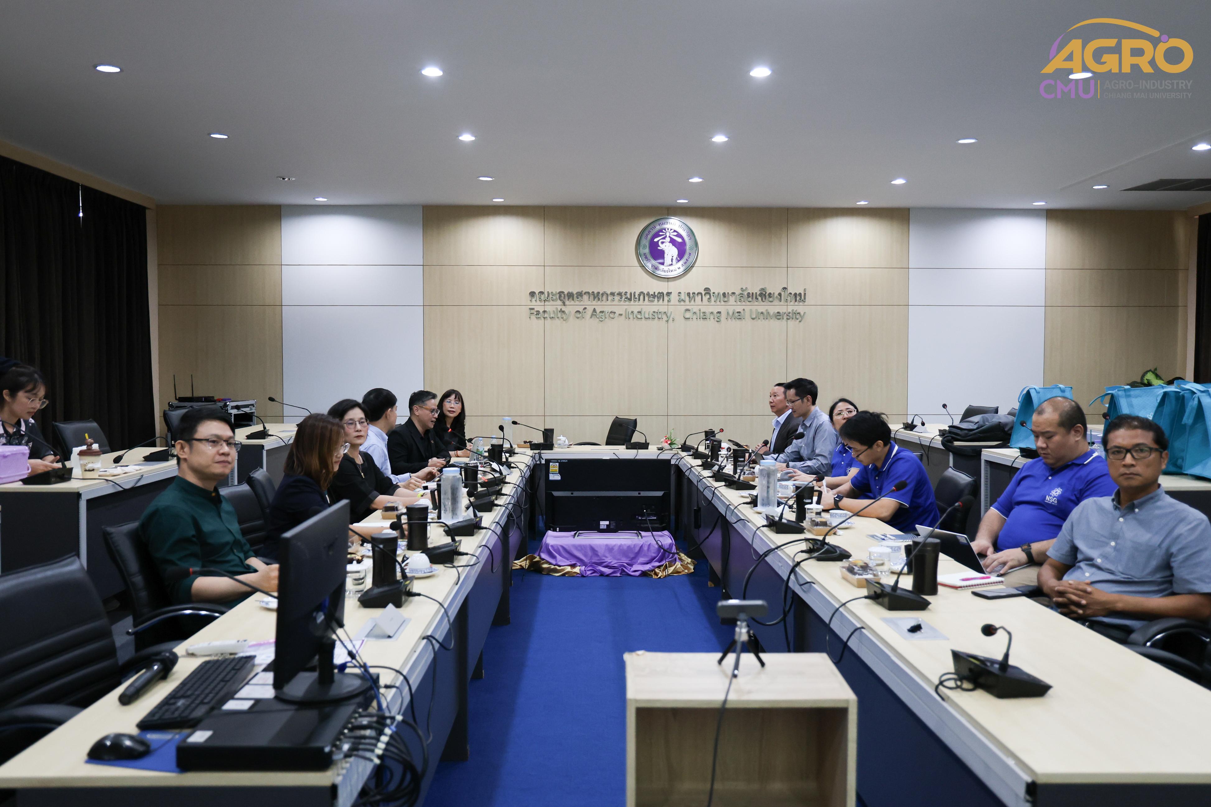 On July 10, 2024, Associate Professor Dr. Niramol Utmaang, Associate Dean of the Faculty of Agro-Industry, along with faculty members, welcomed distinguished guests from Namsian Group Co., Ltd. on the occasion of participating in the TECHINNOVATION event. Additionally, discussions were held regarding research projects and various collaborations in Meeting Room 3, Faculty of Agro-Industry Office Building.