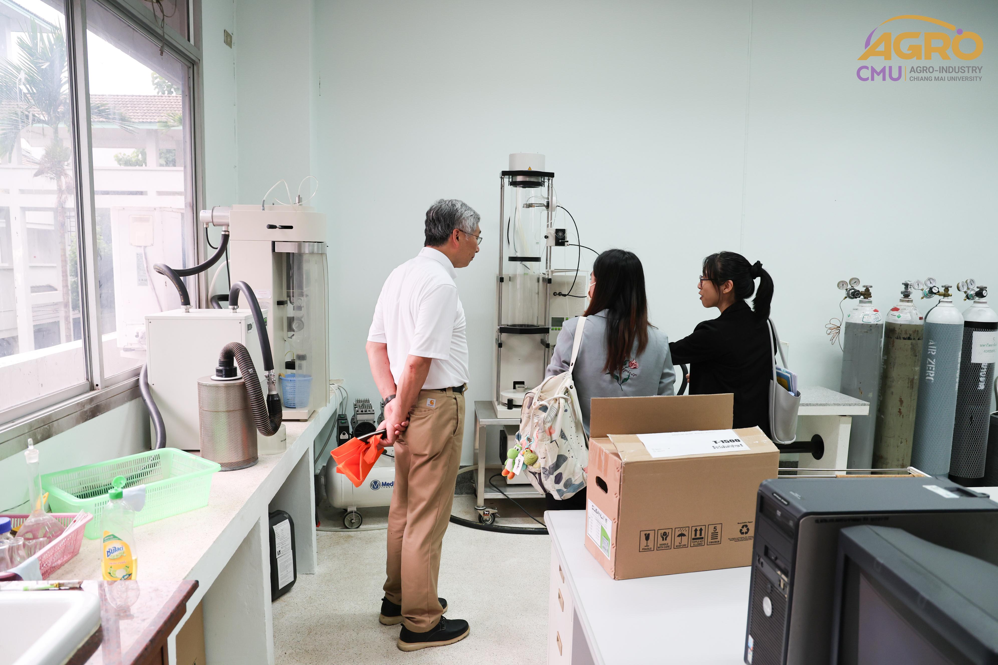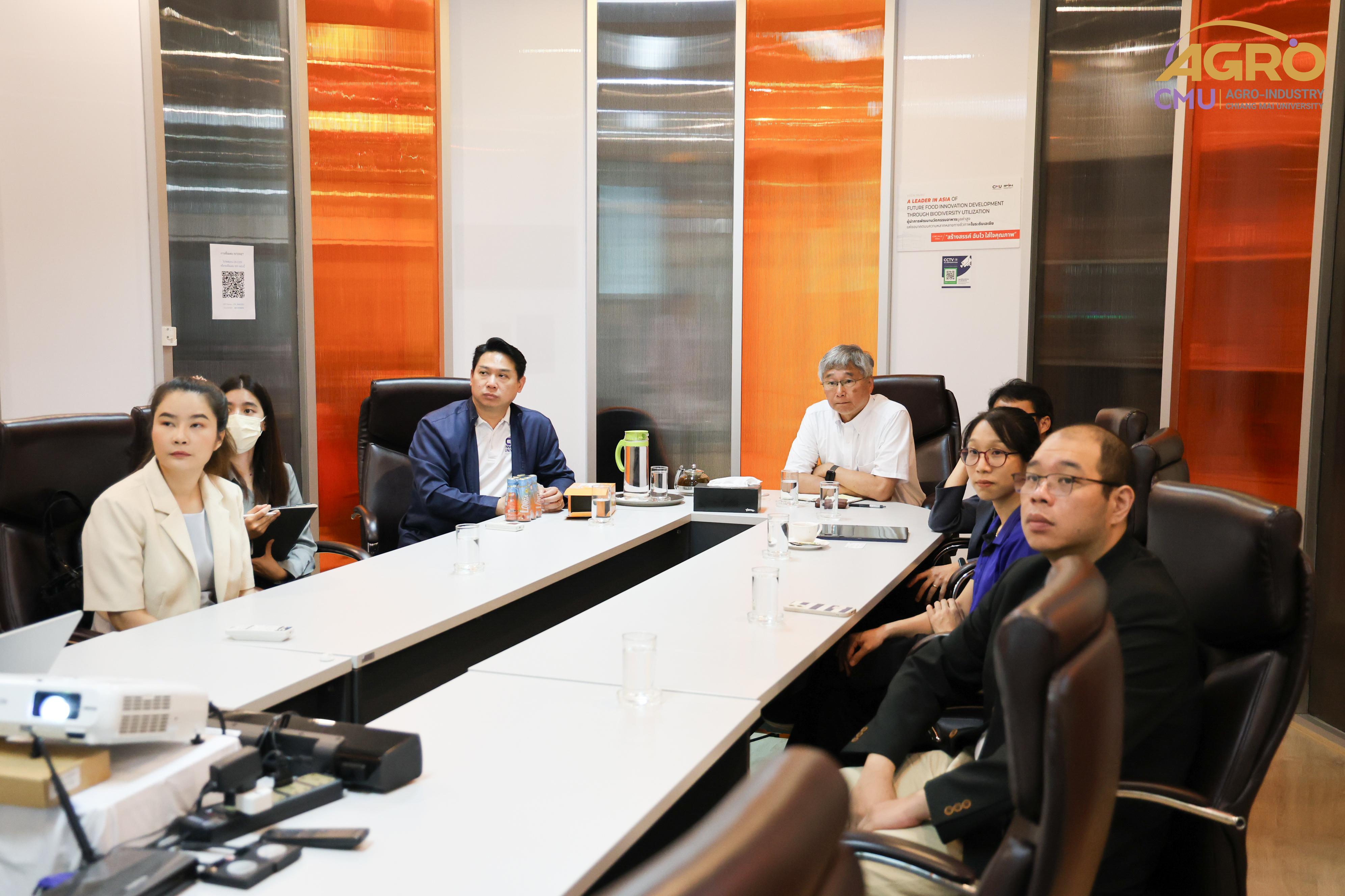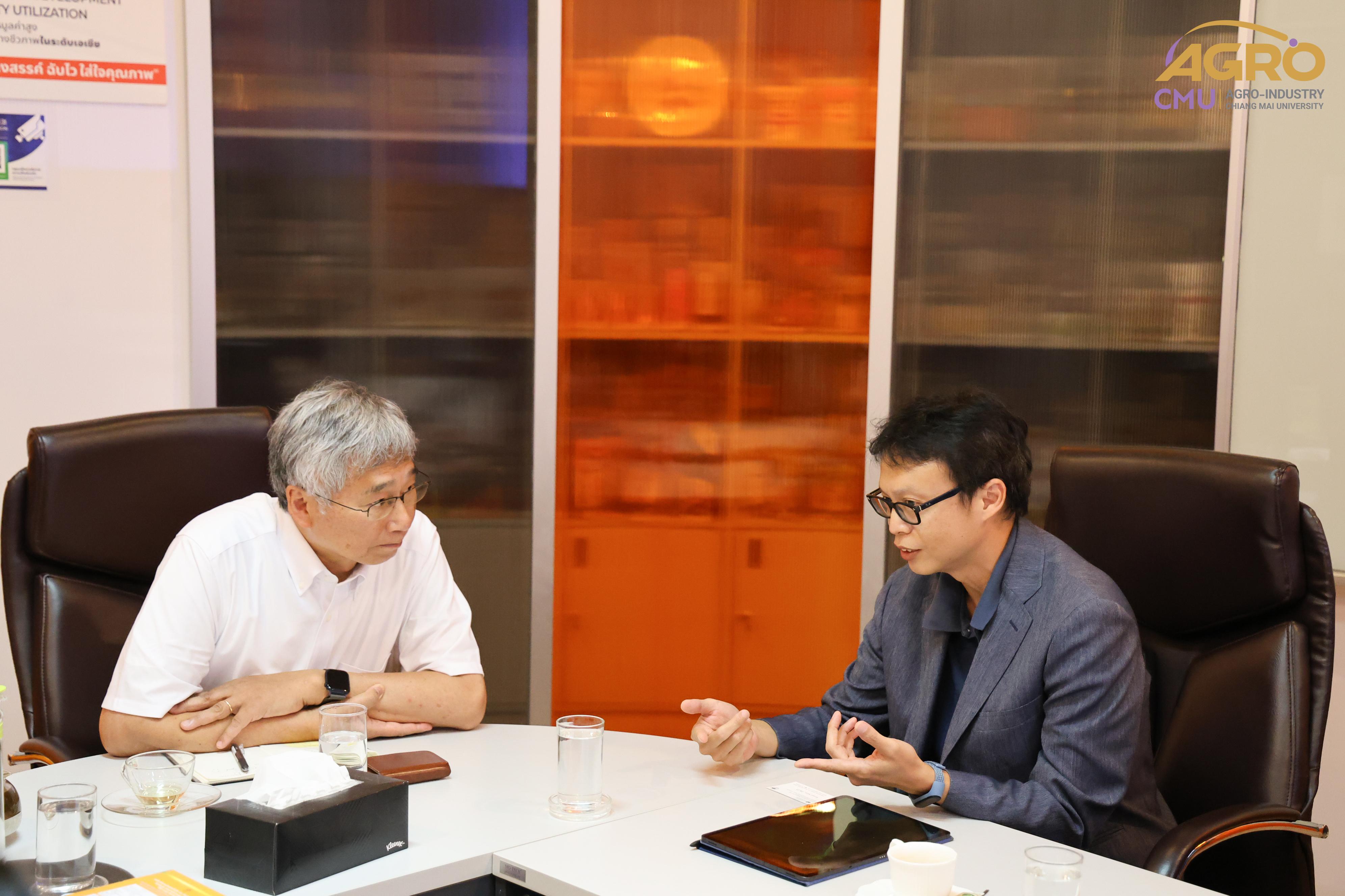 On July 16, 2024, Associate Professor Dr. Yuttana Phimolsiripol, Dean of the Faculty of Agro-Industry, along with the administration and faculty members, welcomed Professor Dr. Kenji Sato, an expert from the Graduate School of Agriculture at Kyoto University. The visit aimed to discuss the feasibility of establishing academic collaborations. The guests were also given a tour of the FIN Center, the laboratories, and the pilot plant of the Faculty of Agro-Industry.