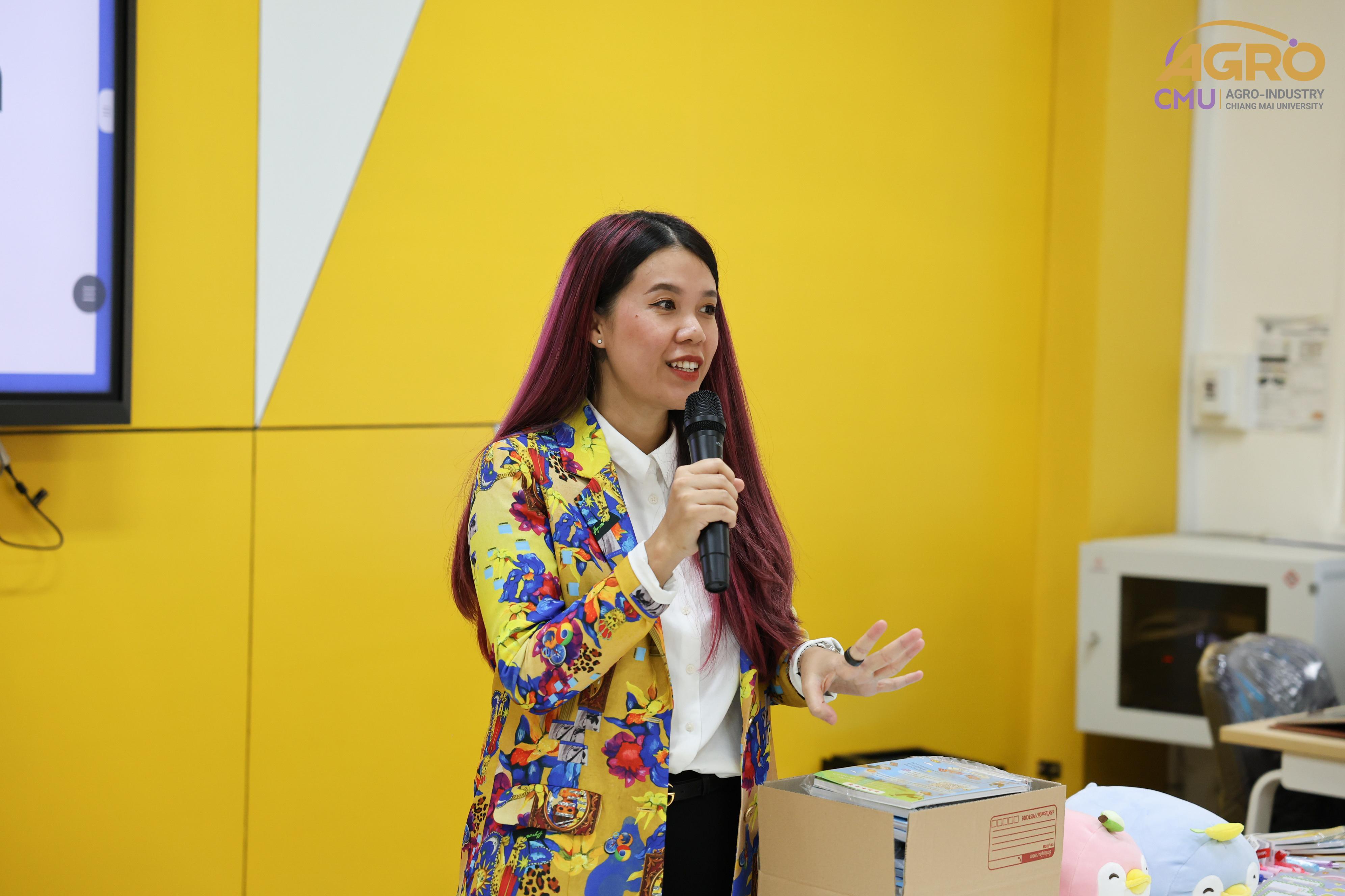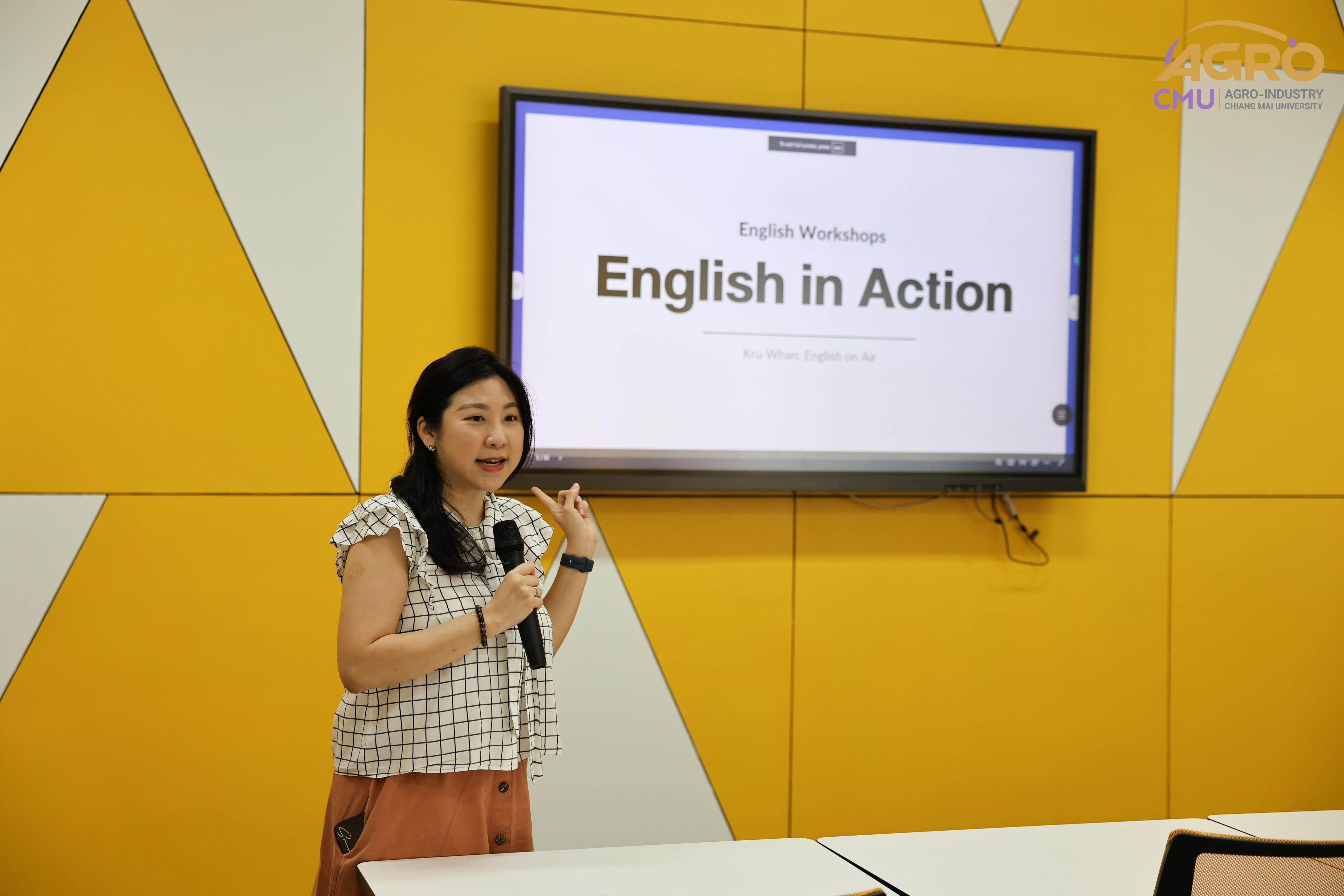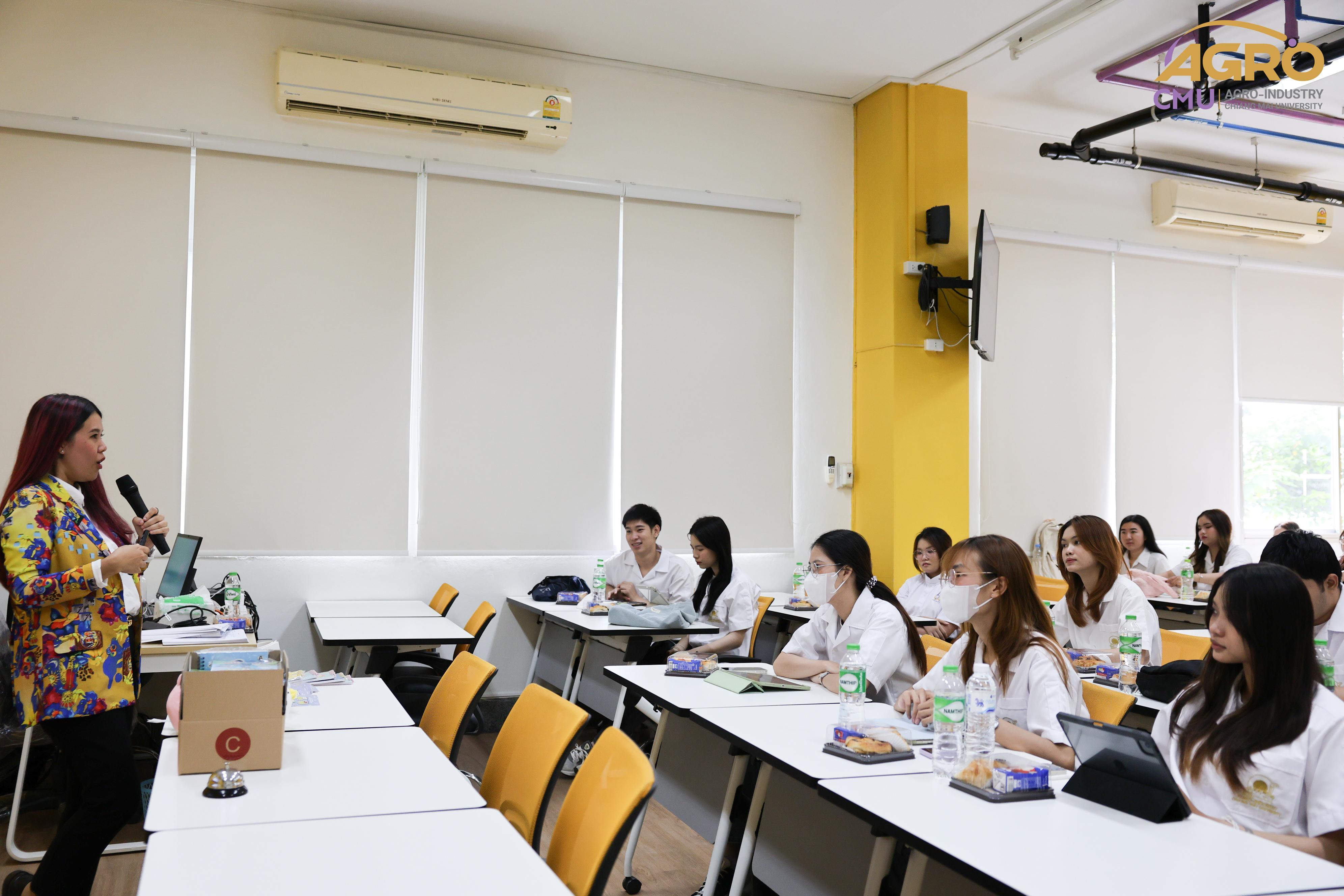 เมื่อวันที่พุธ ที่ 24 กรกฎาคม 2567 สาขาวิชาวิศวกรรมอาหาร ได้จัดกิจกรรมโครงการสนับสนุนการพัฒนาทักษะภาษาอังกฤษของนักศึกษาผ่านกิจกรรมการเรียนรู้ สาขาวิชาวิศวกรรมกระบวนการอาหาร โดยมีวัตถุประสงค์เพื่อให้นักศึกษาได้ฝึกการใช้ภาษาอังกฤษ มีทัศนคติที่ดีต่อการใช้ภาษาอังกฤษ เพื่อเตรียมตัวต่อการทำงานในอุตสาหกรรมภายหลังจบการศึกษา ในเวลา 09.30 - 12.00 น. ณ ห้อง 1-219 อาคาร 1 คณะอุตสาหกรรมเกษตร มหาวิทยาลัยเชียงใหม่ โดยมีคุณสุรีพร อินทร์เมือง (ครูหวาน) มาเป็นวิทยากรให้ความรู้ภาษาอังกฤษแก่นักศึกษา ภายในงานมีกิจกรรมที่ระดมความคิดของนักศึกษา และยังมีของรางวัล ของที่ระลึกมอบให้อีกมายมาย ทั้งนี้ยังเปิดโอกาสให้นักศึกษาได้ฝึกการนำเสนอผลงาน เพื่อเป็นแนวทางในการฝึกใช้ทักษะภาษาอังกฤษต่อไปในอนาคต