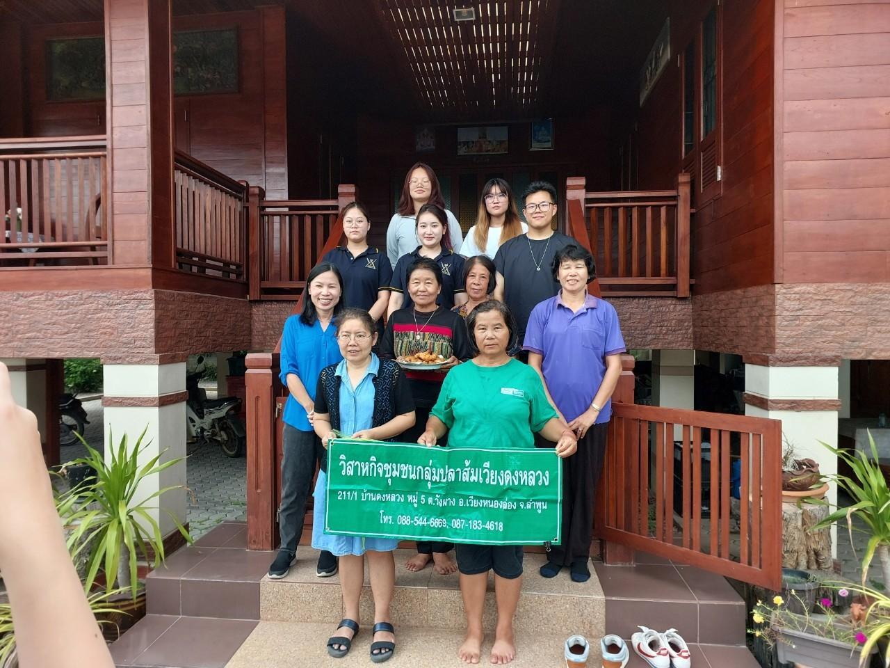 นำนักศึกษาสาขาวิชาวิทยาศาสตร์และแทคโนโลยีการอาหาร (หลักสูตรนานาชาติ) ที่เรียนกระบวนวิชากฎหมายและมาตรฐานอาหาร จำนวน 5 คน ได้แก่นางสาวบุษกร ดีน้อย นางสาวสารภี ภาคีฉาย นางสาว SHIMIN LI นางสาว XIFEI LI และ นาย XINGYI CHAI ลงพื้นที่ ณ กลุ่มวิสาหกิจชุมชนปลาส้มเวียงดงหลวง ตำบลวังผาง อำเภอเวียงหนองล่อง จังหวัดลำพูน เพื่อทำการสัมภาษณ์ชุมชนและเก็บรวบรวมข้อมูลด้านการผลิตปลาส้ม สำหรับนำมาประกอบการจัดทำคลิปวิดีโอและแผนความปลอดภัยอาหาร (Food Safety Plan) เพื่อให้ทางวิสาหกิจชุมชน สามารถนำไปใช้ประชาสัมพันธ์ผลิตภัณฑ์ปลาส้มของชุมชนที่แปรรูปด้วยภูมิปัญญาการผลิตปลาส้มของชุมชนที่ถ่ายทอดกันมาอย่างยาวนาน มีกลิ่นหอม ให้ความเปรี้ยวและความเค็มที่พอเหมาะ และมีมาตรฐานความปลอดภัย