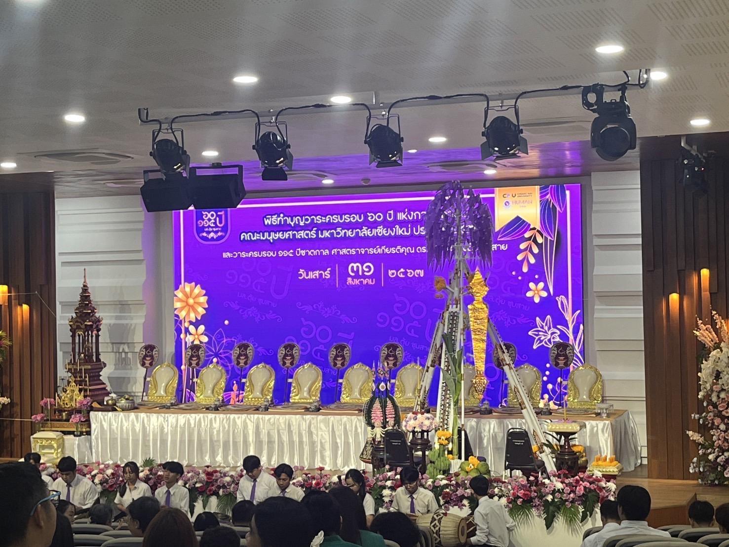 Assistant Professor Dr Churairat Moukamnerd, Assistant dean, attended the ceremony of the "60th Anniversary” of the Faculty of Humanities to commemorate the history and achievements of the Faculty of Humanities, which has been a significant source of quality human resources for the nation over the past 60 years. The event also organised the merit-making ceremony for the founding anniversary and the 115th birth anniversary of Professor Emeritus M.L. Tui Chumsai and other pioneers, along with a traditional Lanna-style life extension ceremony at the Professor Emeritus M.L. Tui Chumsai Auditorium (HB 7804), on August 31, 2024