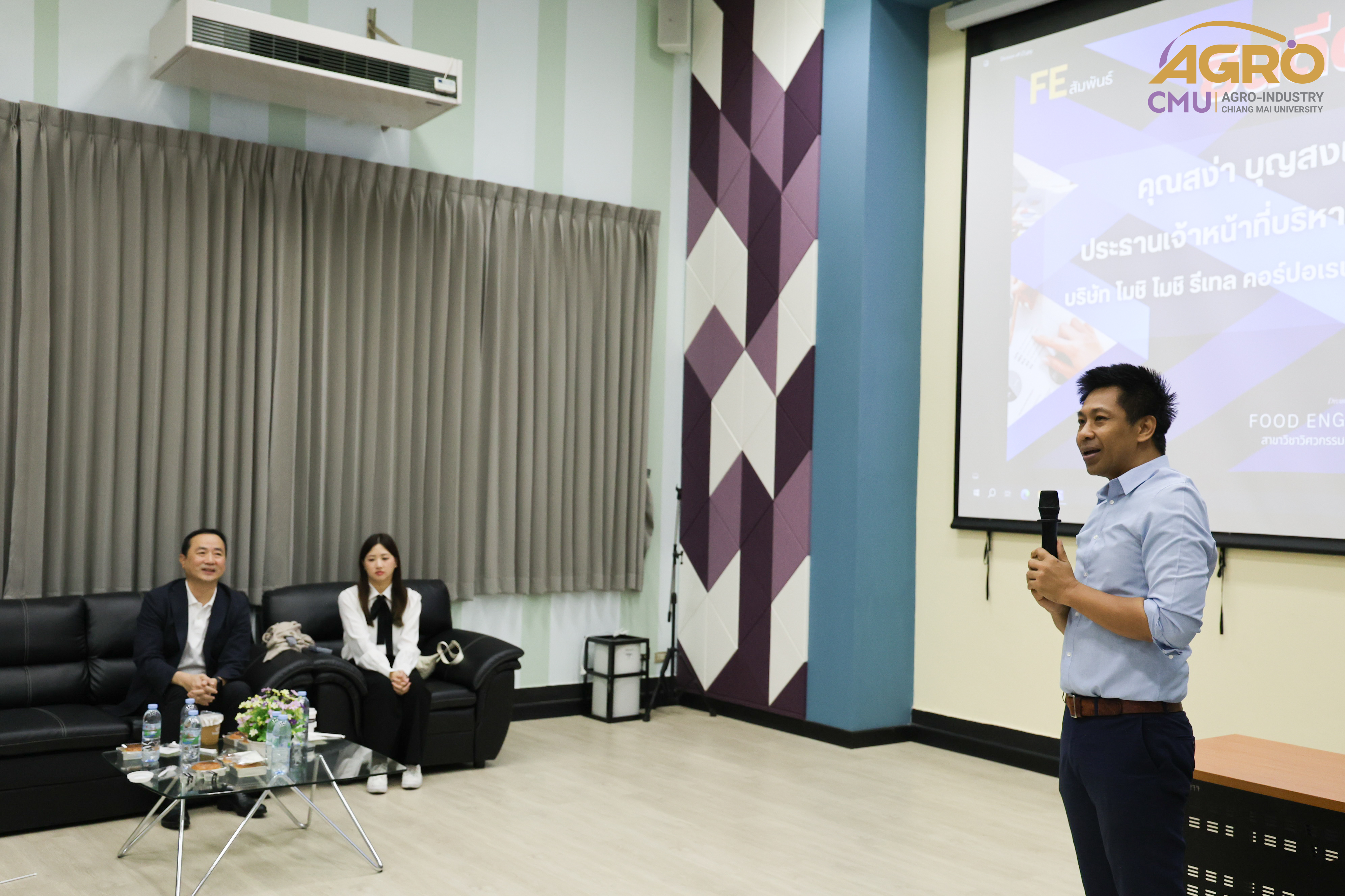 On October 2, 2024, the Department of Food Engineering organized a student engagement project. The event featured a special lecture by Mr. Saga Boonsongkroh, CEO of Moshi Moshi Retail Corporation Public Company Limited, under the topic "Building Business Mindset: Creating Product Value with Moshi Moshi’s Business Model" from 10:00 AM to 12:00 PM at Room 1-111-112, Building 1, Faculty of Agro-Industry, Chiang Mai University.
