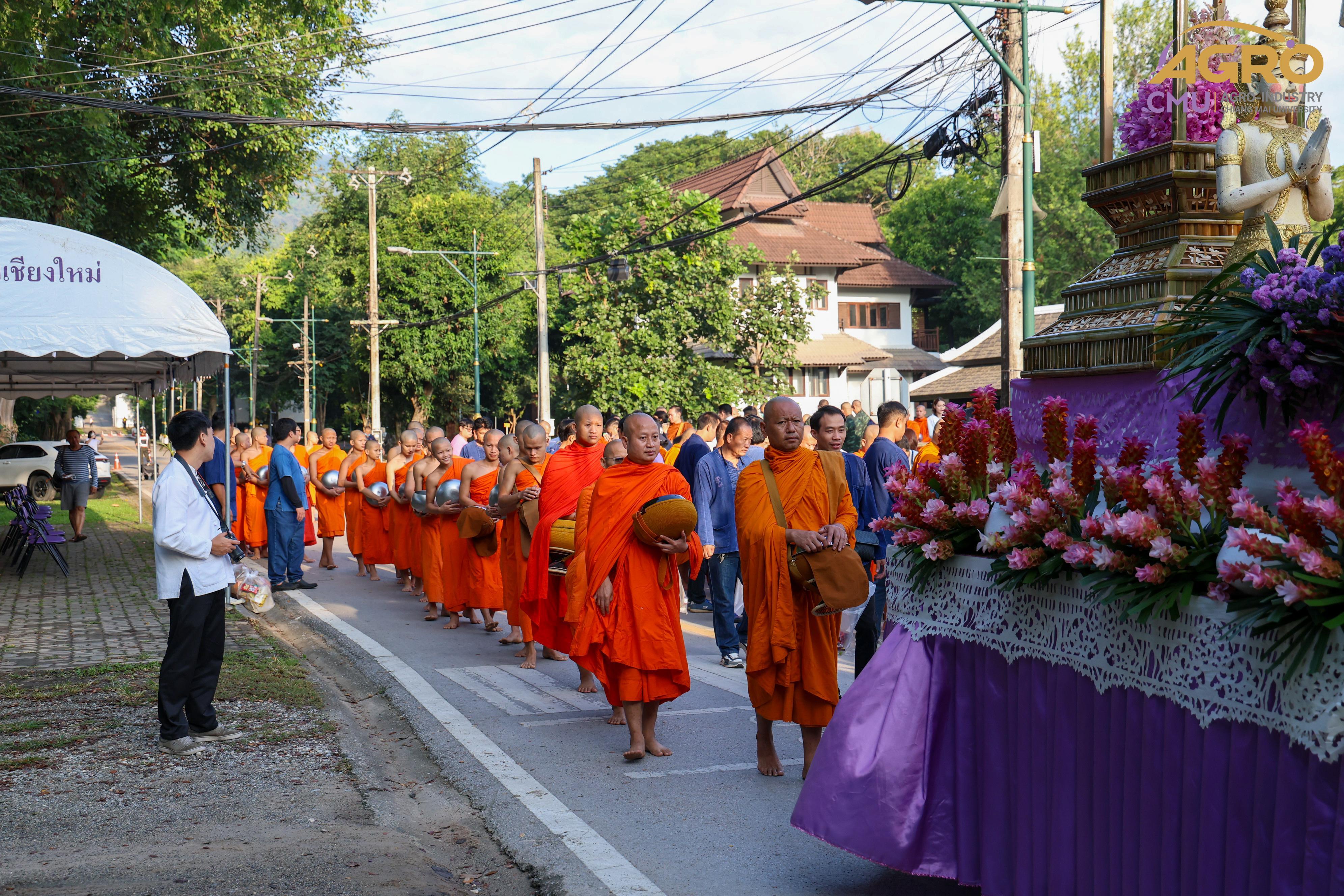 On October 18, 2024, Assistant Professor Dr. Churairat Moukamnerd, assistant dean along with the faculty members, joined the merit-making ceremony on the occasion of 'Tak Bat Devo' alms-giving ceremony (or Devorohana) which is a tradition of making merit by giving alms to monks that takes place one day after the end of Buddhist Lent. This event was held at Chiang Mai University.