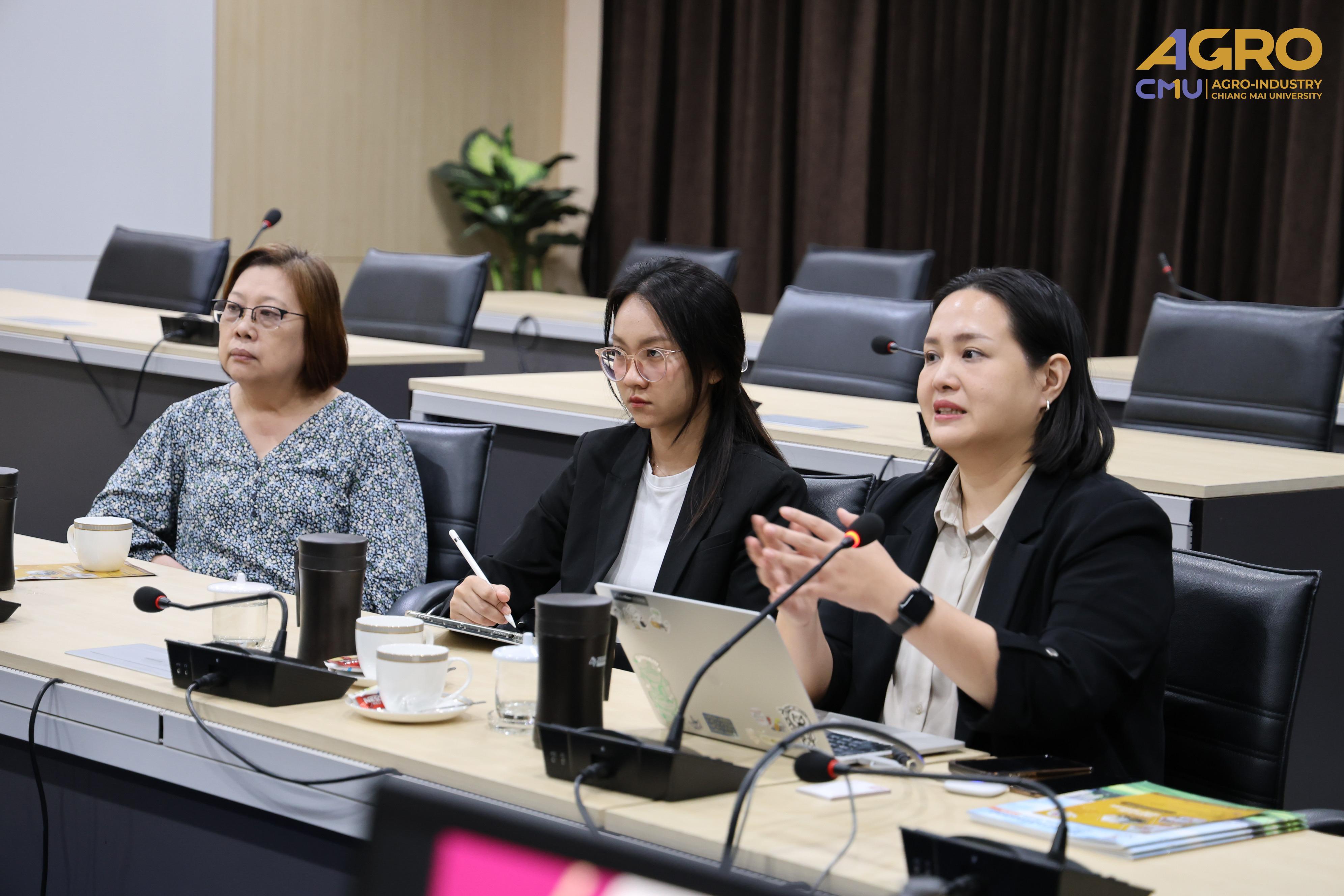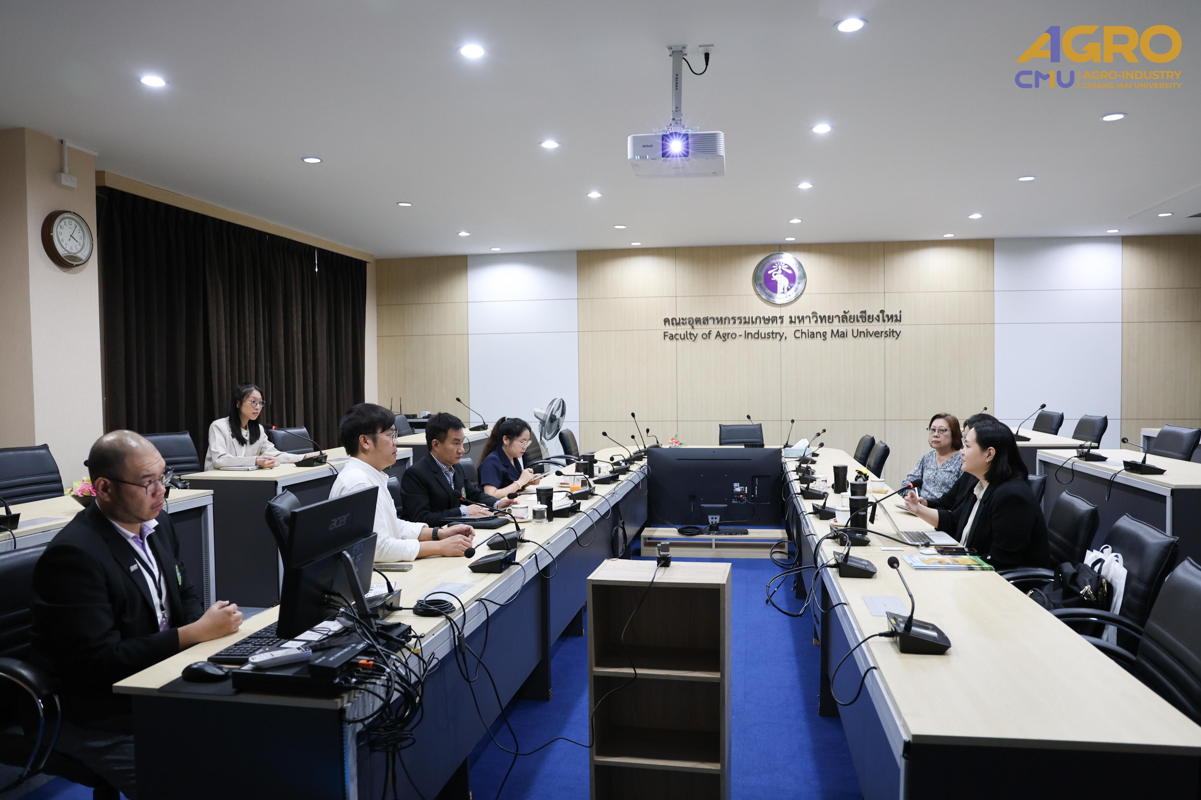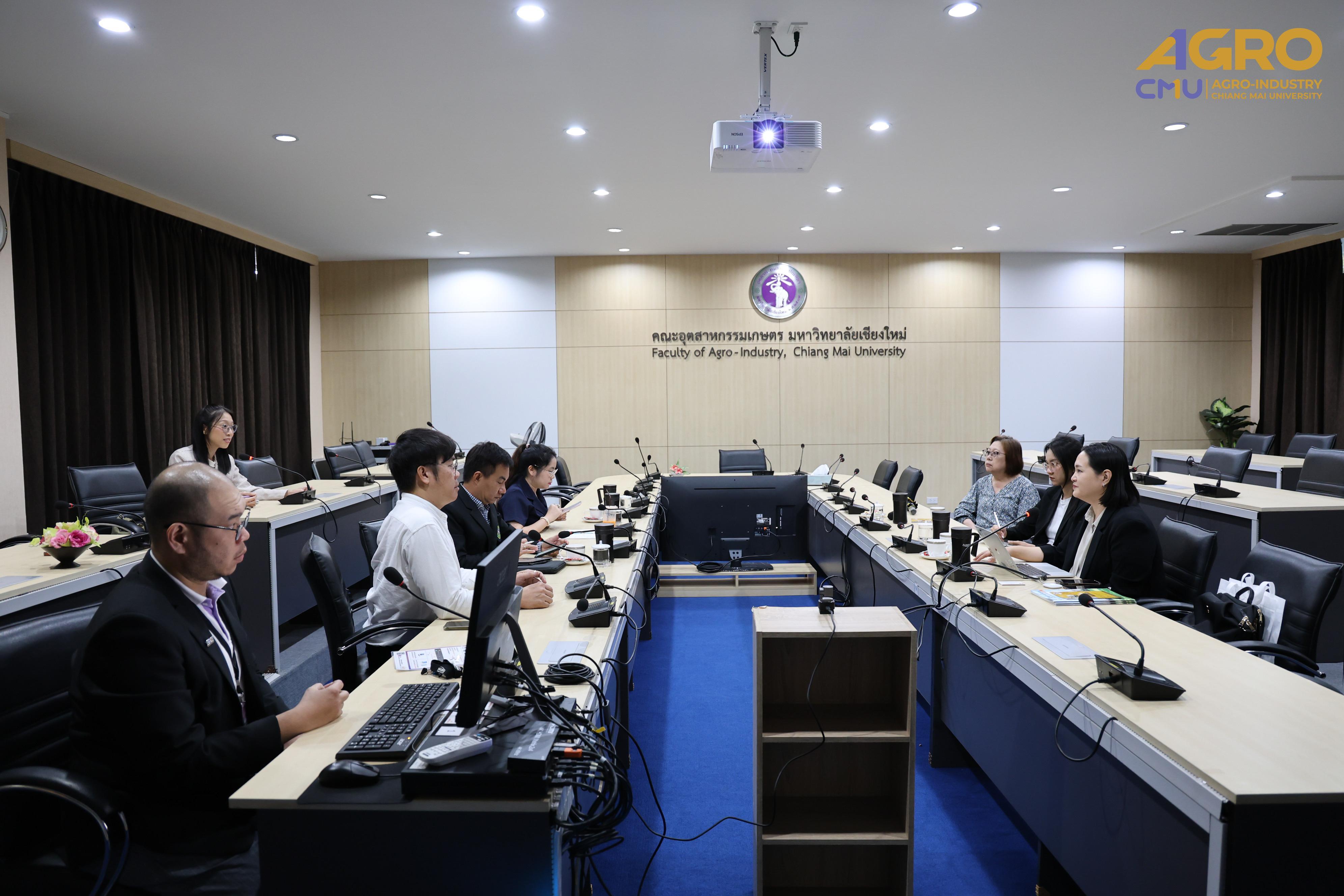The visit aimed to explore potential collaboration opportunities, such as study visit programs or promoting the Faculty of Agro-Industry’s international programs to interested audiences. The meeting took place in Meeting Room 3, Faculty of Agro-Industry Office Building, Chiang Mai University.