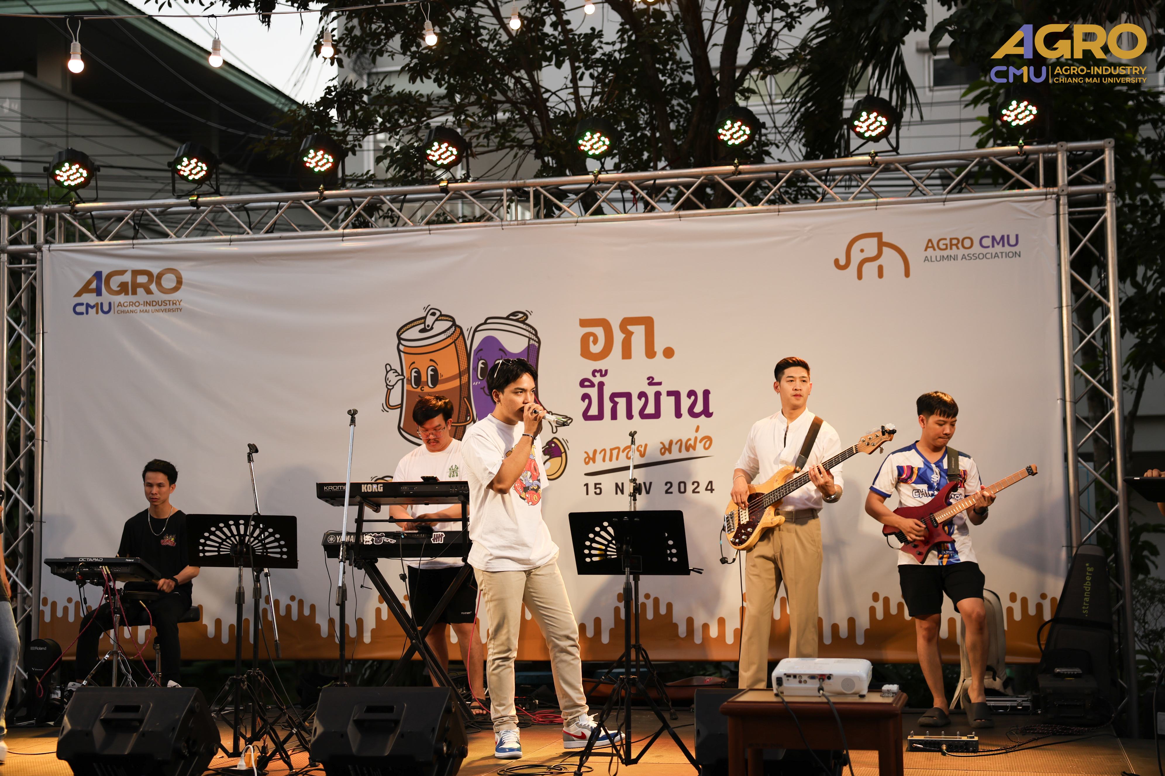 The event was inaugurated by the Dean, Associate Professor Dr. Yuthana Phimolsiripol. It featured a variety of activities, including cheerleader performances by students, a music performance by alumni, a bouncy castle zone, a photo booth, food and drink stalls run by alumni from various cohorts, and a spirited cheer performance by first-year students. The event was attended by over 500 participants.