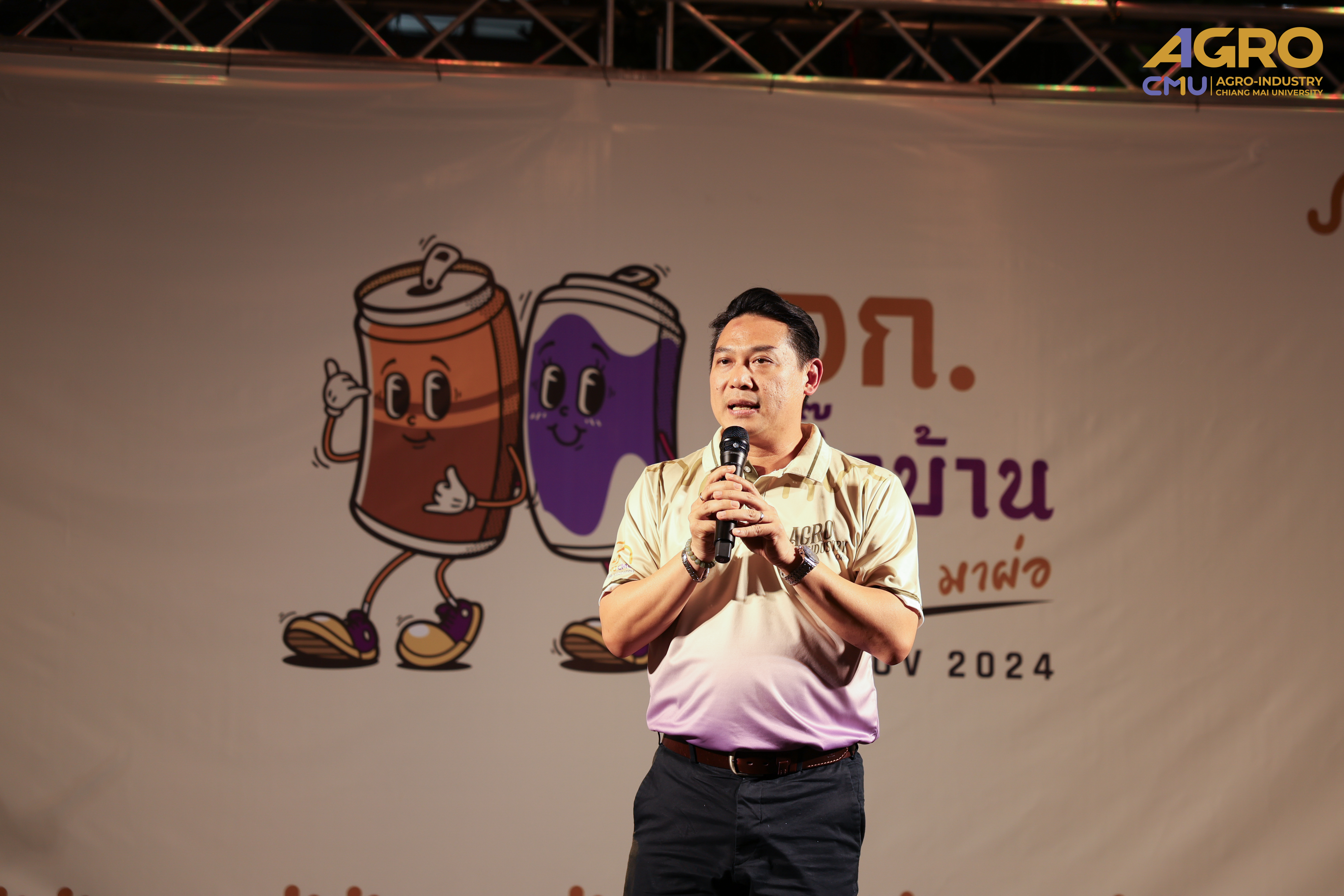 On November 15, 2024, the Faculty of Agro-Industry at Chiang Mai University, in collaboration with the Chiang Mai University Agro-Industry Alumni Association, hosted the event "Agro Home Comimg 67" at the parking lot of the Faculty of Agro-Industry's auditorium. The event aimed to strengthen relationships among faculty members, staff, alumni, and current students of the Faculty of Agro-Industry, preceding the traditional activity of taking new students to pay respects at Wat Phra That Doi Suthep.