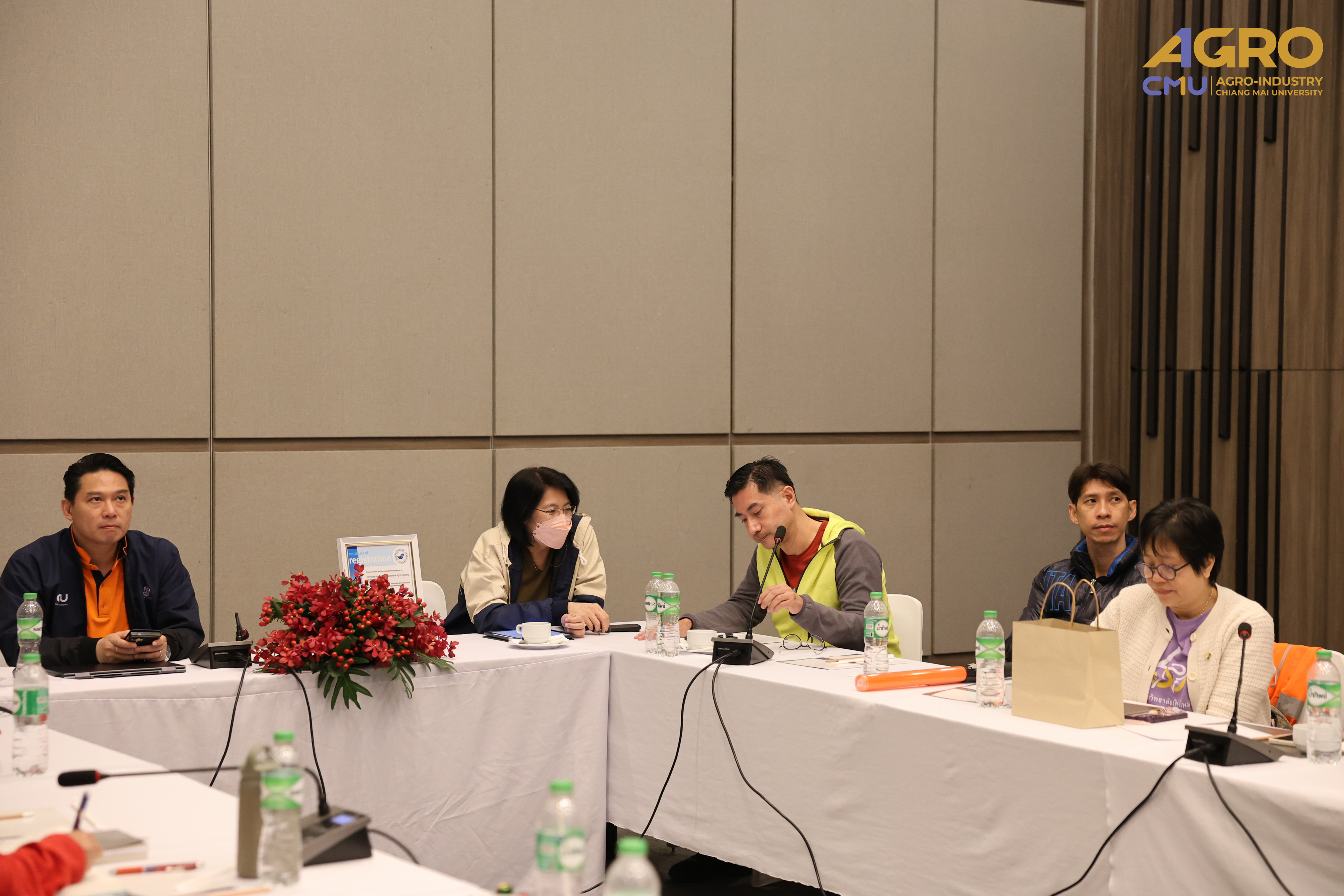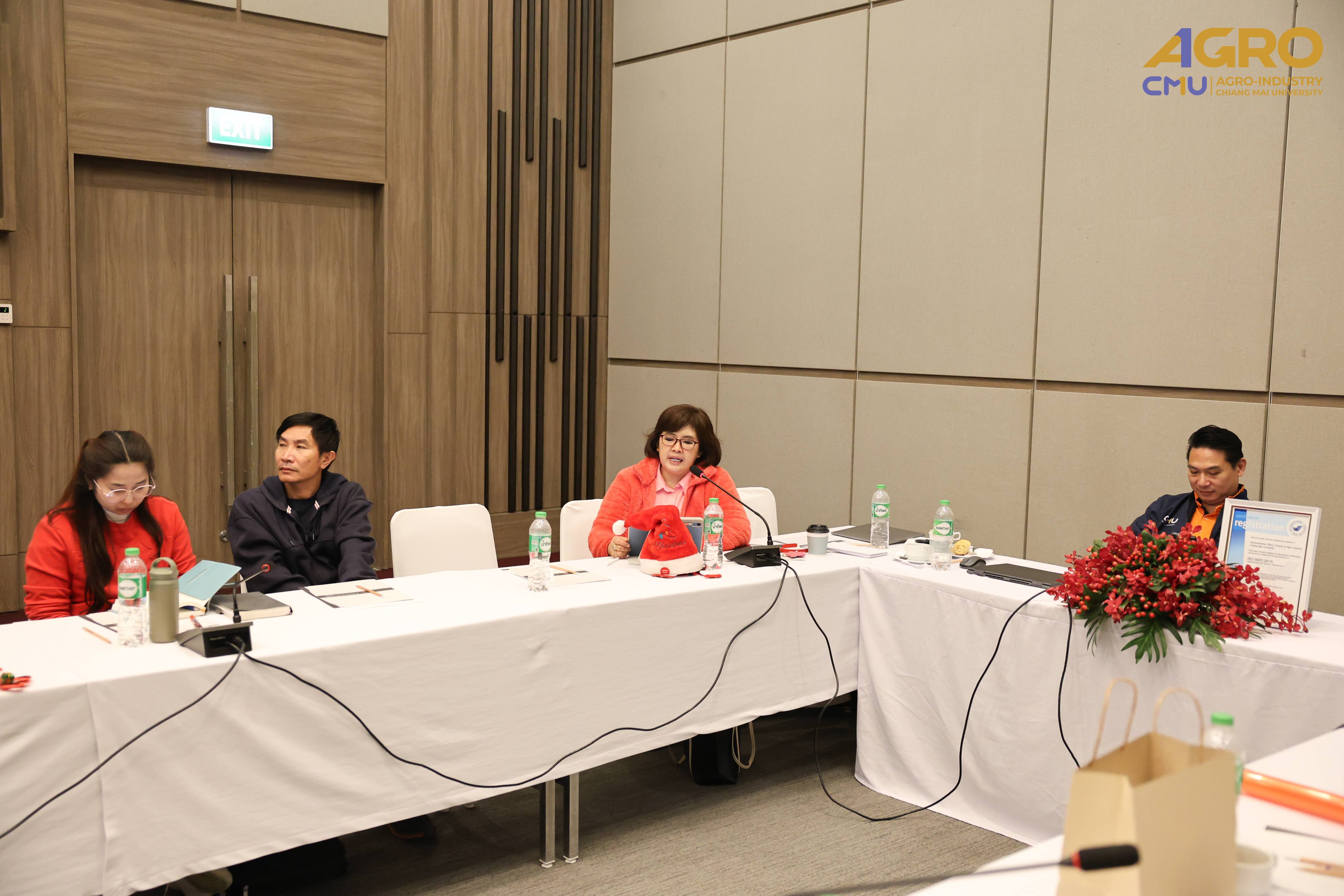 On December 26, 2024, the Office of the Faculty of Agro-Industry held its annual office meeting. Ms. Piyanuch Sawasdee, Secretary of the Faculty of Agro-Industry, presented the office development plan, the quality policy and ISO9001:2015 implementation, the No Gift Policy, the 2024 annual performance summary, and the 2025 Additionally, the dean, administrators, and faculty staff attended the meeting. which also featured a New Year's gift exchange activity. The meeting took place at the Doi Nang Meeting Room, 2nd Floor, Kantary Hills Hotel, Mueang District, Chiang Mai.