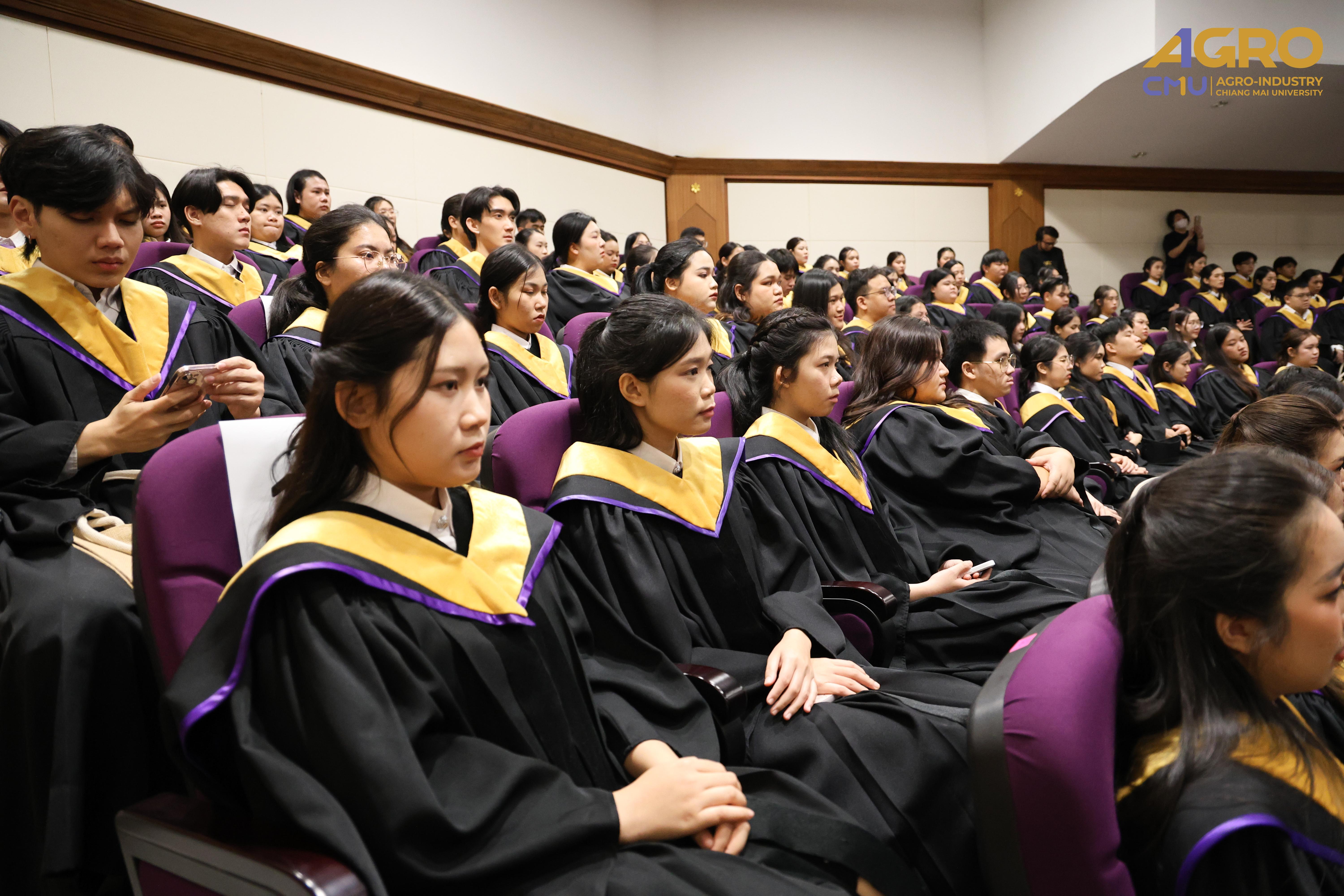and the graduation ceremony rehearsal (Part of the faculty) at the small conference room Chiang Mai University Main Auditorium with more than 350 Participants along with the faculty executives, Lecturers , staff of faculty, the graduates of Faculty of Agro-Industry, and students attending the event.