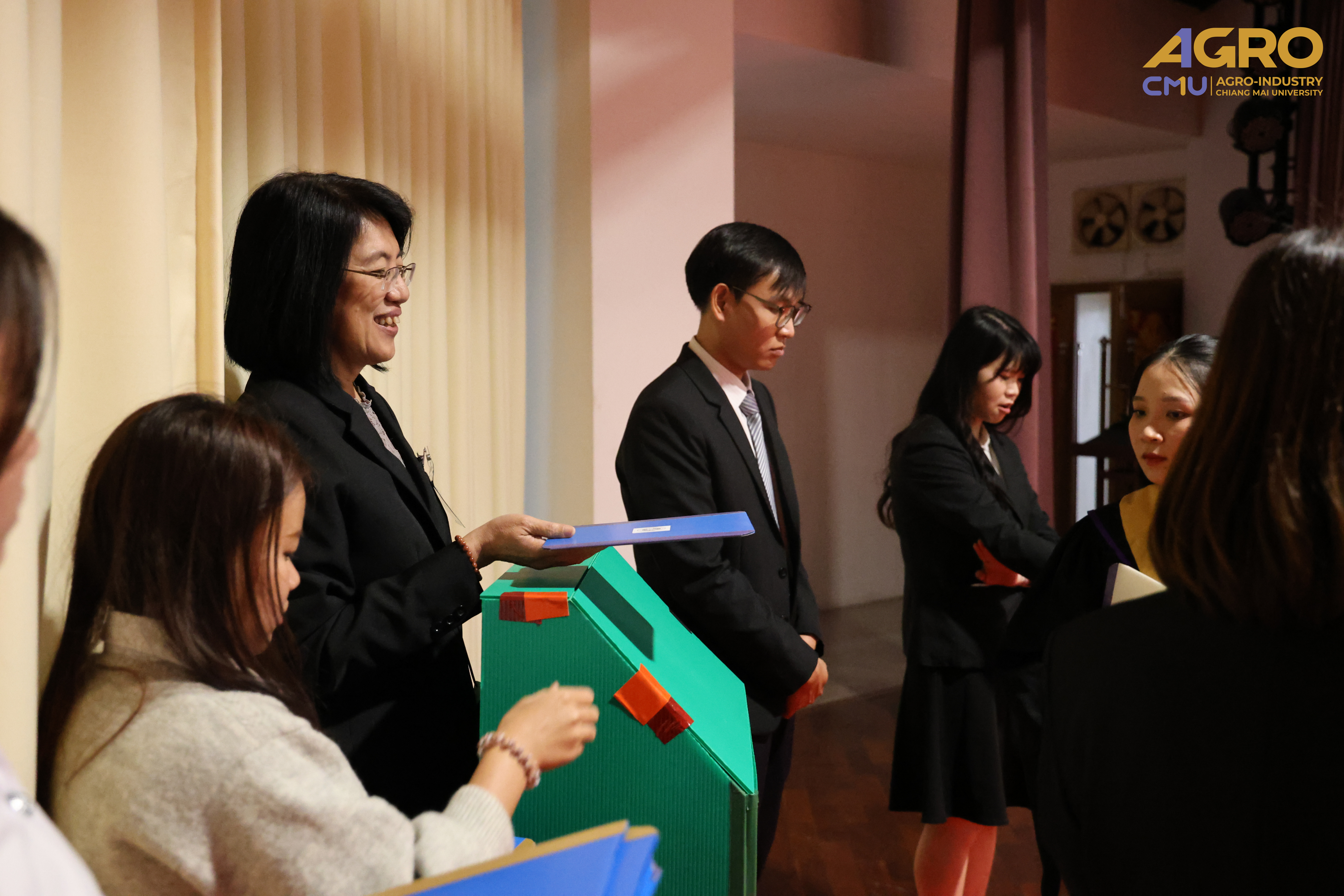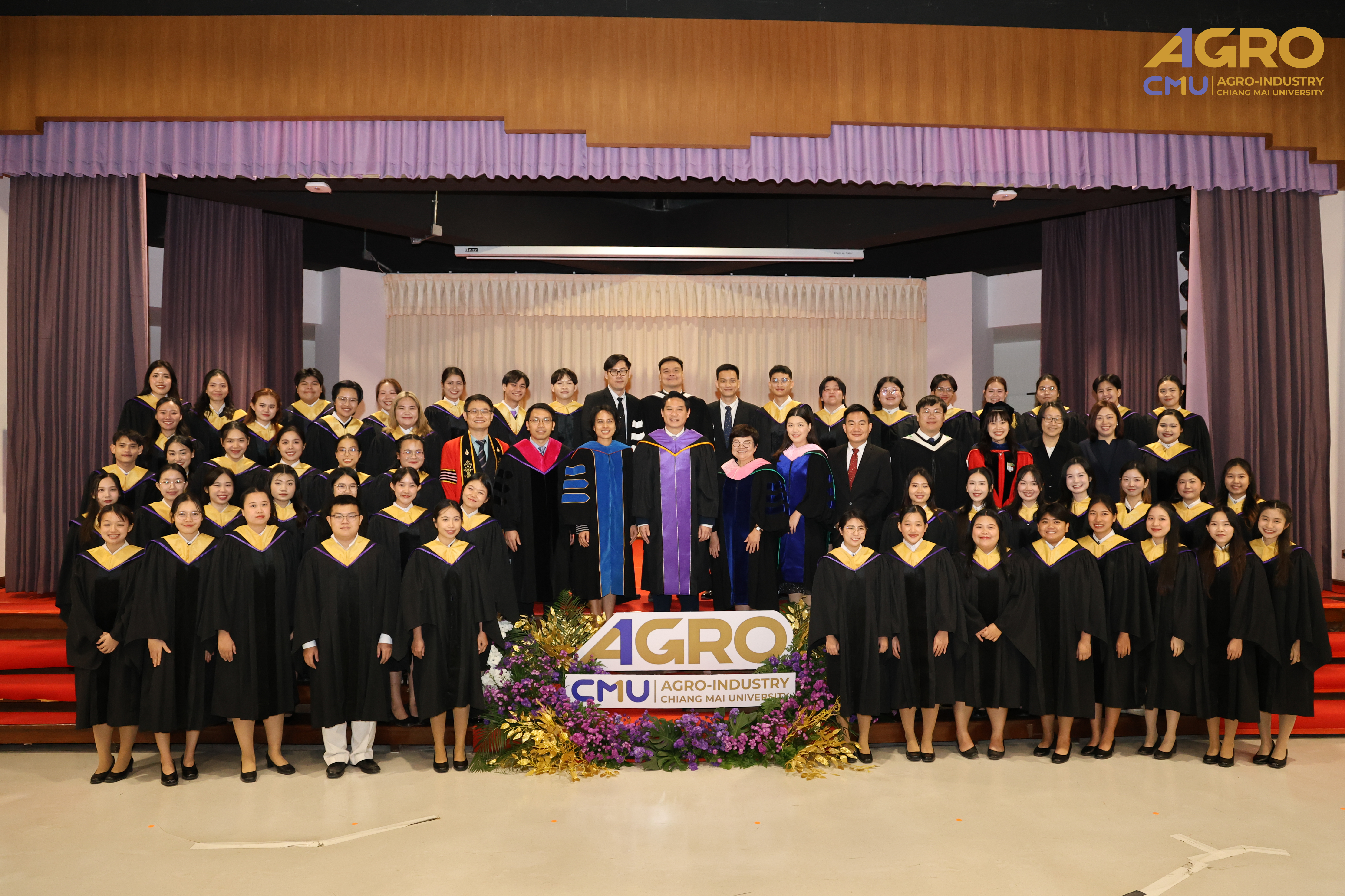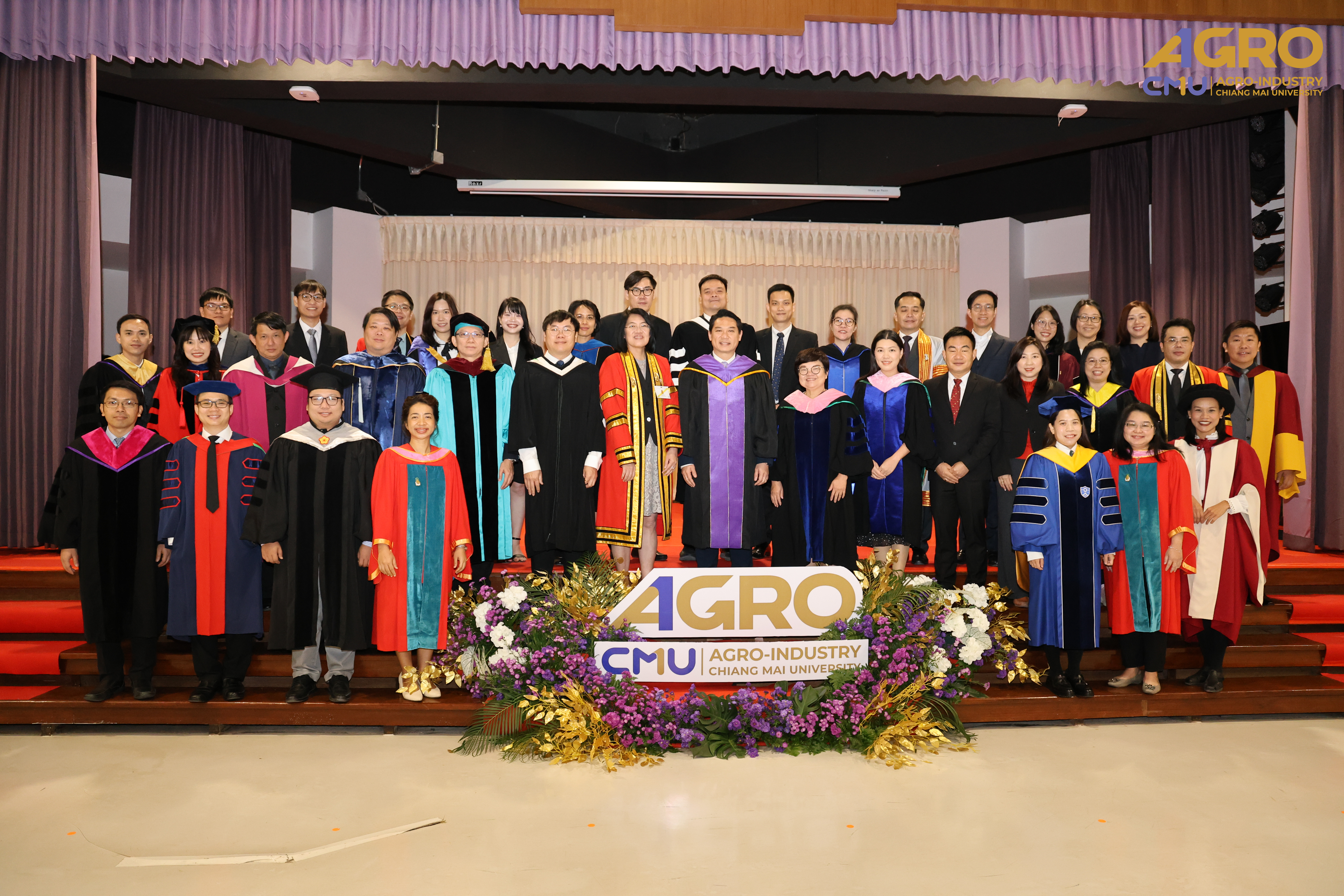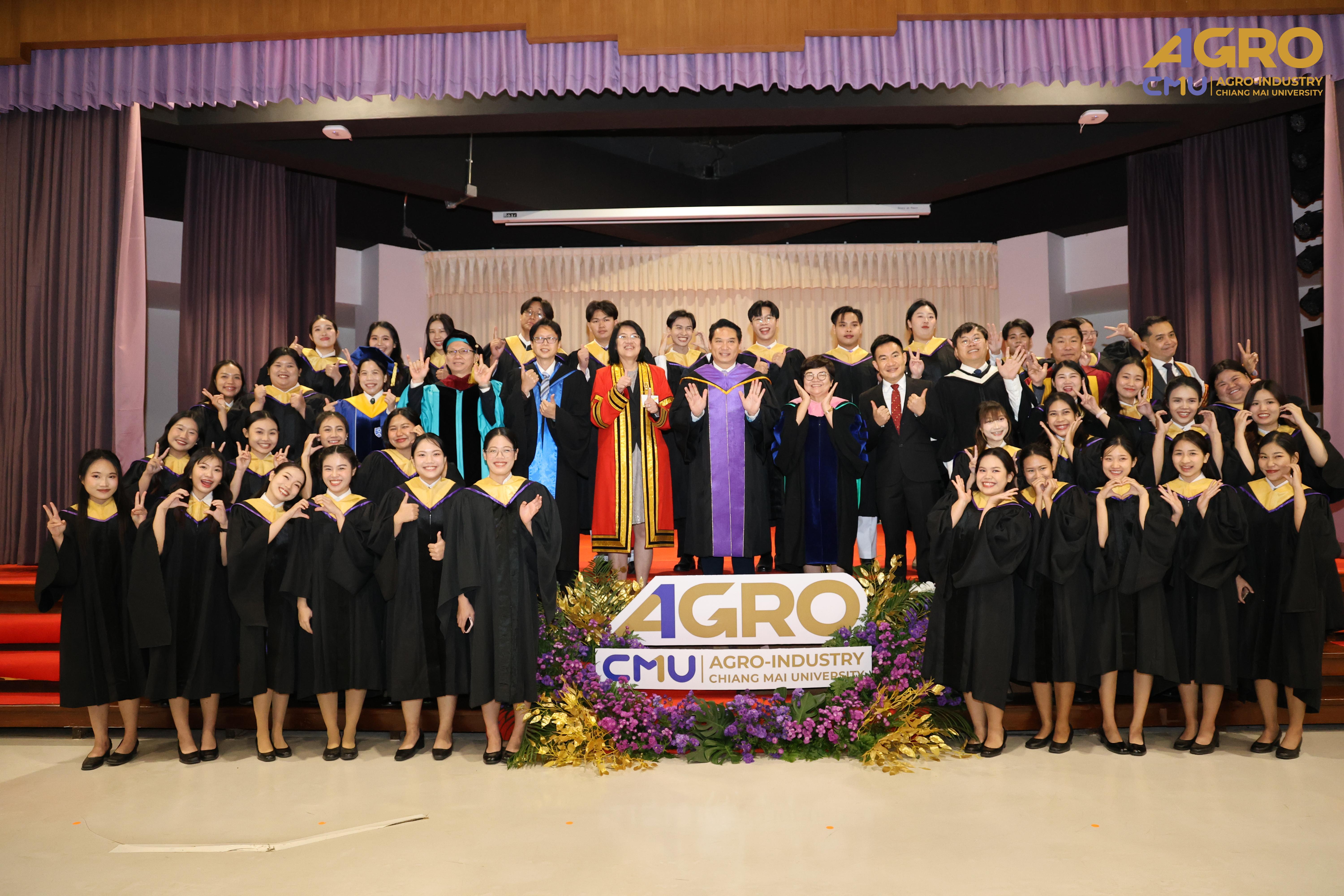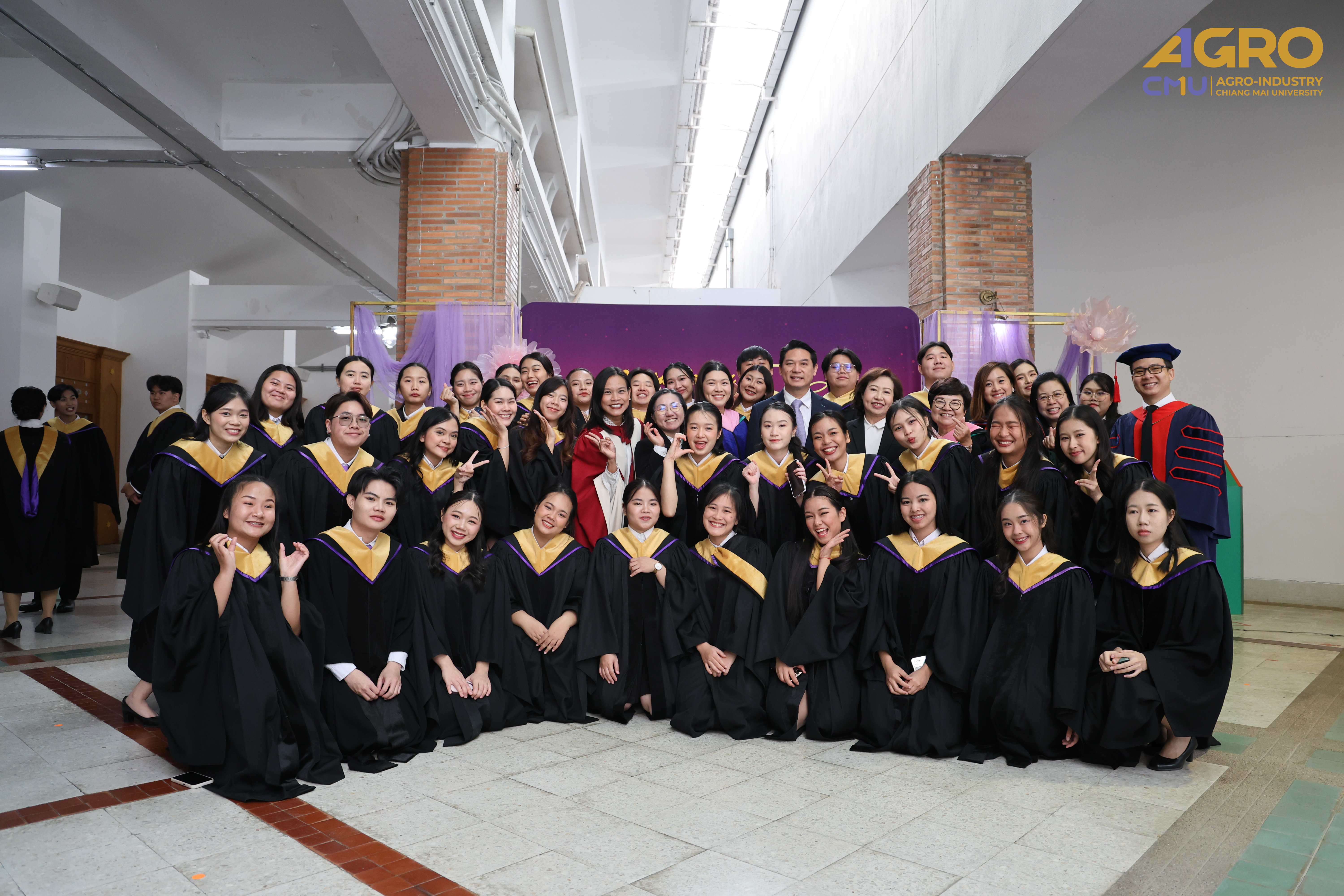 Sunday, January 12, 2025 at the More space, Chiang Mai University, Assoc. Prof. Yuthana Phimolsiripol, Ph.D., Dean of the Faculty of Agro-Industry, Chiang Mai University, along with the faculty executives, took a group photo and congratulated the graduates of Chiang Mai University, 59th CMU Commencement Ceremony of the faculty who graduated from the academic year 2023-2024, who will receive the 59th graduation ceremony on January 16, 2025.