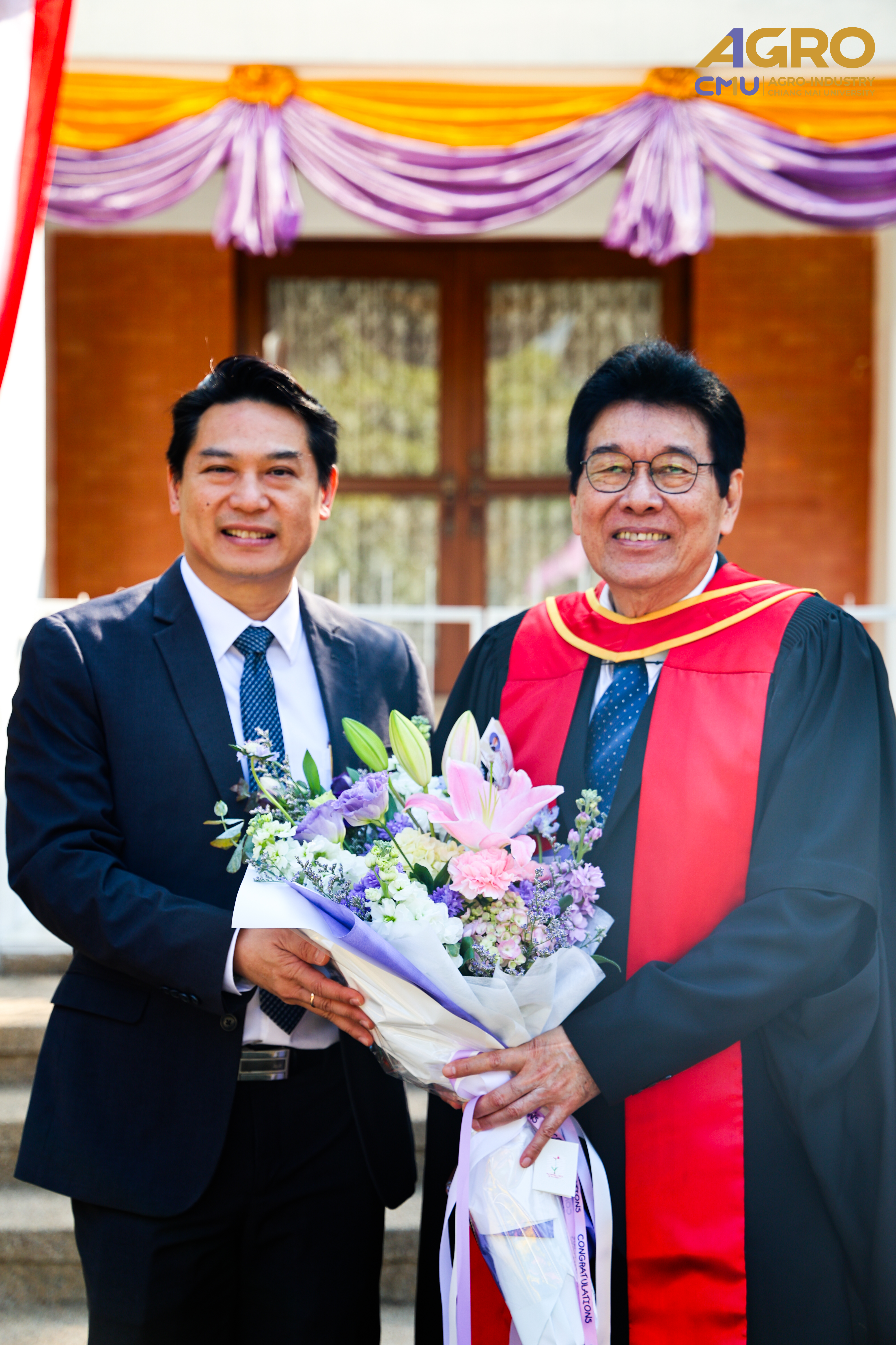On January 14, 2025, Associate Professor Dr.Yuthana Phimolsiripol, Dean of the Faculty of Agro-Industry, along with the faculty executives and staffs gave the bouquet of flowers to extends its heartfelt congratulations to Professor Dr.Pairote Wiriyacharee on the occasion of being appointed by the Chiang Mai University Council to the position of Professor Emeritus in the field of Product Development Technology.