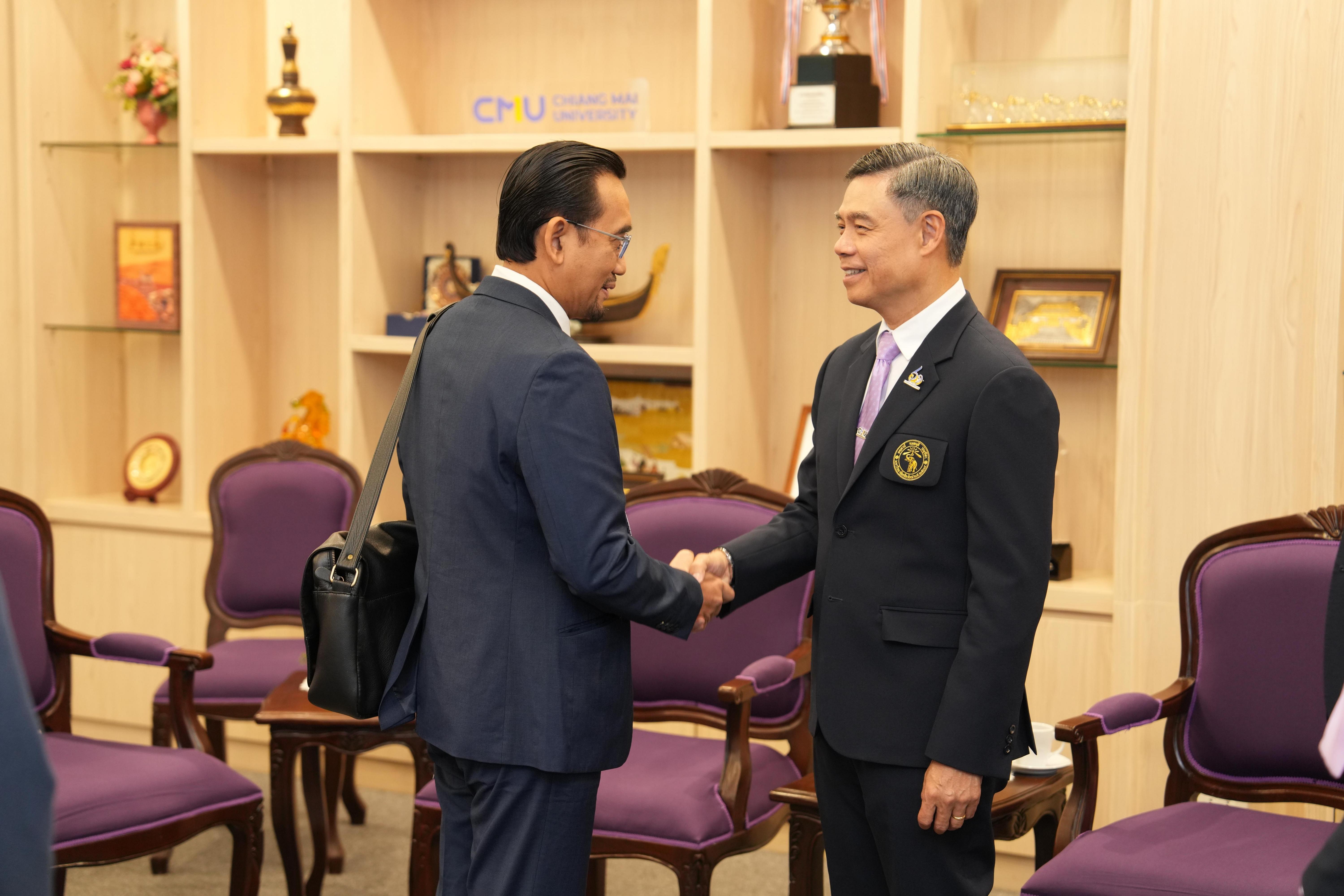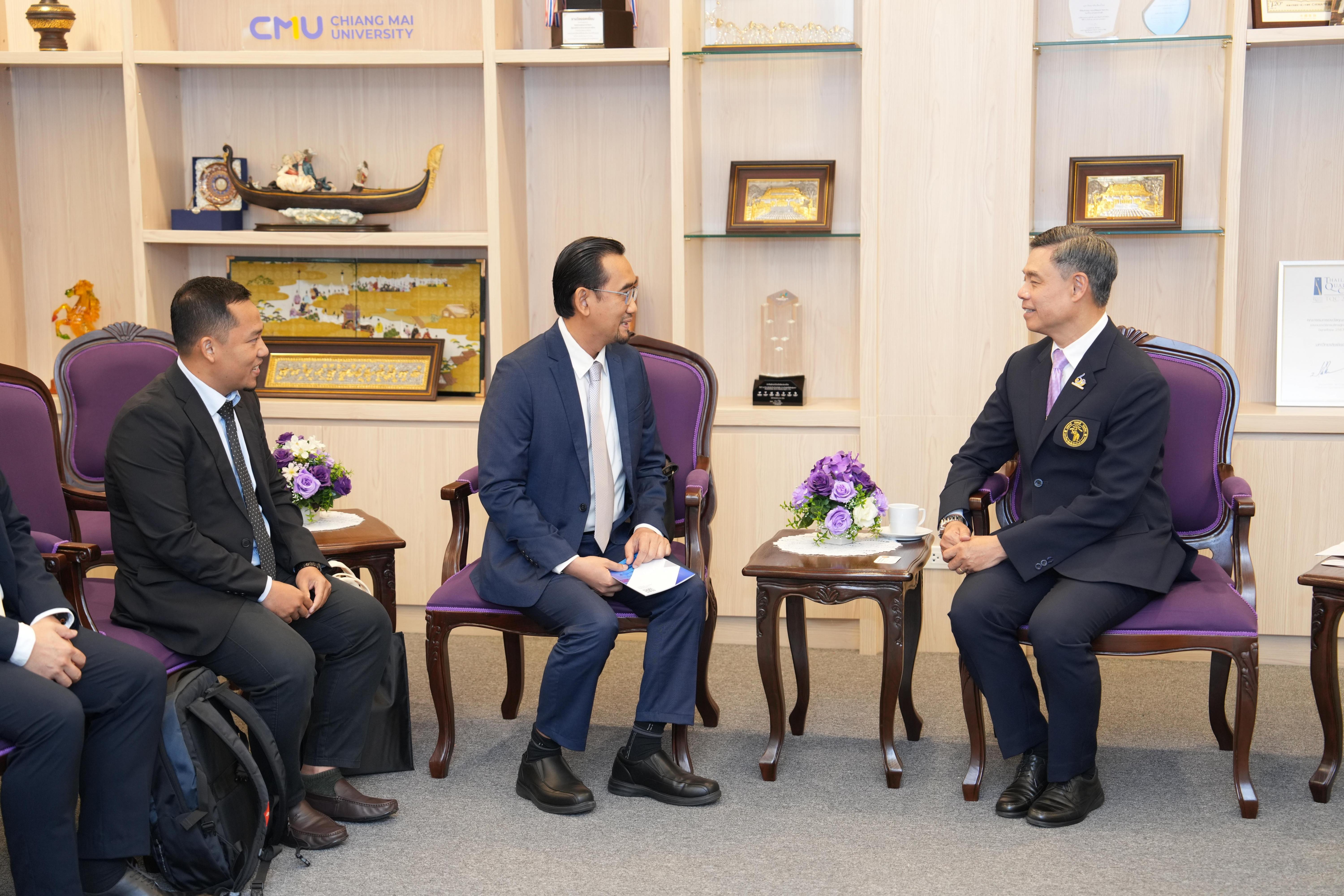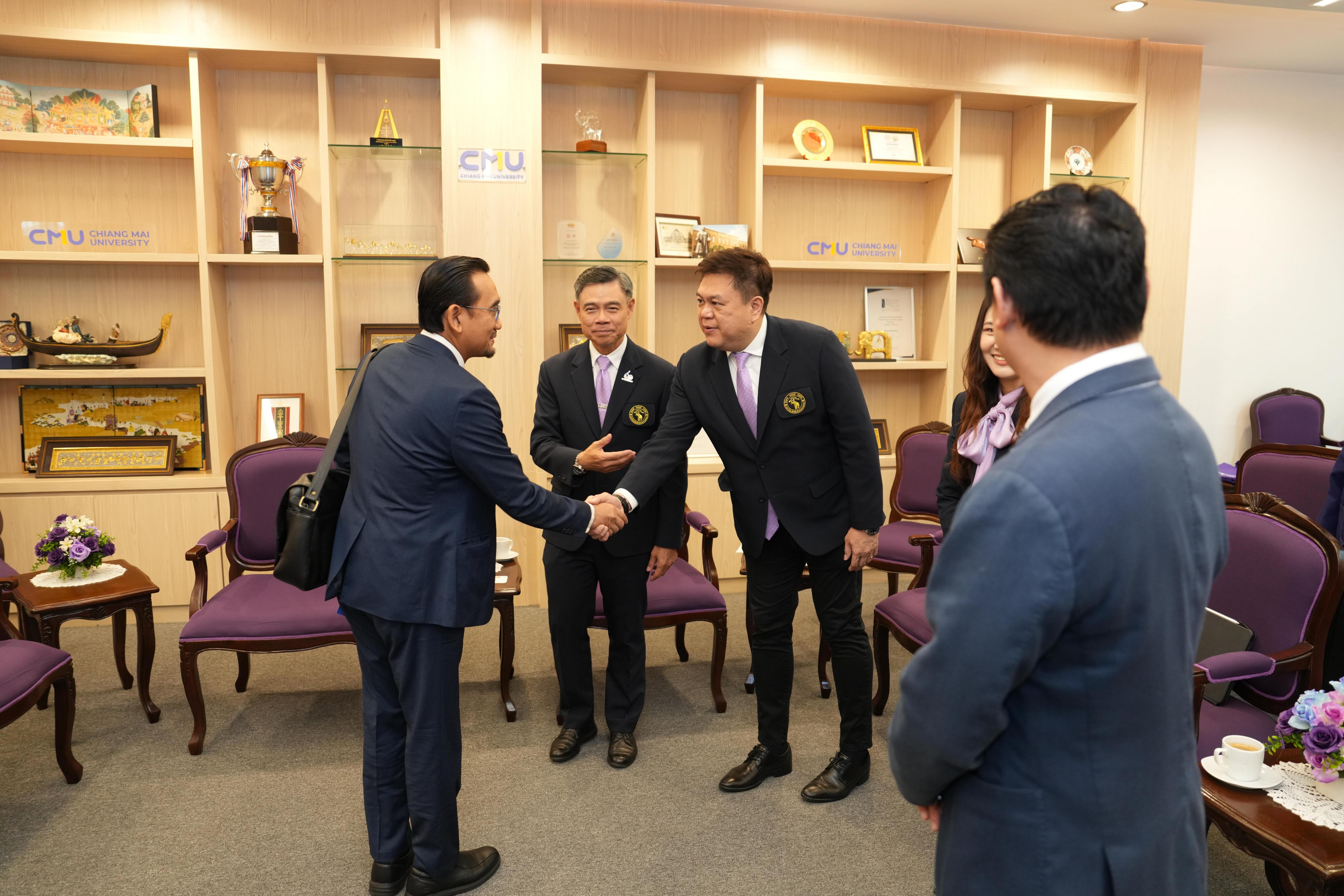 ห้องรับรองหม่อมหลวงปิ่น มาลากุล อาคารสำนักงานมหาวิทยาลัย 1 มหาวิทยาลัยเชียงใหม่ ในโอกาสที่มาเยี่ยมเยือนมหาวิทยาลัยเชียงใหม่ และร่วมงาน “Presidential Forum 2025” ที่จะจัดขึ้น ระหว่างวันที่ 22 – 25 มกราคม 2568 เพื่อเป็นการเฉลิมฉลองครบรอบ 60 ปี แห่งการสถาปนามหาวิทยาลัยเชียงใหม่