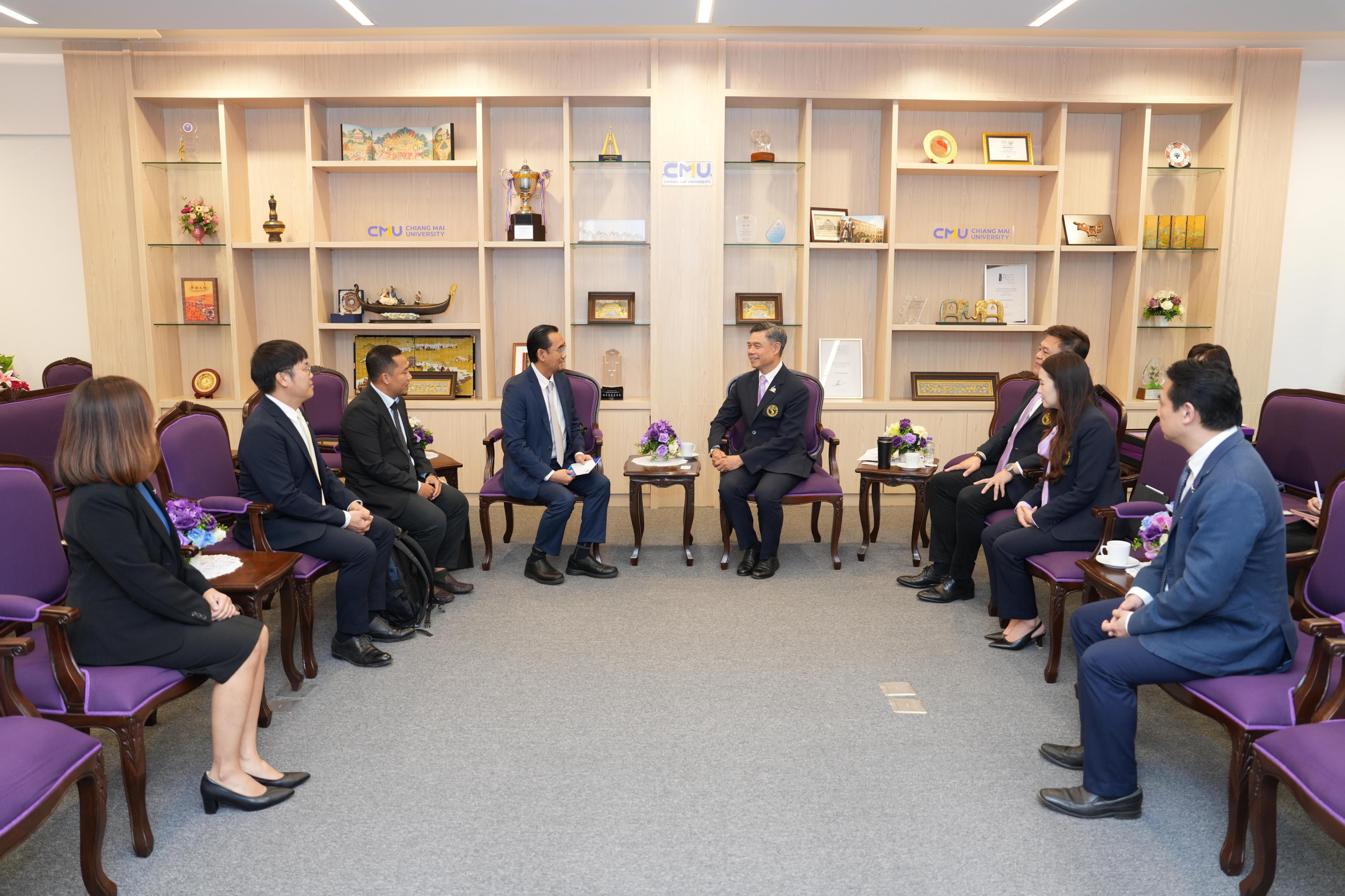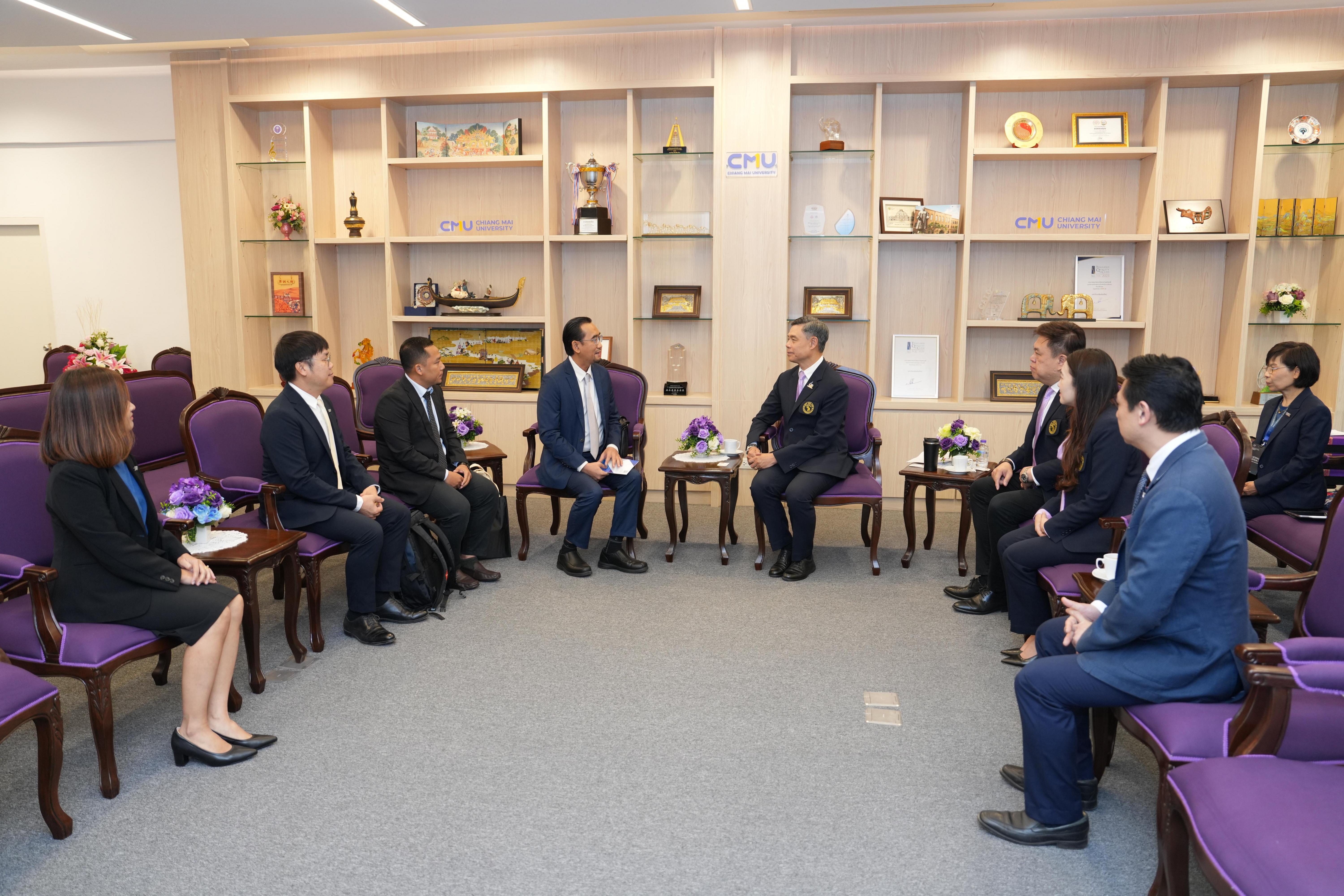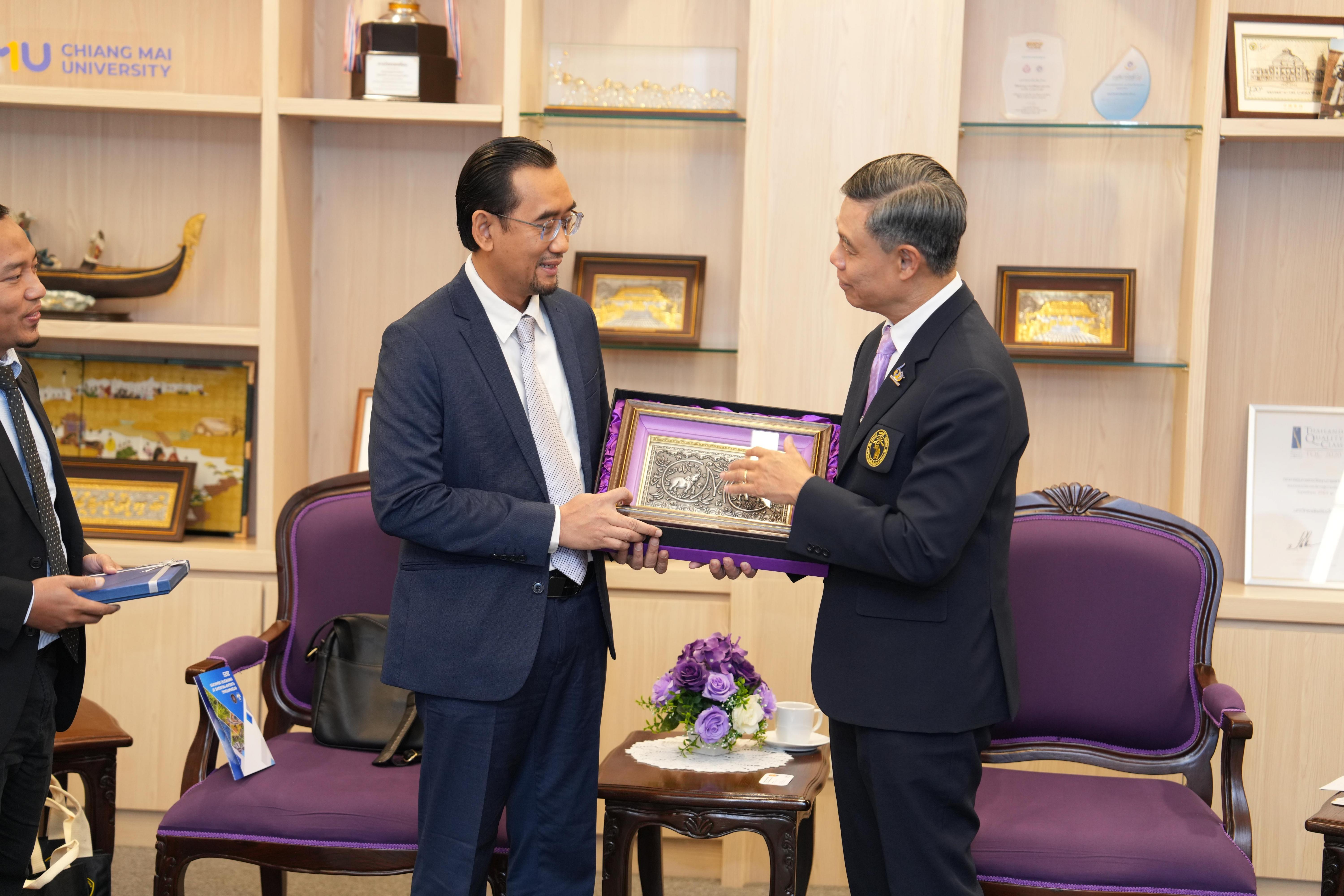 ห้องรับรองหม่อมหลวงปิ่น มาลากุล อาคารสำนักงานมหาวิทยาลัย 1 มหาวิทยาลัยเชียงใหม่ ในโอกาสที่มาเยี่ยมเยือนมหาวิทยาลัยเชียงใหม่ และร่วมงาน “Presidential Forum 2025” ที่จะจัดขึ้น ระหว่างวันที่ 22 – 25 มกราคม 2568 เพื่อเป็นการเฉลิมฉลองครบรอบ 60 ปี แห่งการสถาปนามหาวิทยาลัยเชียงใหม่