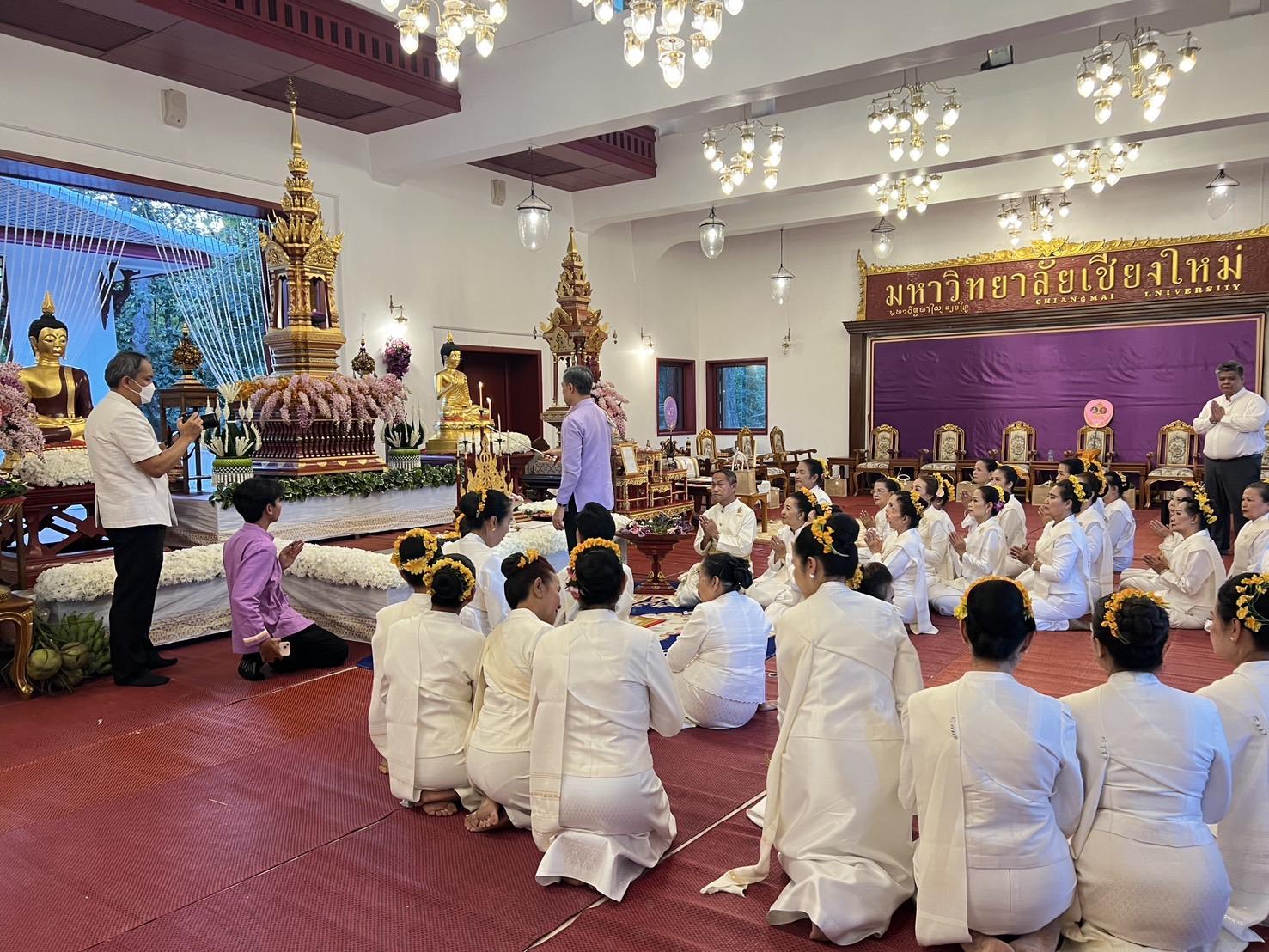 โดยมี ศาสตราจารย์ ดร.นพ.พงษ์รักษ์ ศรีบัณฑิตมงคล อธิการบดีมหาวิทยาลัยเชียงใหม่ ให้เกียรติเป็นประธานในพิธี พร้อมด้วย ศาสตราจารย์ปฏิบัติ ดร.ชรินทร์ เตชะพันธุ์ รองอธิการบดี และคณะผู้บริหาร เจ้าหน้าที่ เข้าร่วมพิธีฯ ณ หอศิลป์ปิ่นมาลา มหาวิทยาลัยเชียงใหม่ และ ศาลาธรรม มหาวิทยาลัยเชียงใหม่