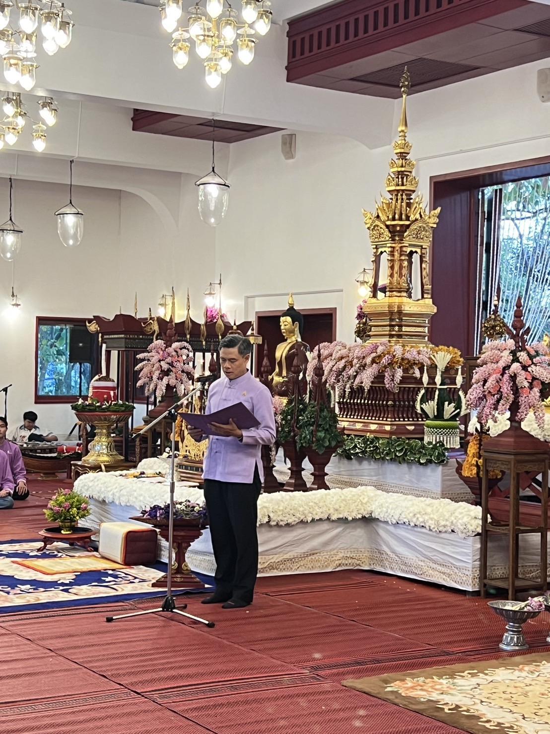Additionally, this event was led by Professor Dr. Pongrak Sribunditmongkol, President of Chiang Mai University, together with Professor of Practice Dr. Charin Techapun, Vice President, and other university executives and staff participated in the religious ceremony, included Buddhist rites, a sermon delivered by the presiding monk, offering of donations, and a merit-making ceremony at Pinmala Art Gallery, Chiang Mai University and Dhamma pavilion, Chiang Mai University.