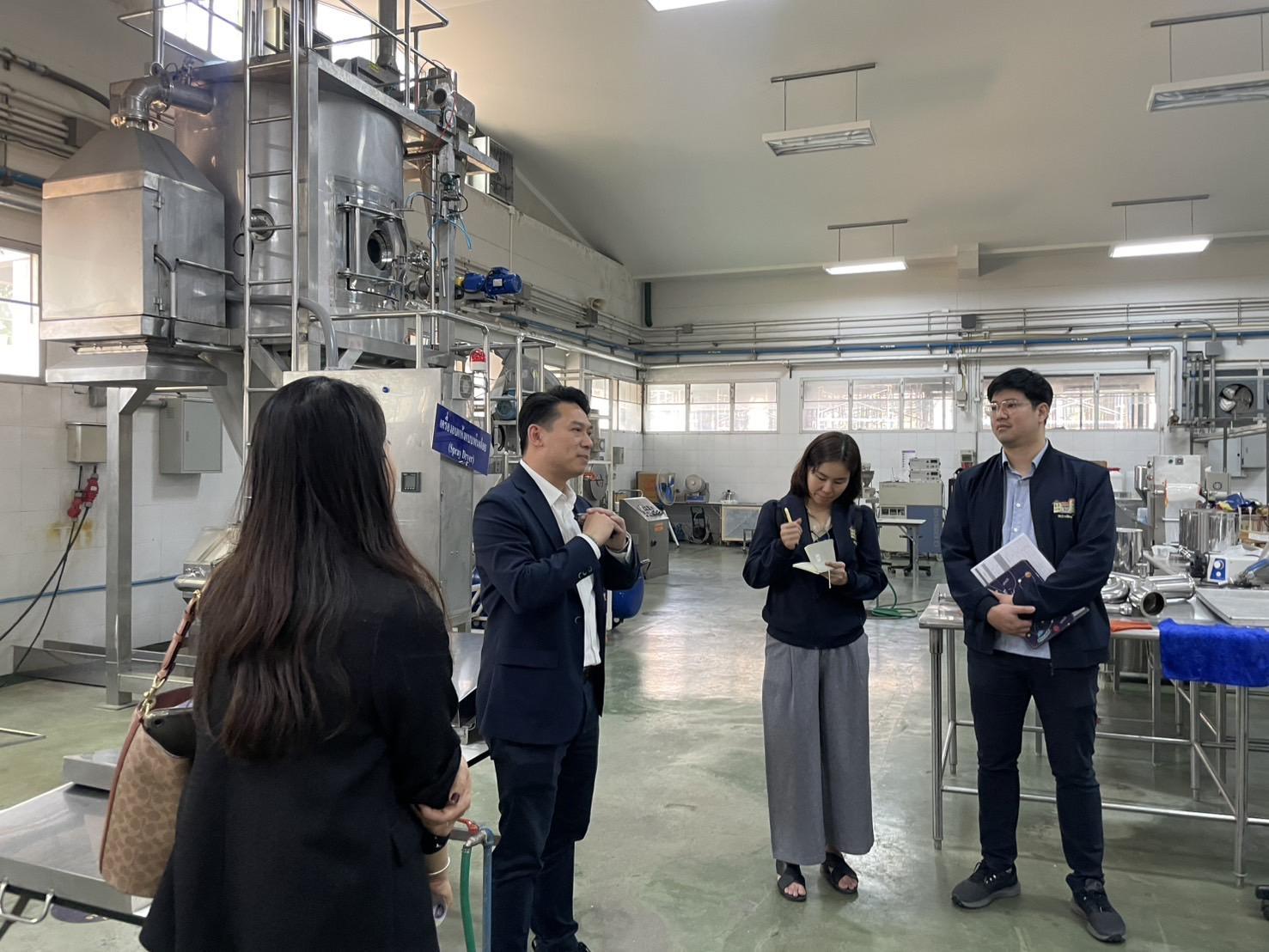 February 4, 2025 – Assoc.Prof.Dr. Yuthana Phimolsiripol, Dean, and Assoc.Prof.Dr. Niramon Utama-ang, Associate Dean, welcomed a study visit delegation from the Office of the National Economic and Social Development Council (NESDC). The delegation visited the Faculty of Agro-Industry, exploring the laboratory, sensory evaluation unit, Food Innovation and Packaging Center, and pilot plant. The visit aimed to assess the faculty’s readiness in workforce development that aligns with future labor market demands. This initiative is part of NESDC’s pilot project on designing vocational workforce development towards high-competency manpower to support the Northern Economic Corridor (NEC) advancement. A total of seven participants joined the study visit.