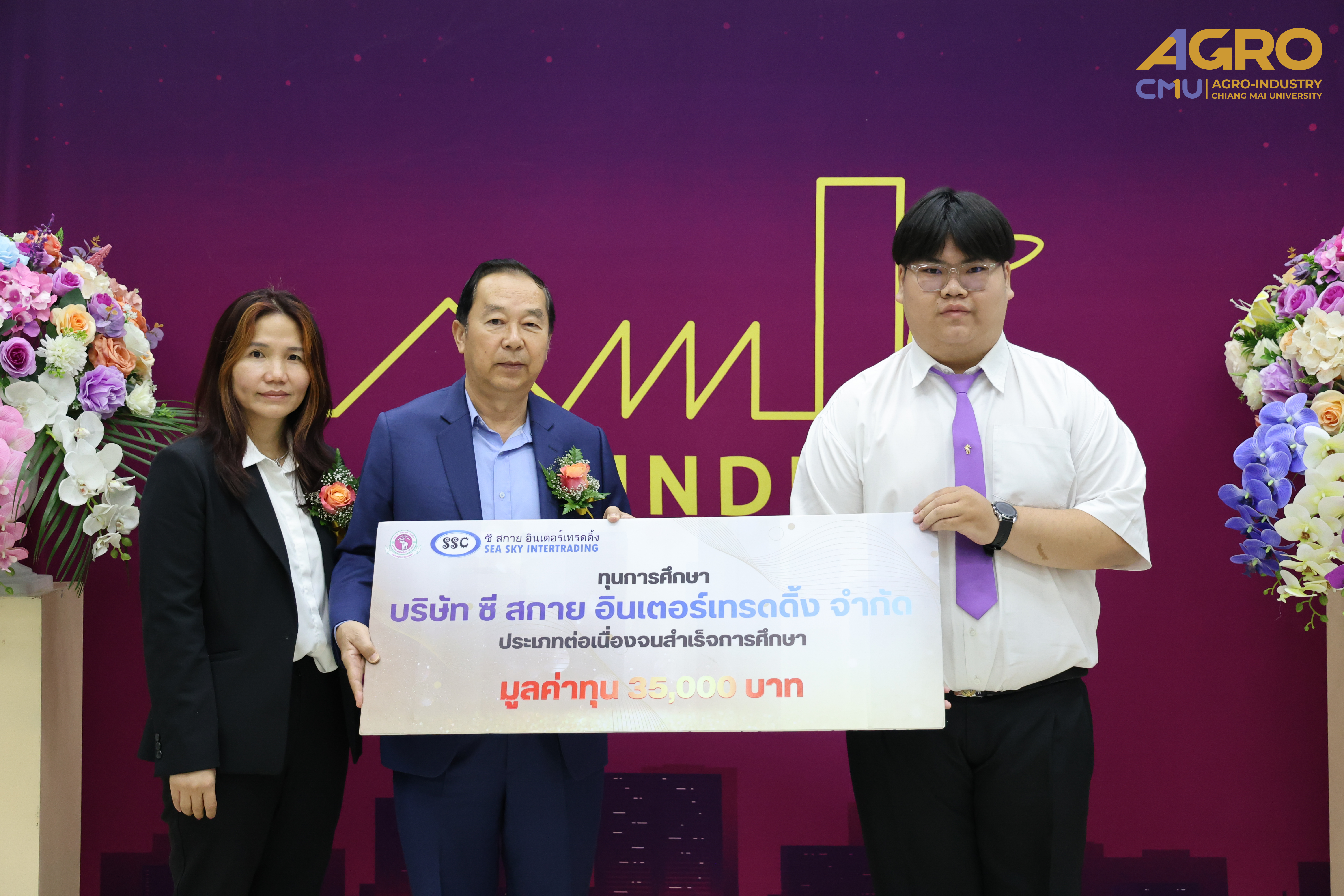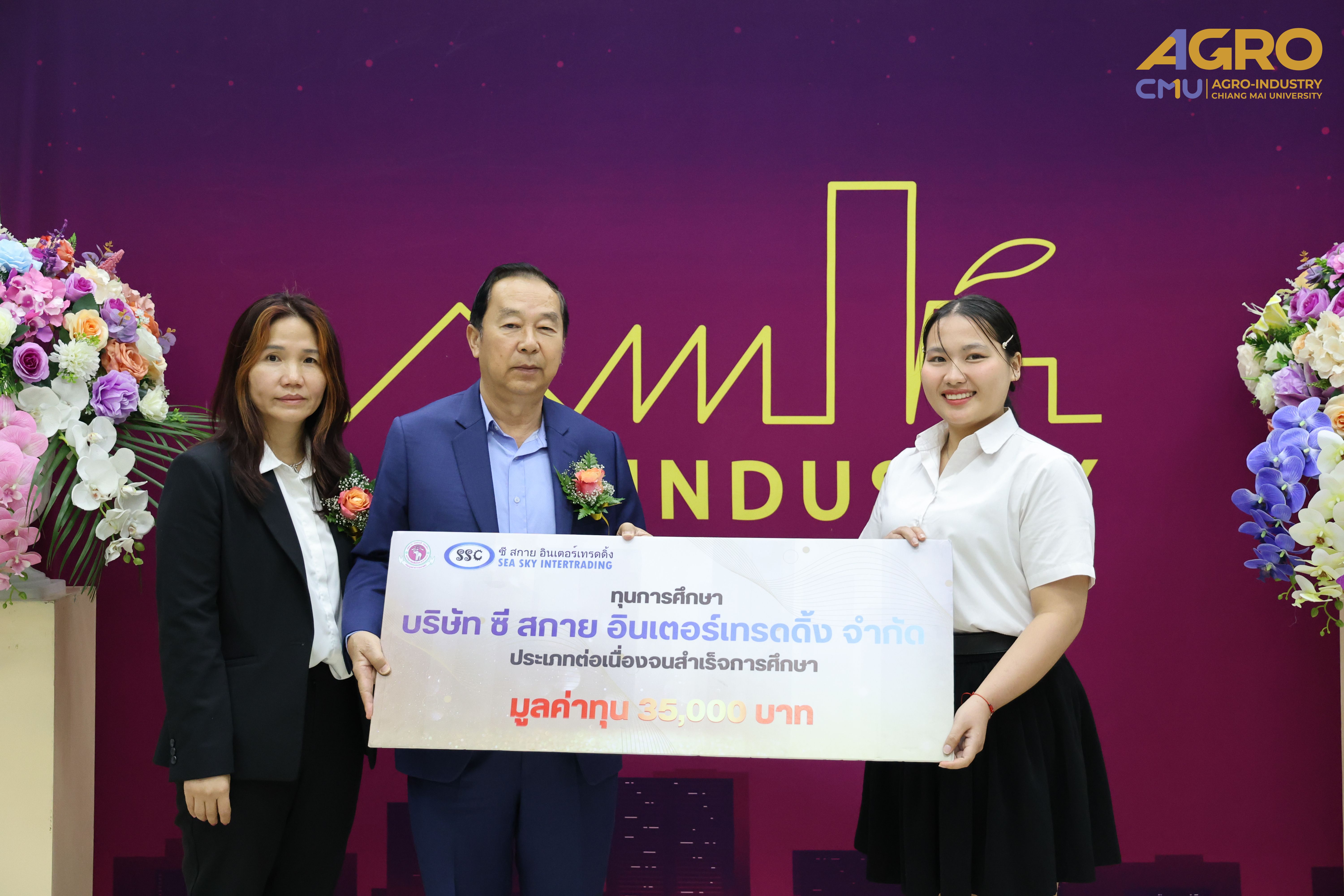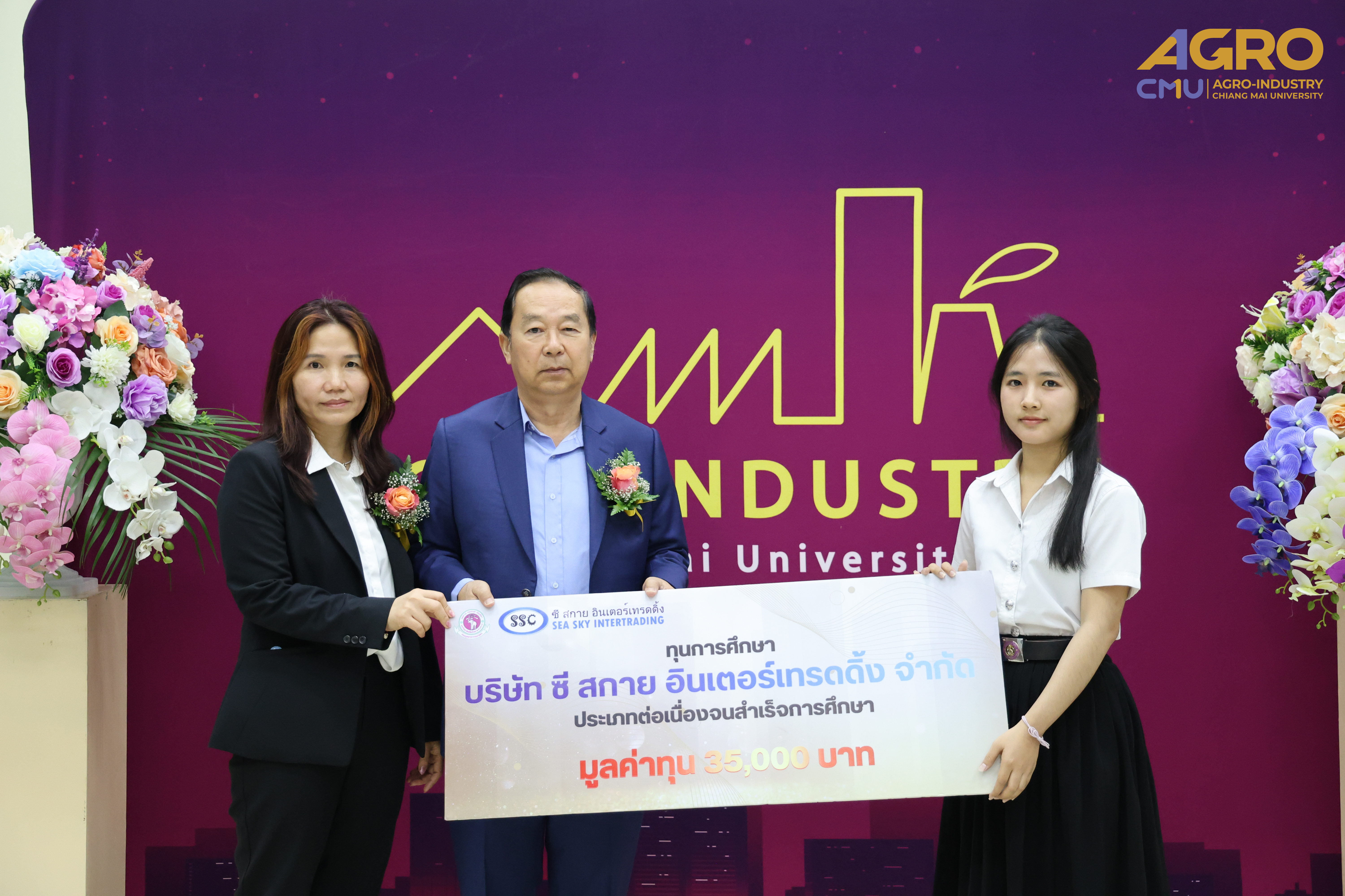 On February 4, 2025, Associate Professor Dr. Yuthana Phimolsiripol, Dean of the Faculty of Agro-Industry, President for Ceremony for the 2024 academic year Faculty of Agro-Industry Scholarship Award and Mr. Termchai Siripong, President of Sea Sky Intertrading Co., Ltd., awarded the Sea Sky Continuing Scholarships for the third year. A total of 13 scholarships, each valued at 35,000 THB per academic year, were granted to students of the Faculty of Agro-Industry, Chiang Mai University. The ceremony took place in Room 1-111-112, Building 1, Faculty of Agro-Industry, with faculty executives, professors, and students in attendance.