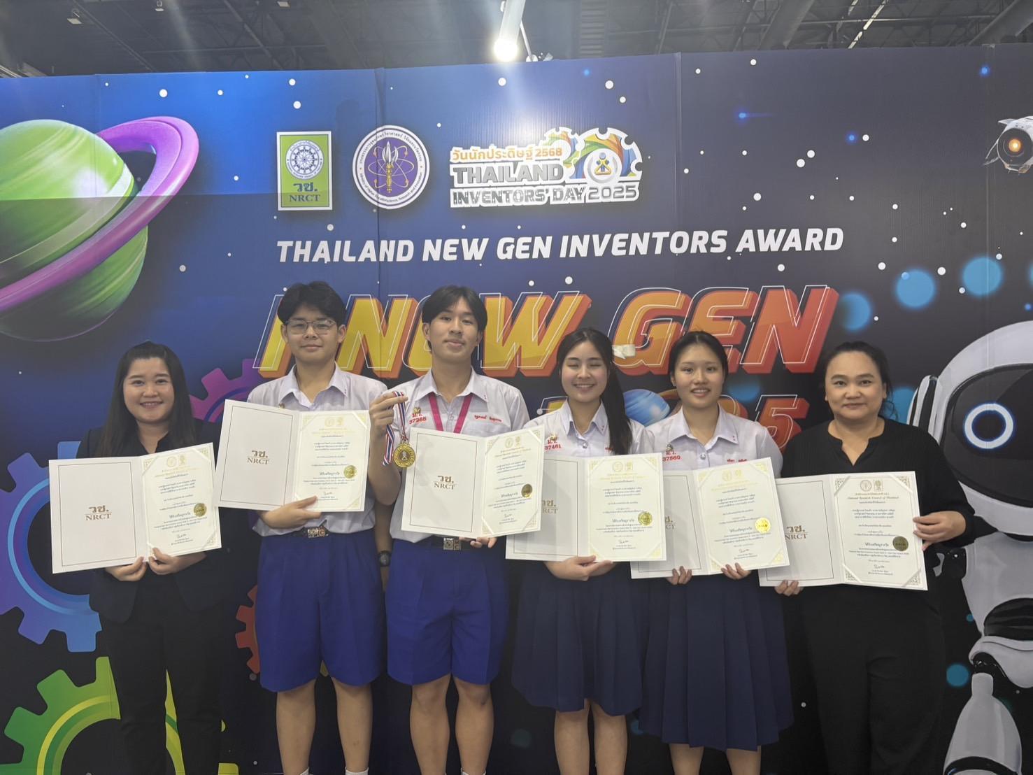 โดยได้รับรางวัลชนะเลิศเหรียญทอง ( I New Gen Award 2025) ในหัวข้อเรื่อง “การพัฒนาไบโอพลาสติกจากเปลือกส้มและเปลือกมะนาว : Development of Bioplastic from Orange and Lime Pells”