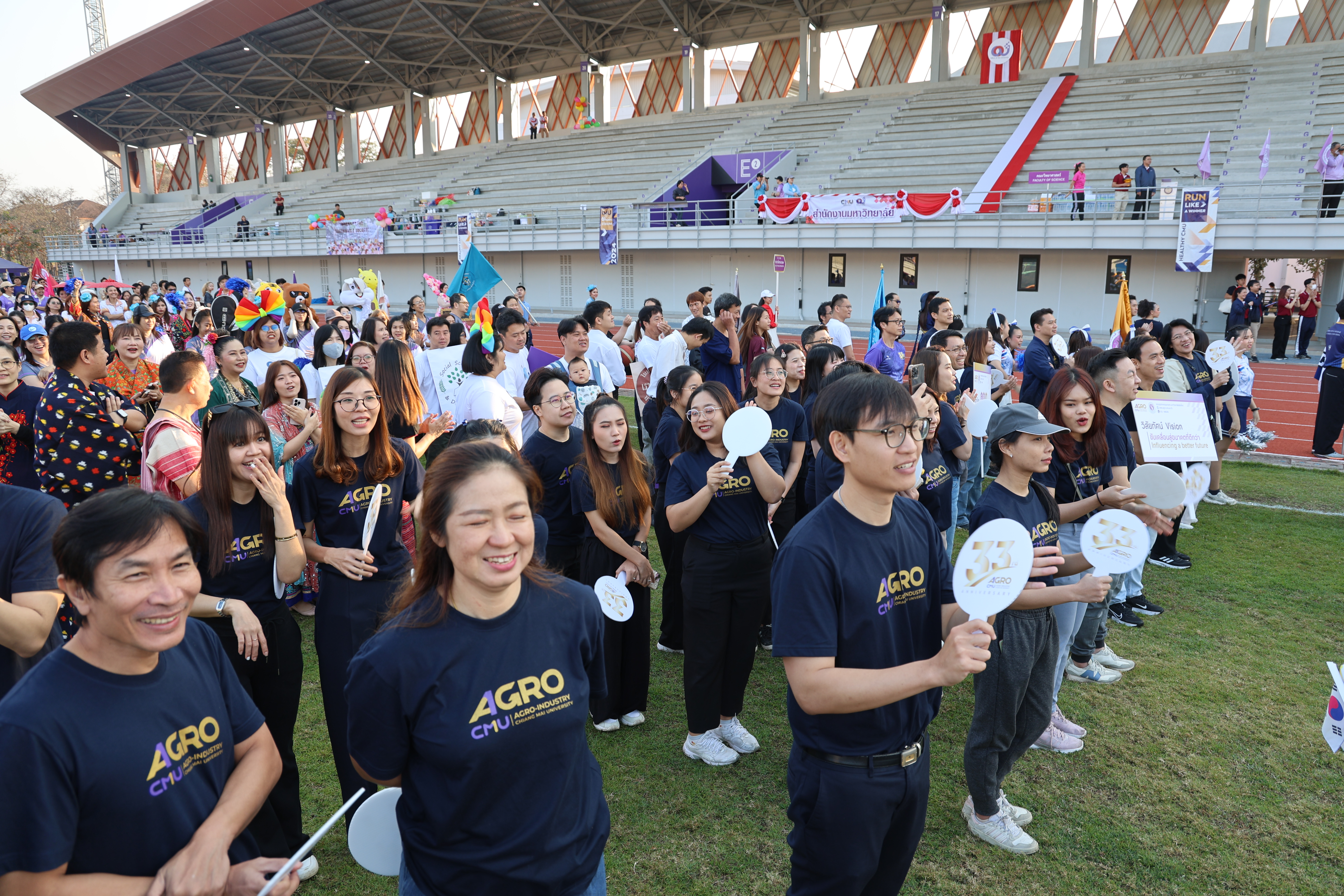 On February 15, 2025, Associate Professor Dr. Yuthana Phimolsiripol, Dean of the Faculty of Agro-Industry, along with the administration, faculty members, and staff of the Faculty of Agro-Industry, participated in the Chiang Mai University Staff Sports Event 2025. The event aimed to encourage Chiang Mai University staff to engage in sports and physical activities to promote good health. Additionally, it served to foster unity and strengthen relationships among staff members from various departments. The event took place at the Chiang Mai University Main Stadium.