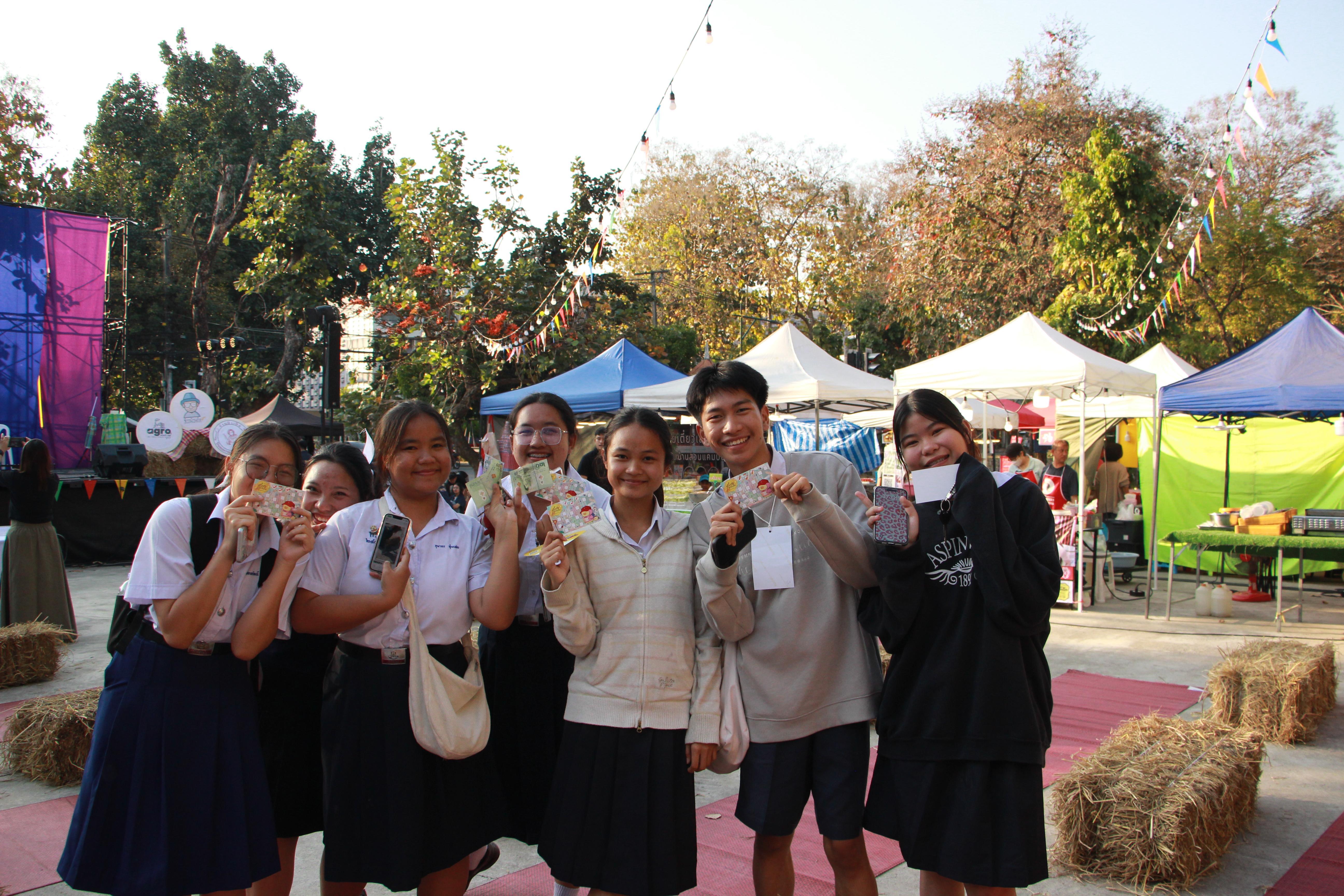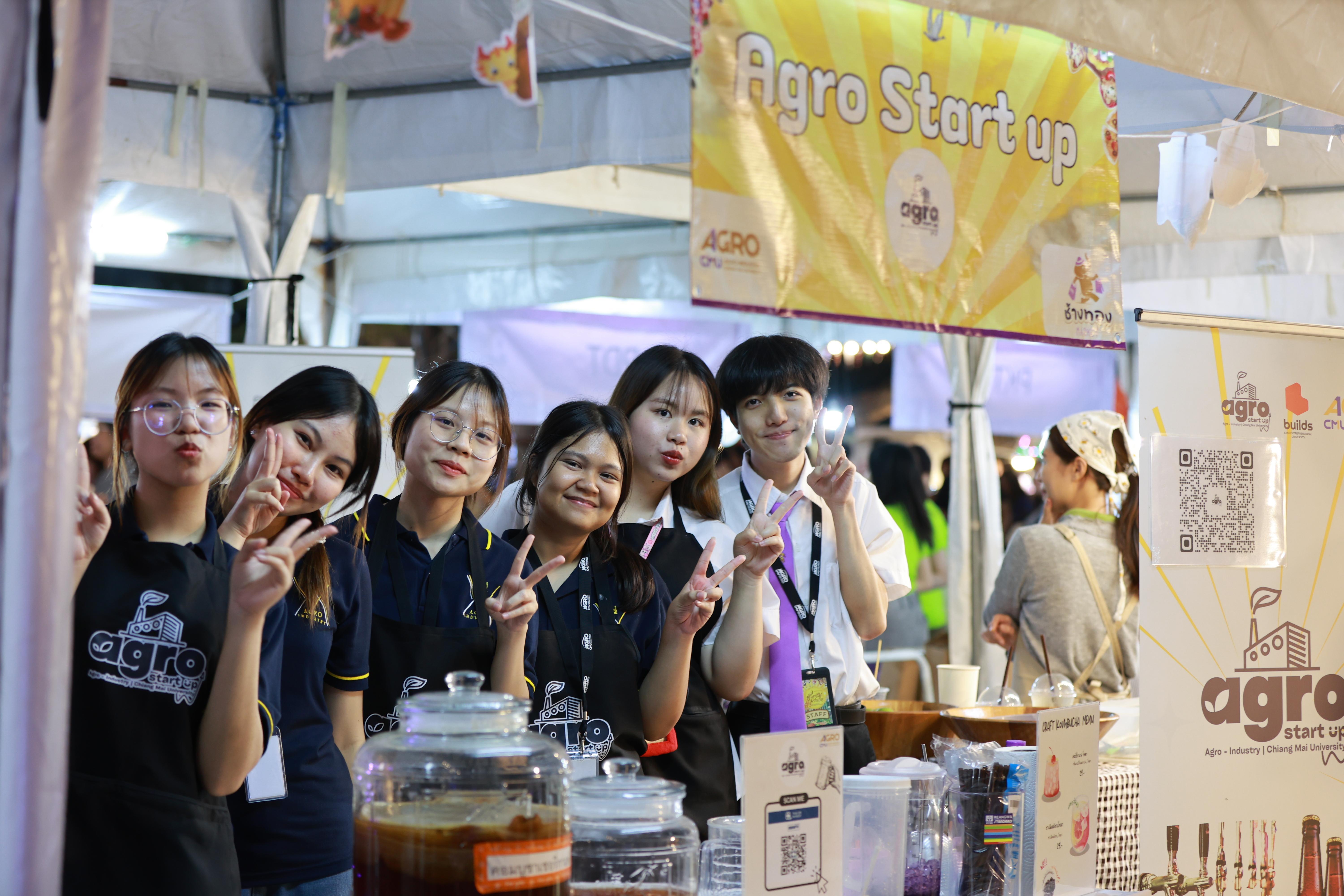 Dr. Thapkrit Khumthup, Assistant Professor responsible for Student Quality Development and Alumni Relations at the Faculty of Agro-Industry, Chiang Mai University, officially opened the event, accompanied by faculty members and a famous Chiang Mai influencer from the "Kongphop Sa Review" page. They toured the student product booths from all six academic departments, as well as booths from alumni and more than 30 external vendors.