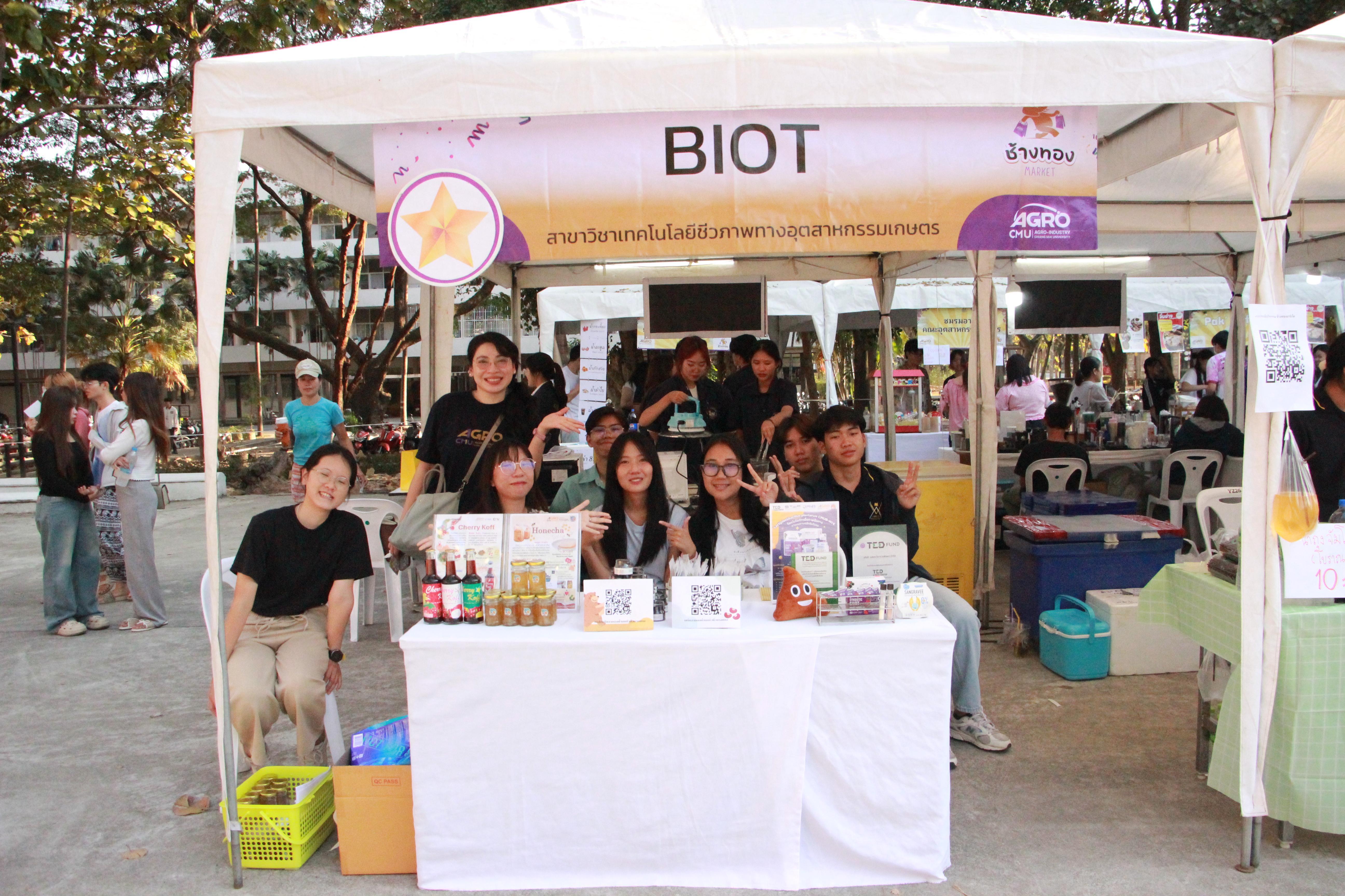 On Wednesday, February 12, 2025, the Student Affairs Development Unit, in collaboration with the Student Club of the Faculty of Agro-Industry, organized the "Chang Thong Market 2025" event at the multifunctional student activity area in front of the Female Student Dormitory Building 2 at Chiang Mai University. The purpose of this event was to allow students to develop the value of products they create through production processes and direct sales to the market and consumers. It also provided an opportunity for students to practice basic entrepreneurial skills and promote avenues for students and alumni to sell their products. The event facilitated the creation of an innovative atmosphere for the students of the Faculty of Agro-Industry.