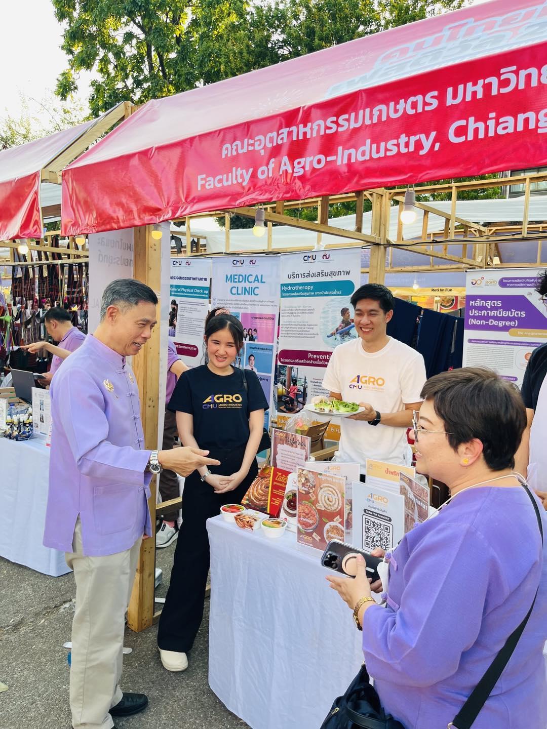 On February 16, 2025, Associate Professor Dr. Niramol Utmang, Associate Dean led the team to present eight academic programs anda non-degree certificate program at the "Kon Thai Mee Dee Festival 2025" at Tha Phae Gate. Additionally, the faculty showcased and sold low-fat Sai Ua (Northern Thai sausage) at the event.