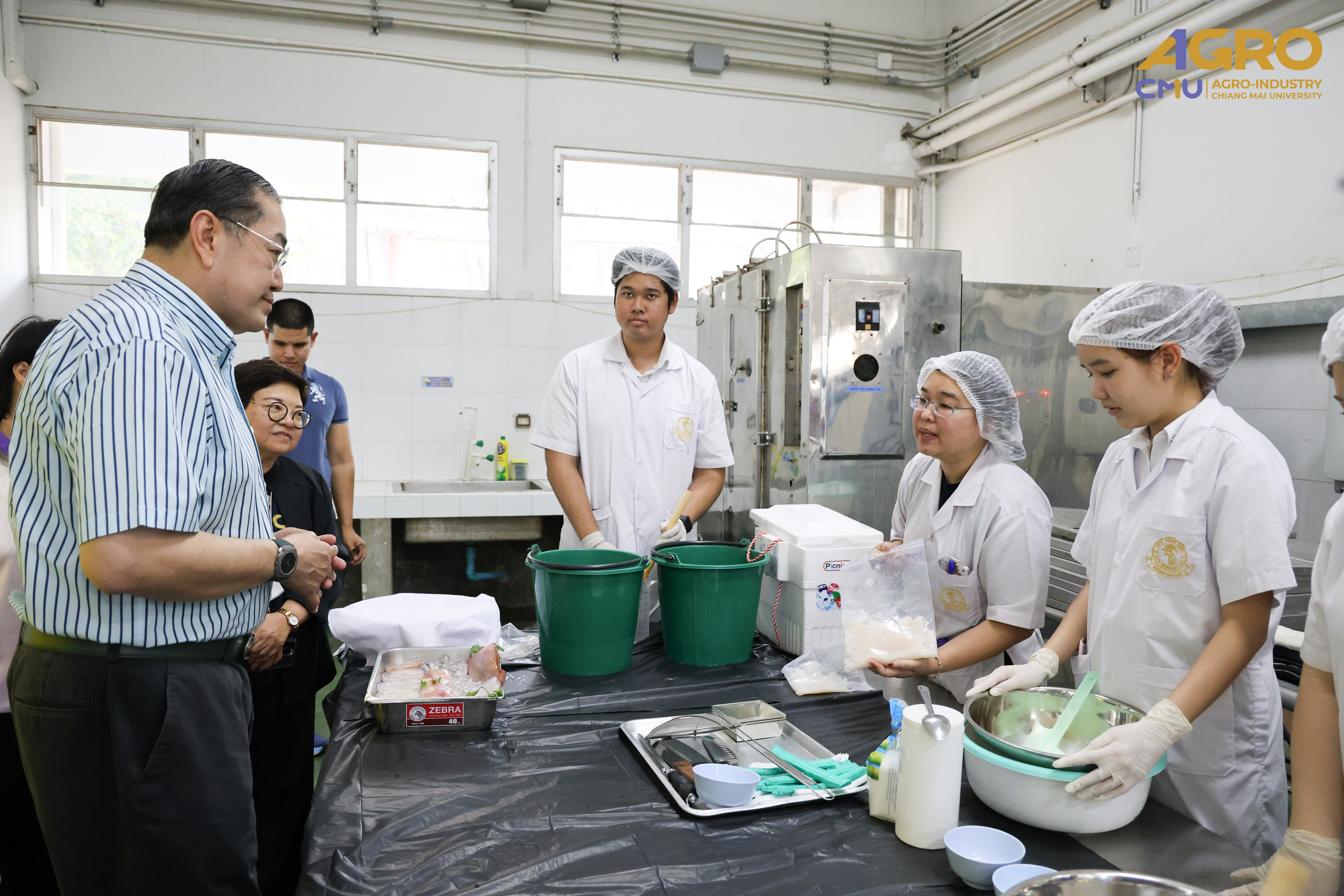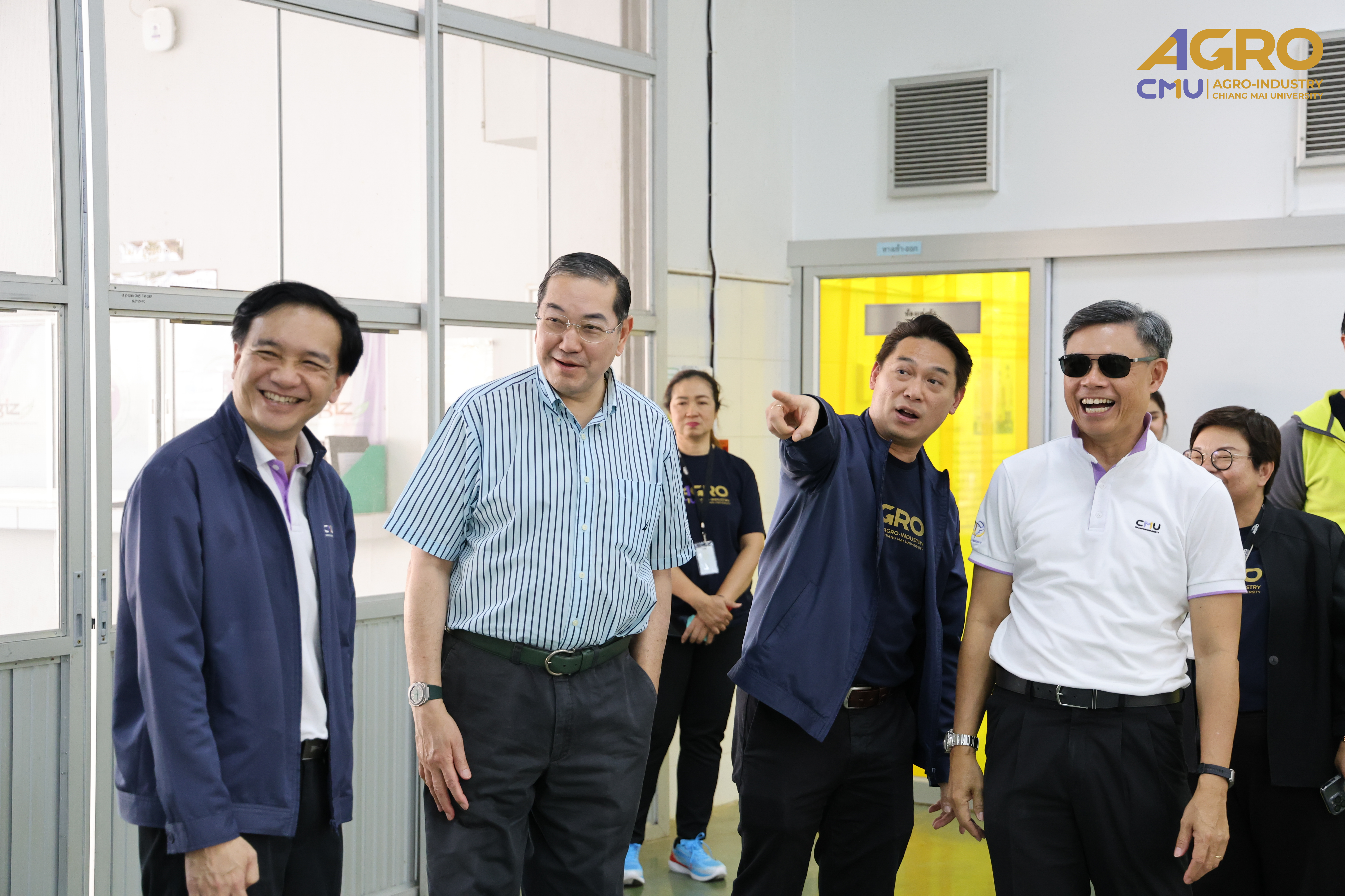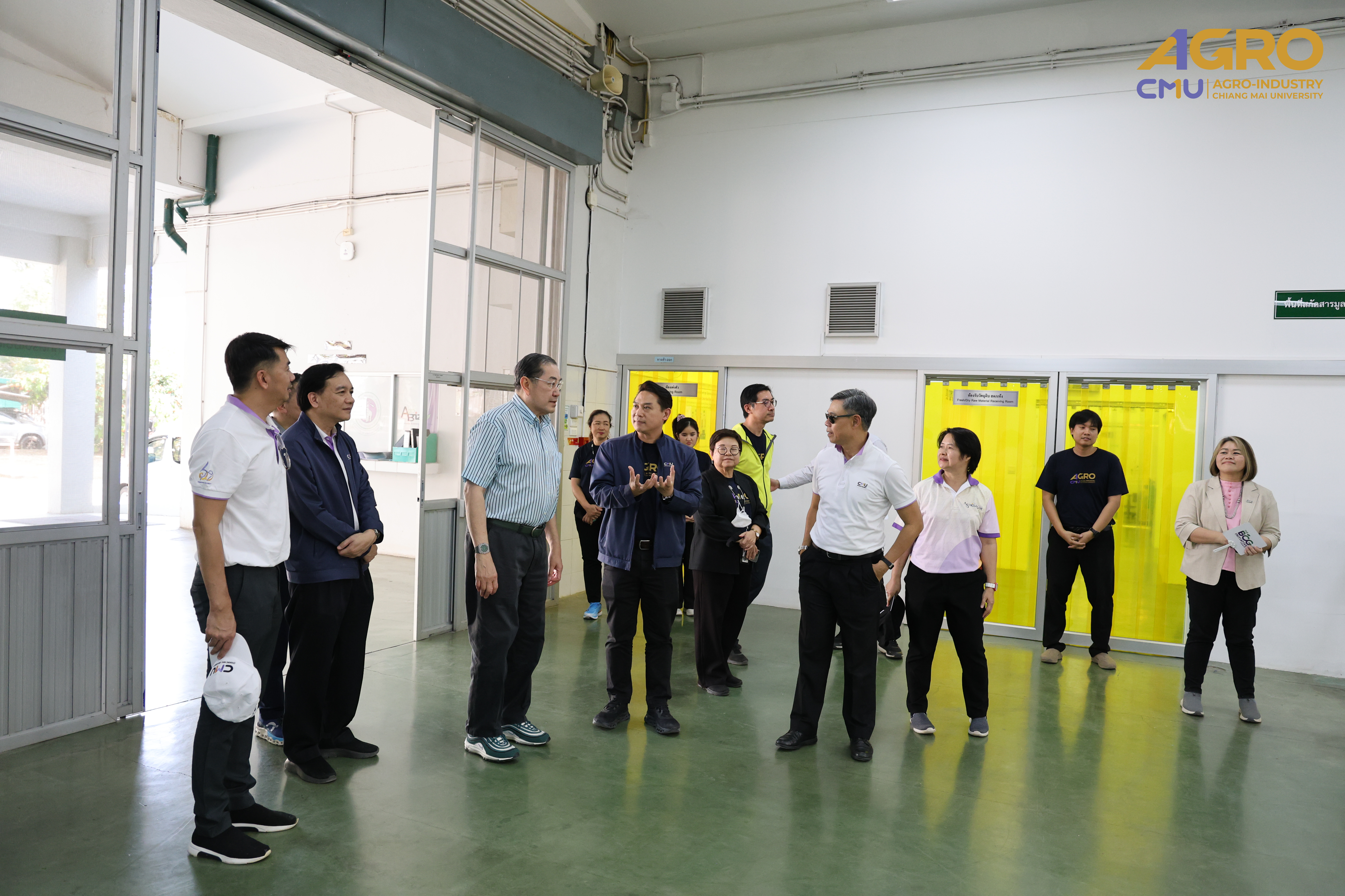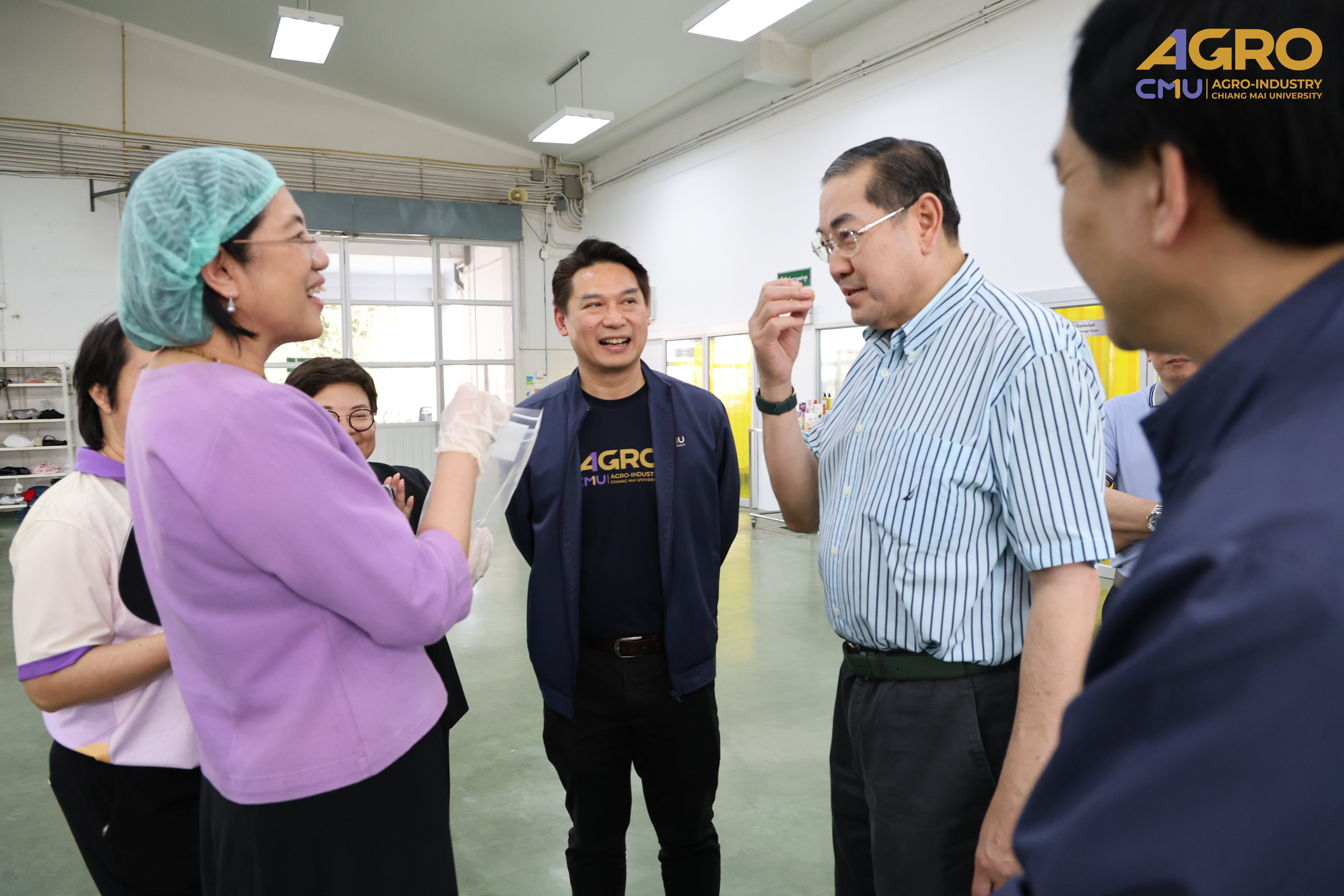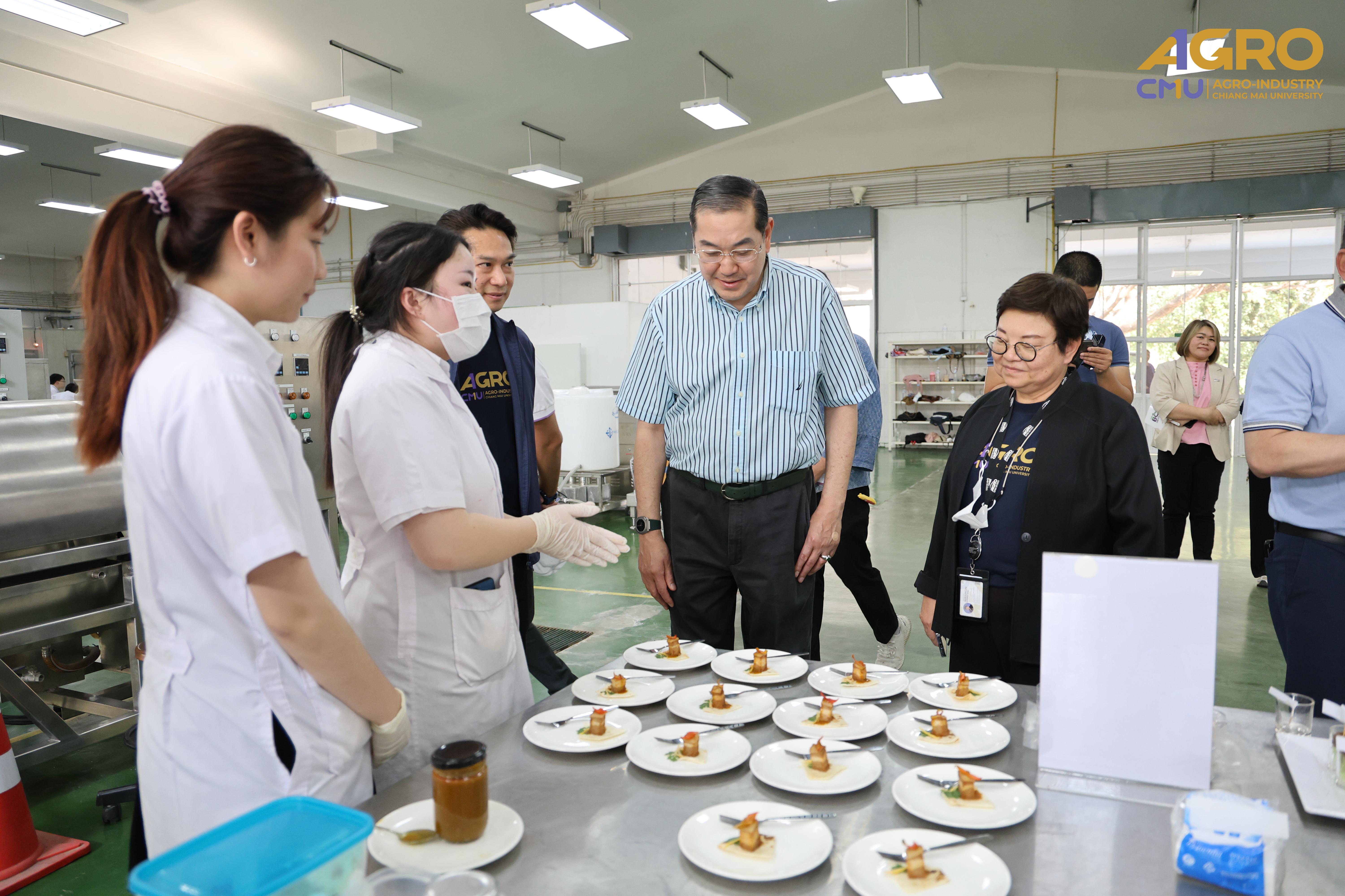 February 21, 2025 – Professor Emeritus Dr. Surakiart Sathirathai, President of the Chiang Mai University Council, together with Professor Dr. M.D. Pongruk Sribanditmongkol, President of Chiang Mai University, and the university's executive team, visited the Pilot Plant at the Faculty of Agro-Industry to explore advancements in food processing technology and agro-industrial innovations.