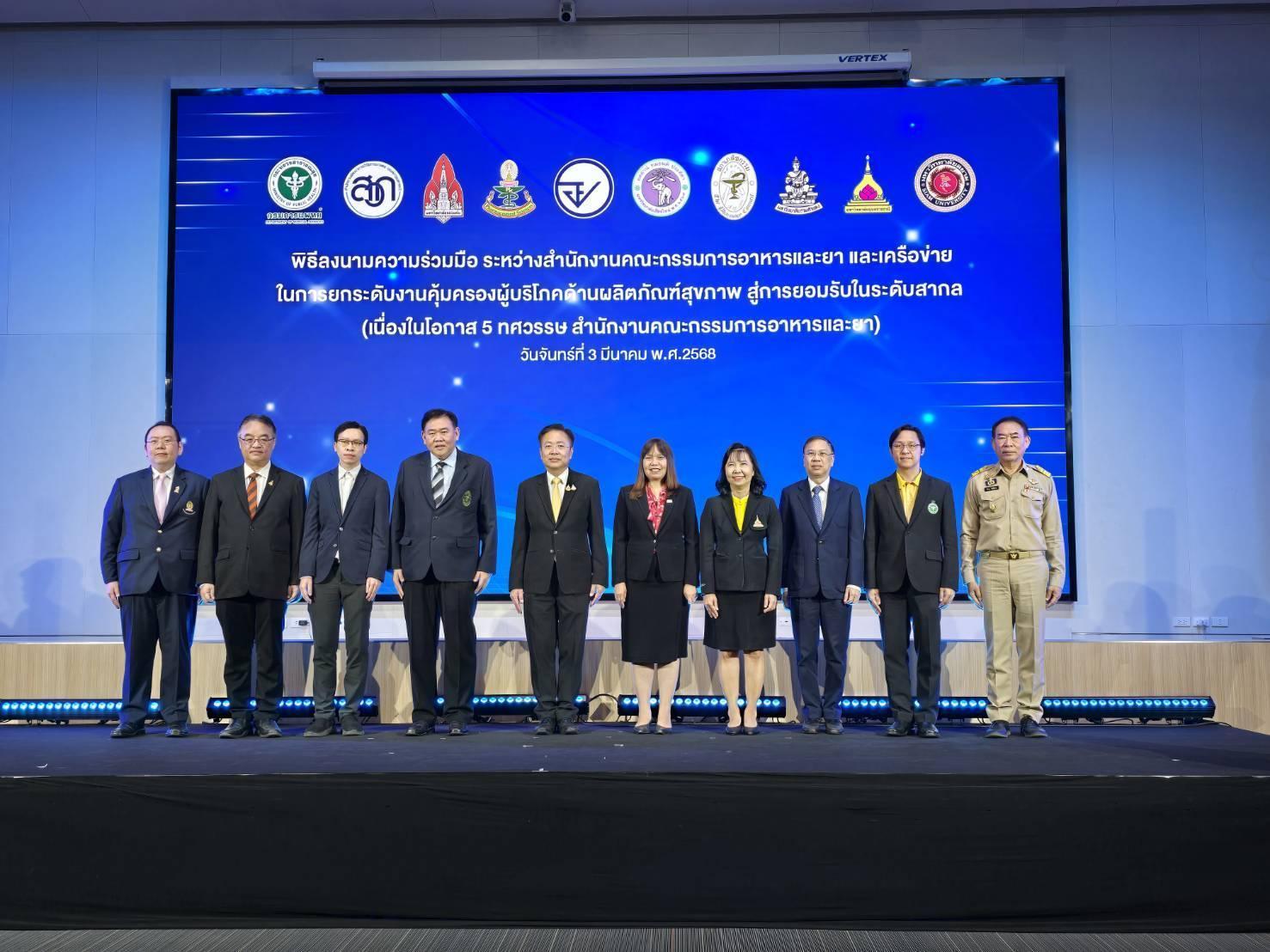 On March 3, 2025, Associate Professor Dr.Winita Punyodom, Vice President of Chiang Mai University, together with Associate Professor Dr.Yuthana Phimolsiripol, participated in the signing ceremony of the Memorandum of Understanding (MOU) between the Food and Drug Administration (FDA) and the Pharmacy Council. This collaboration aims to integrate academic cooperation, enhance research, and drive innovations in health products towards international recognition. The event took place at the OSSC Building, Food and Drug Administration.