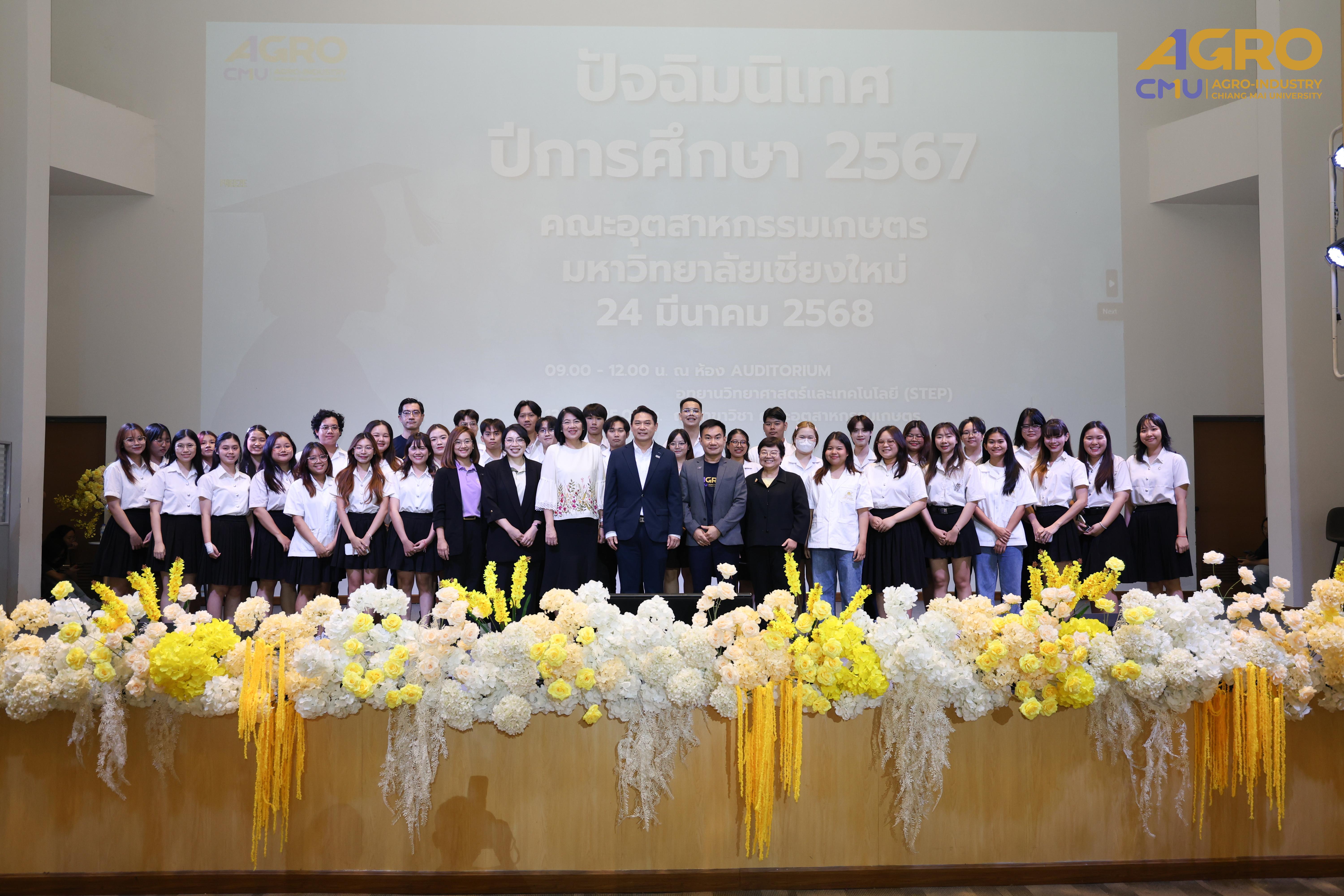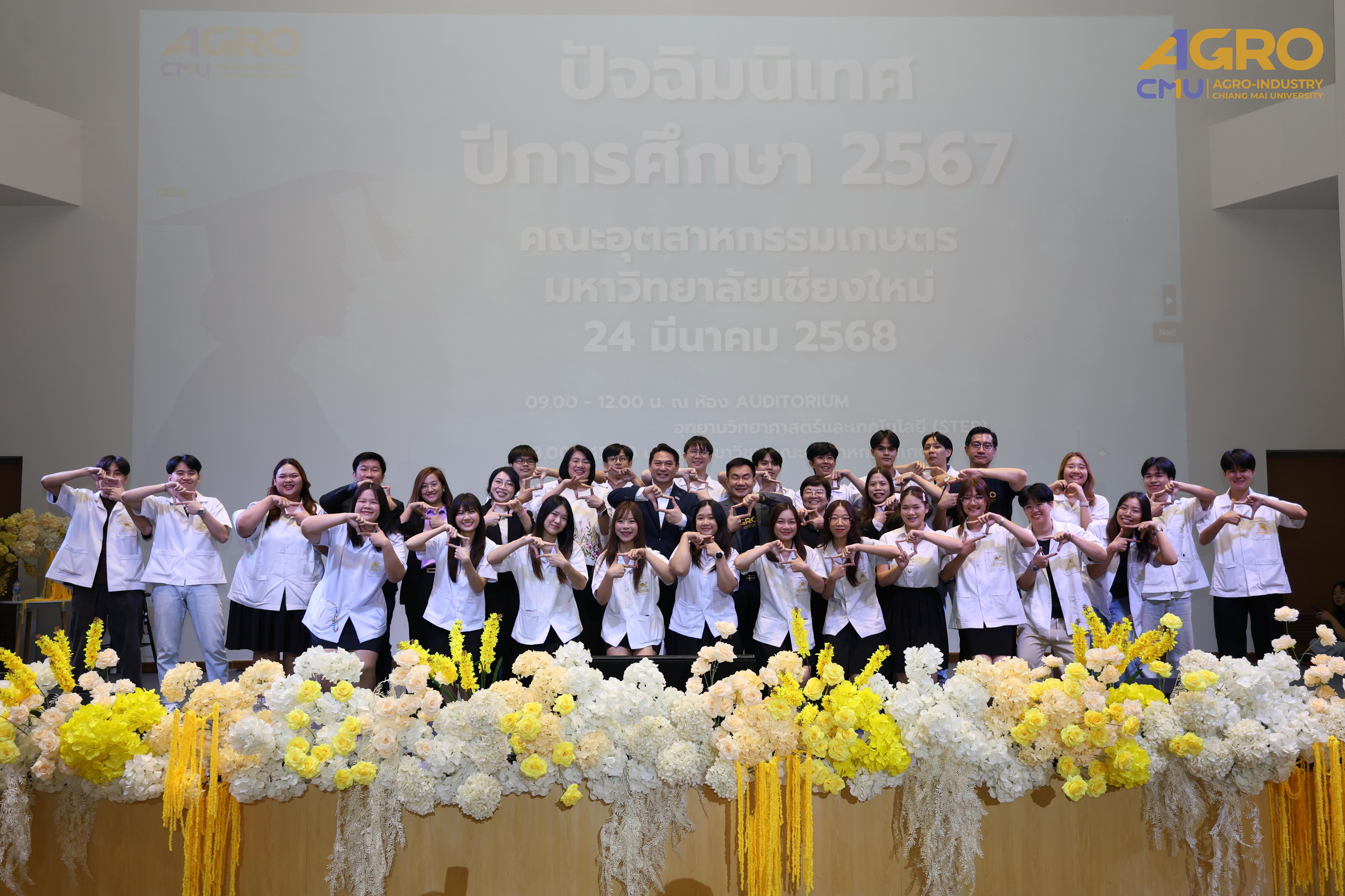 เมื่อวันที่ 24 มีนาคม 2568 คณะอุตสาหกรรมเกษตร มหาวิทยาลัยเชียงใหม่ ได้จัดกิจกรรม “ปัจฉิมนิเทศนักศึกษา ปีการศึกษา 2567” โดยมี รองศาสตราจารย์ ดร.ยุทธนา พิมลศิริผล คณบดีคณะอุตสาหกรรมเกษตร เป็นประธานเปิดงานและกล่าวให้โอวาทแก่นักศึกษา ณ ห้อง Auditorium ชั้น 1 อุทยานวิทยาศาสตร์และเทคโนโลยี มหาวิทยาลัยเชียงใหม่ (STeP)