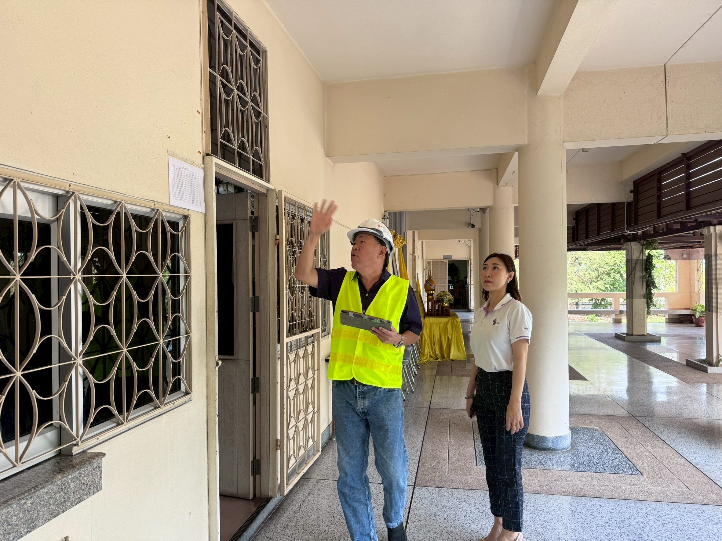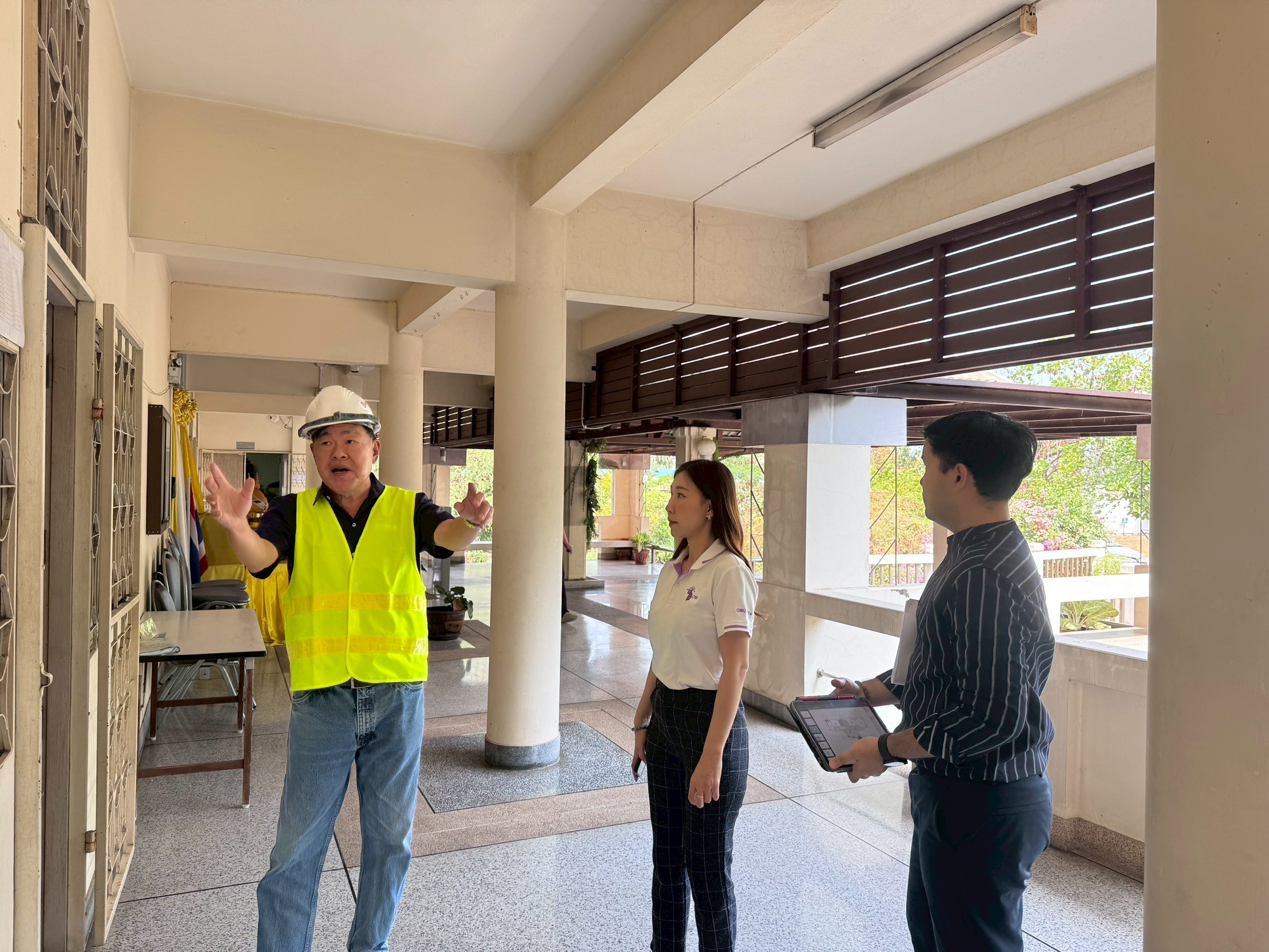 On Friday, April 4, 2025, from 10:00 AM to 12:00 PM, the Engineering Institute of Thailand under the Royal Patronage (Northern Region 1) in collaboration with the Faculty of Engineering at Chiang Mai University and the Chiang Mai University Engineering Alumni Association (Northern Branch) provided assistance in inspecting the Faculty of Agro-Industry building (Samut Sakhon), which may have been affected by the 8.2 magnitude earthquake on land, with the epicenter located in Mandalay, Myanmar, on Friday, March 28, 2025. The results from the inspection showed that the Faculty of Agro-Industry building (Samut Sakhon) is safe and can be used as normal.