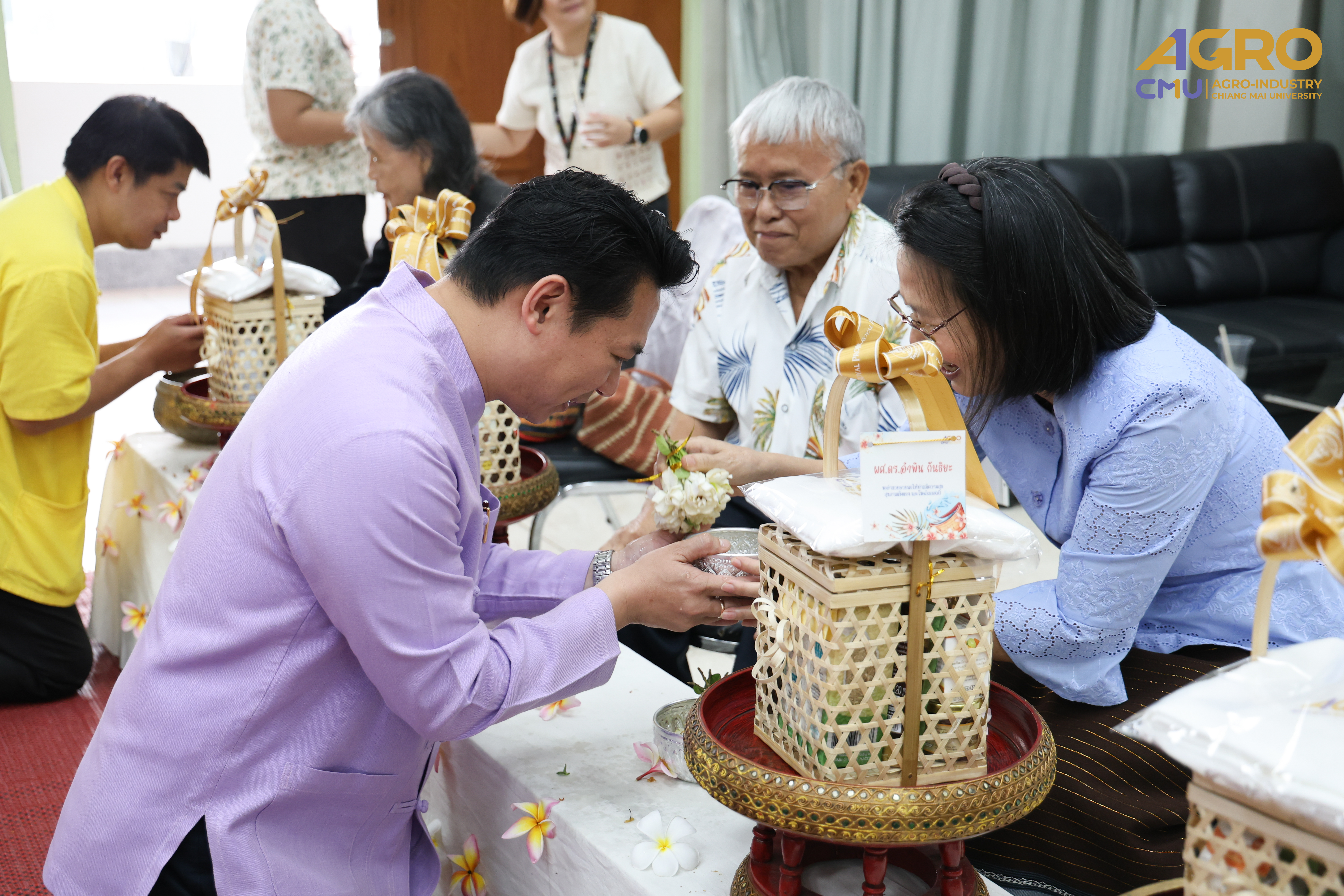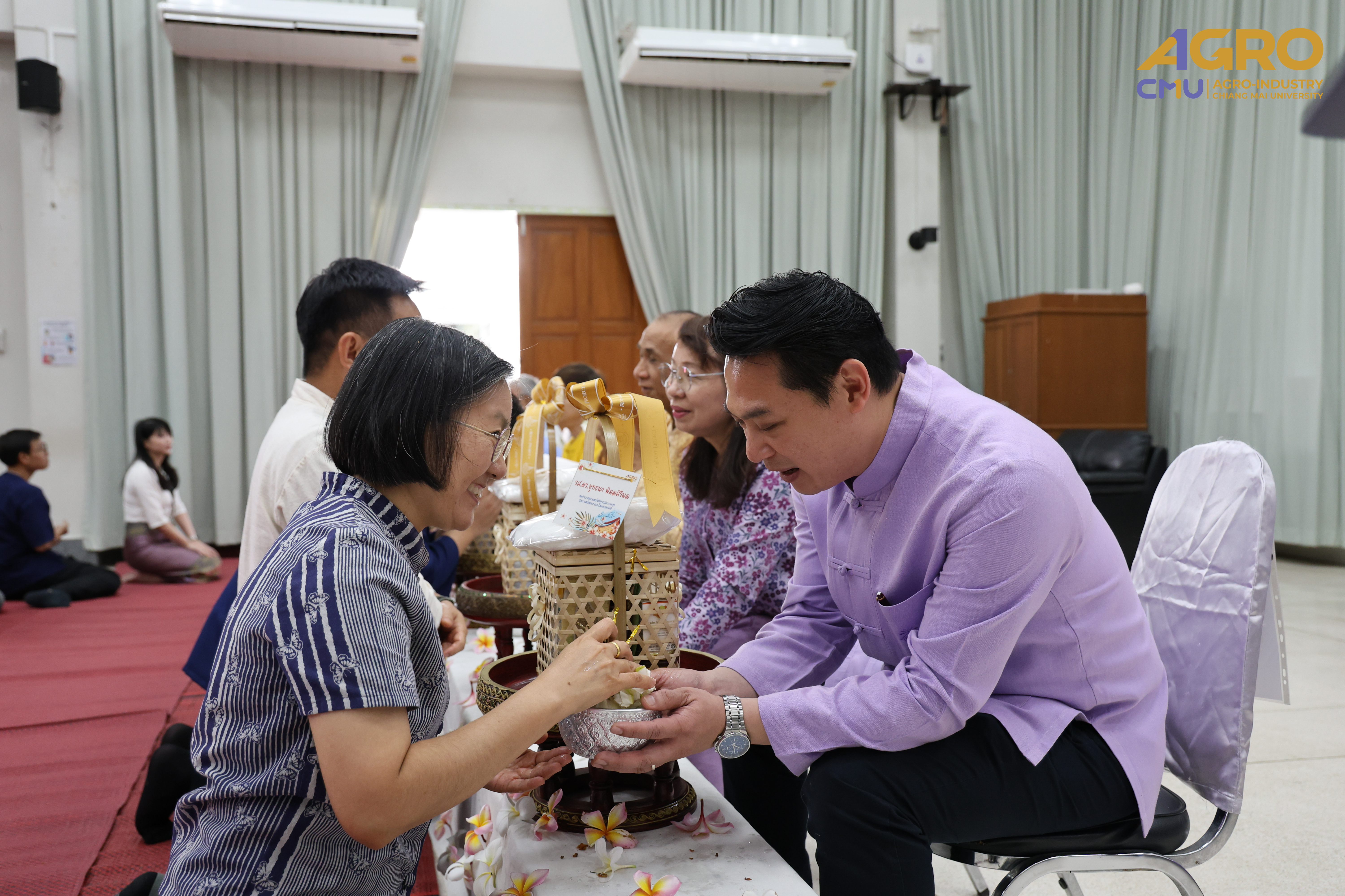On April 18, 2025, the Faculty of Agro-Industry, Chiang Mai University, joyfully celebrated the Thai New Year with the traditional “Rod Nam Dam Hua Ceremony”, honoring the former and current dean as well as respected senior faculty members.
