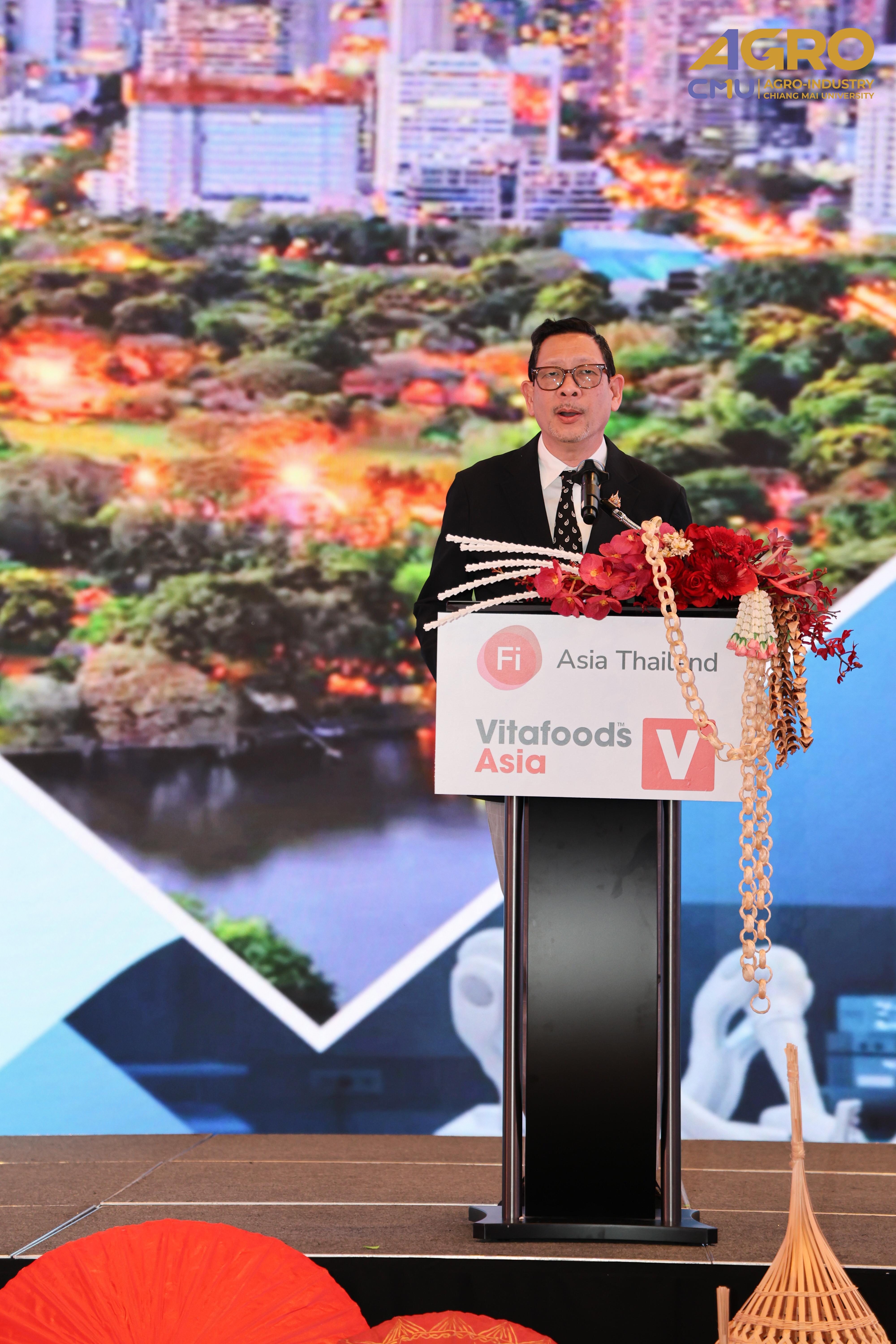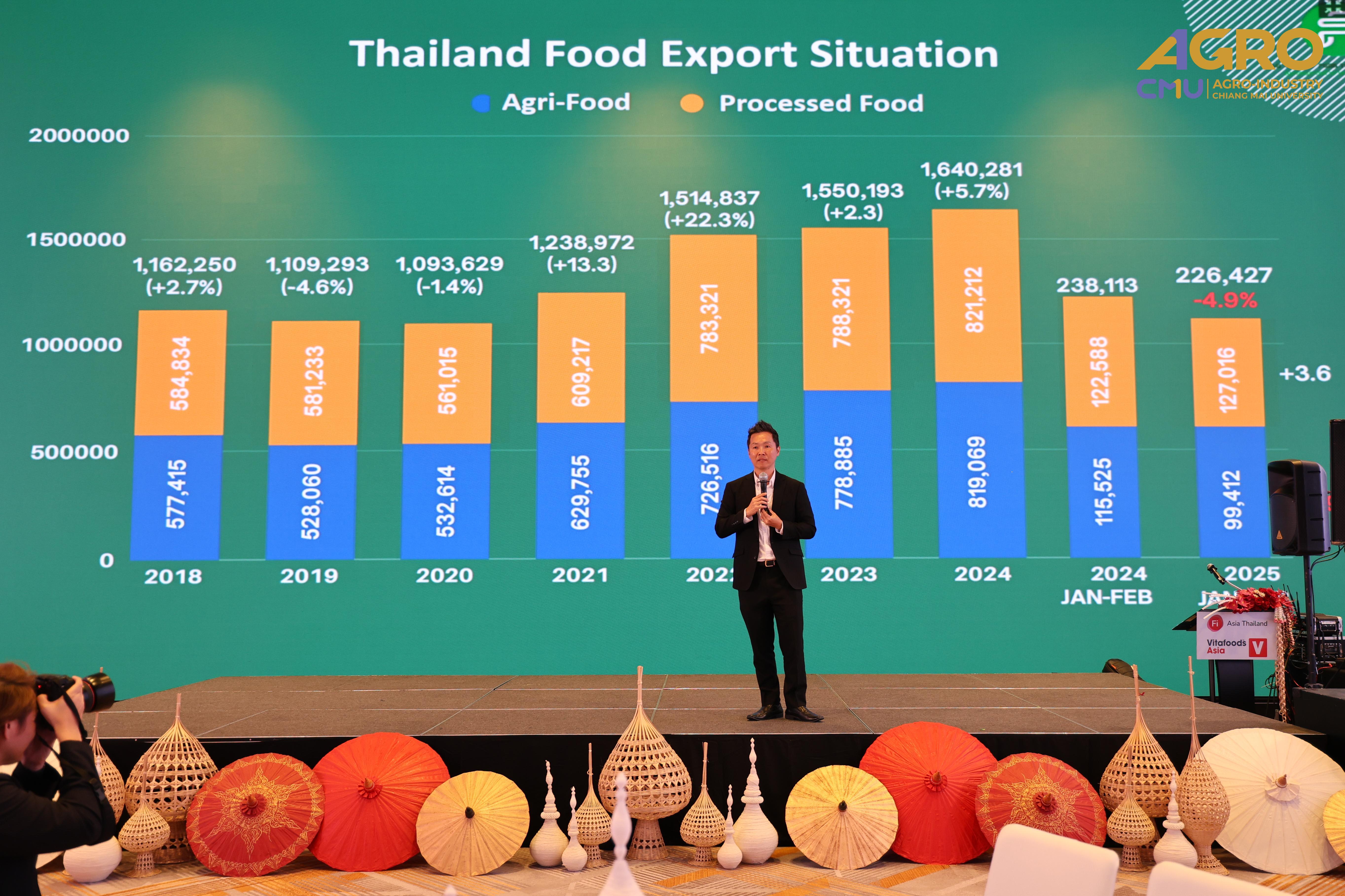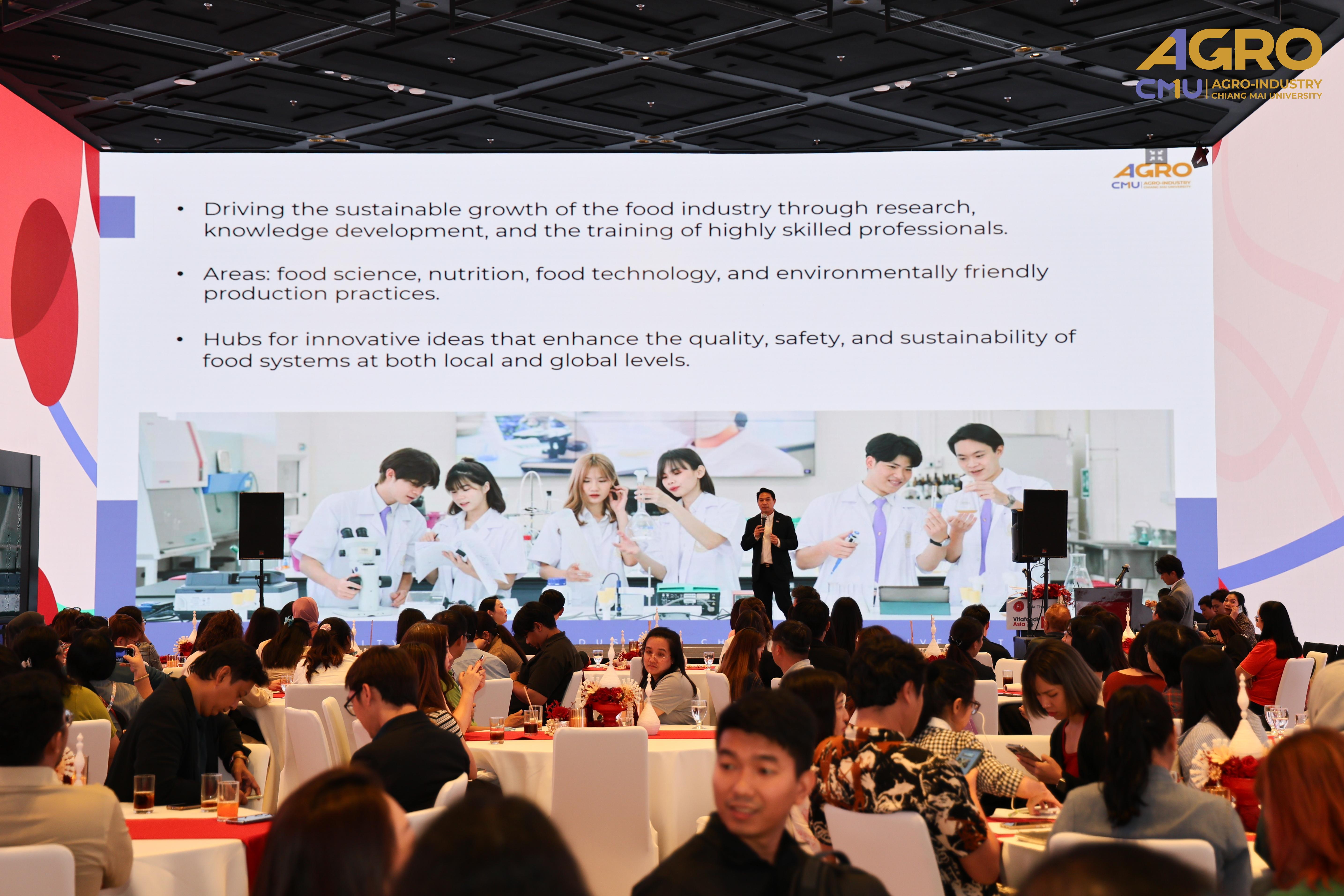 On April 23, 2025, Associate Professor Dr. Yuthana Phimolsiripol, Dean of the Faculty of Agro-Industry, Chiang Mai University, participated in an exchange of ideas and information with the media, leading entrepreneurs, and experts in the food, beverage, and dietary supplement industries. This event provided an excellent opportunity to understand market directions and trends, which will help drive businesses and organizations towards a sustainable future. It also facilitated the creation of new partnerships and the expansion of networks both nationally and regionally. The event was held at the Marriott Hotel in Chiang Mai.