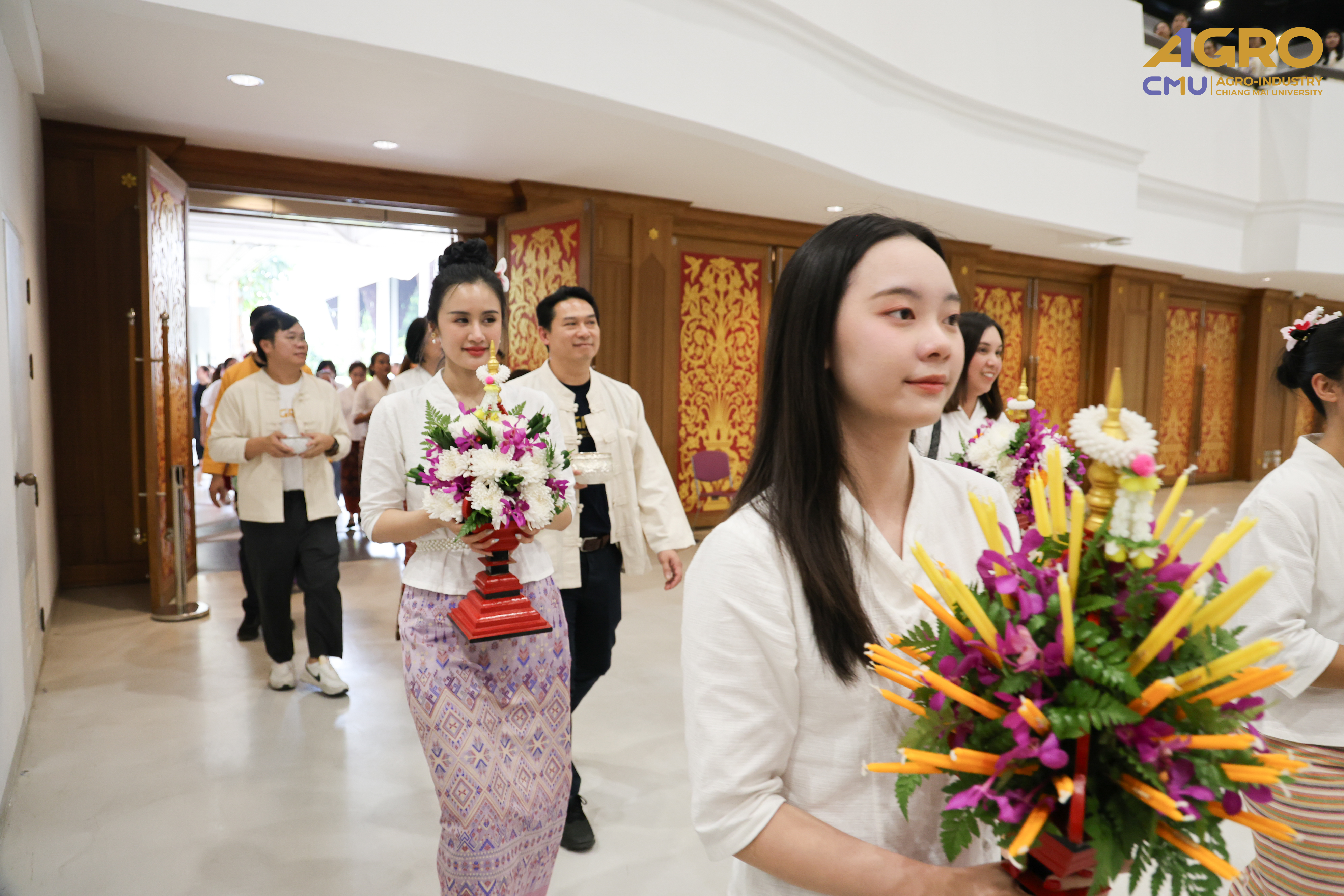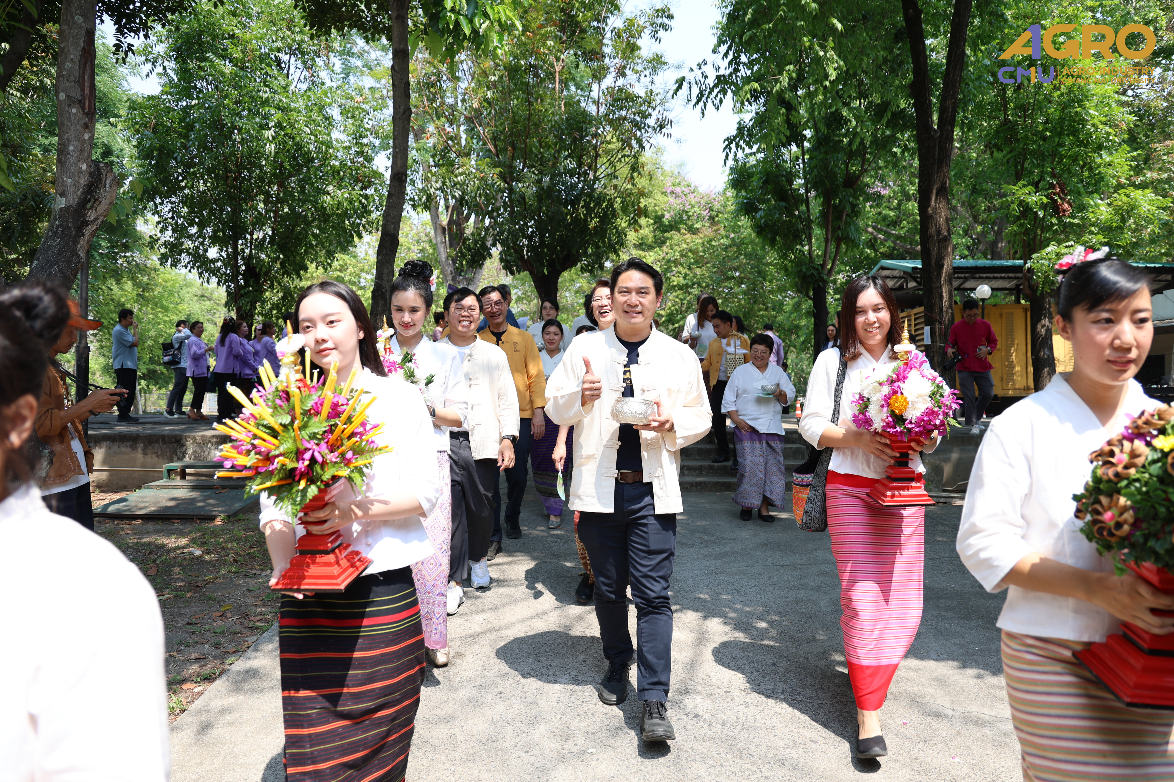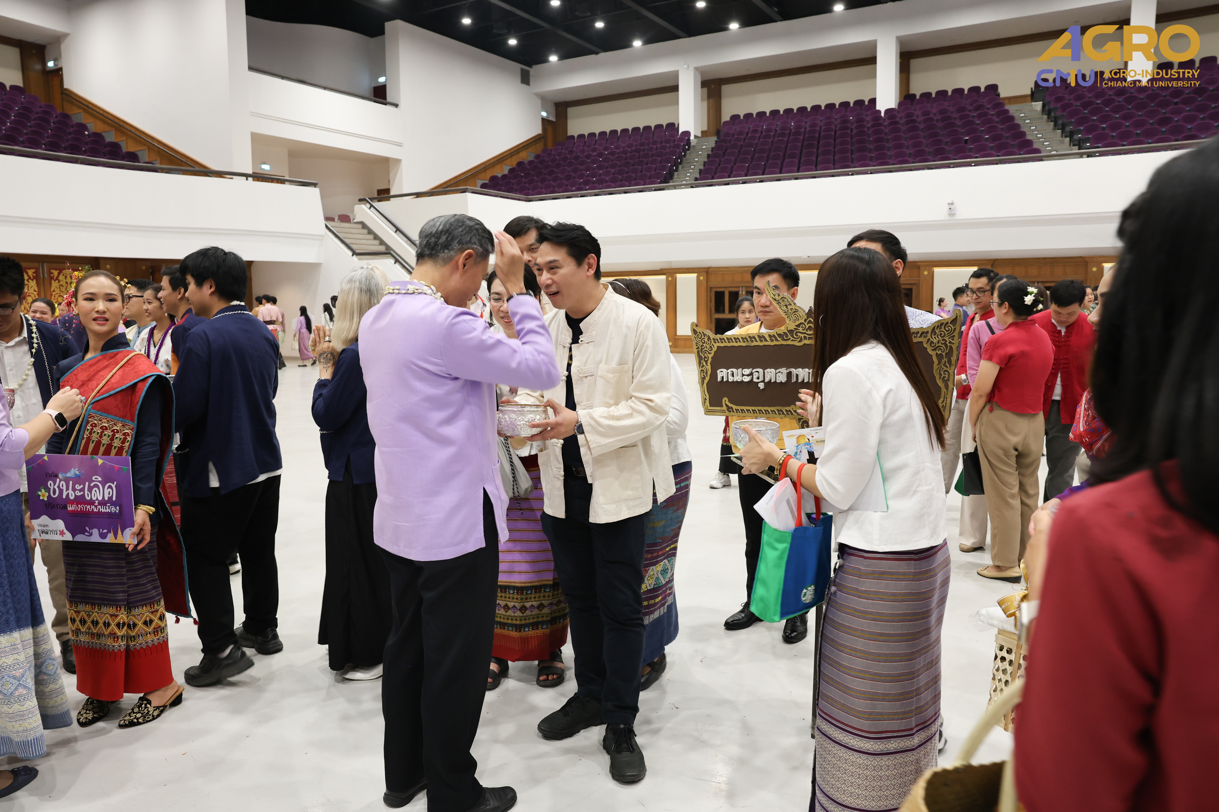 On April 25, 2025, Associate Professor Dr.Yuthana Phimolsiripol, Dean of the Faculty of Agro-Industry, along with the executives, faculty members, participated in “Rod Nam Dum Hua : the Water Pouring Ceremony of the University's President and Elders for the year 2025” , to pay respects to the senior members of the university and ask for blessings from the University's President and Elders for good fortune on the occasion of Songkran Festival which was held at CMU Convention Center, Chiang Mai University. The water blessing ceremony is a significant event in the university's continuous efforts to uphold and preserve Thai traditions, showing respect to elders, and fostering a sense of unity and gratitude within the community.