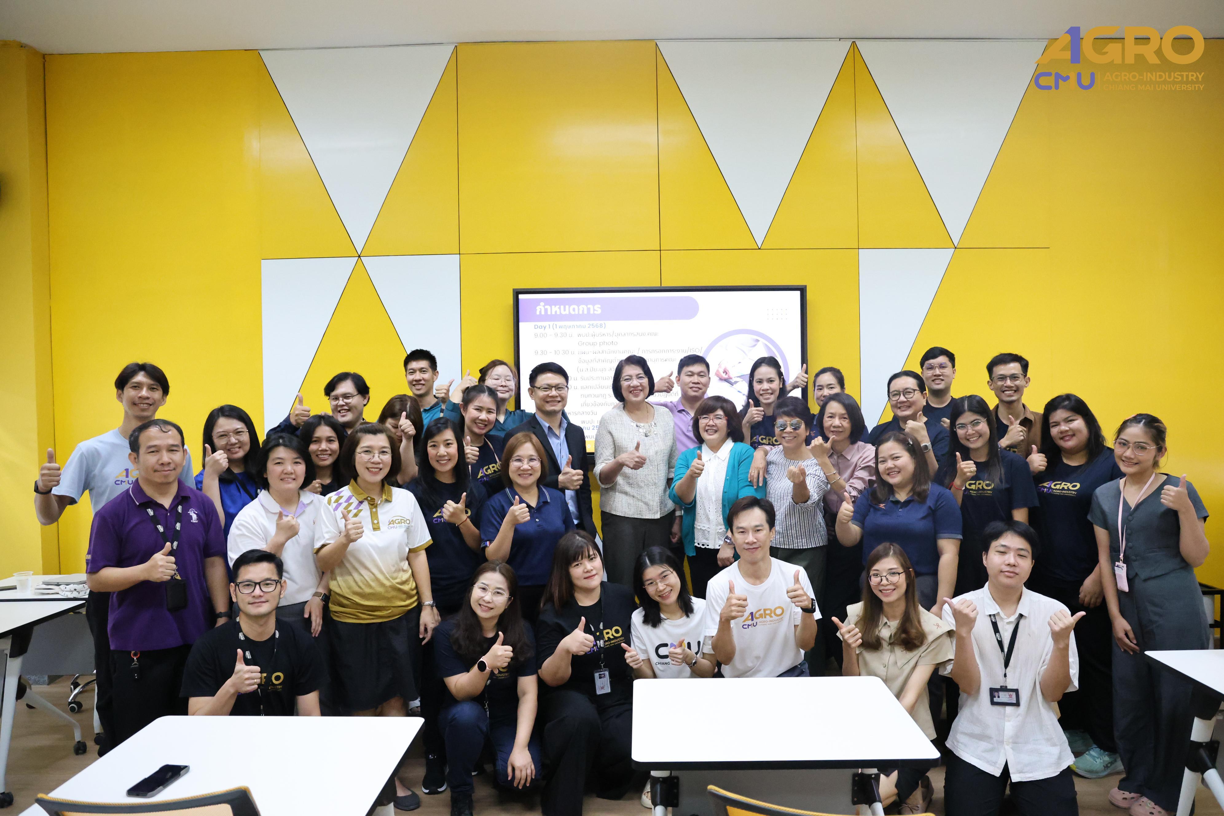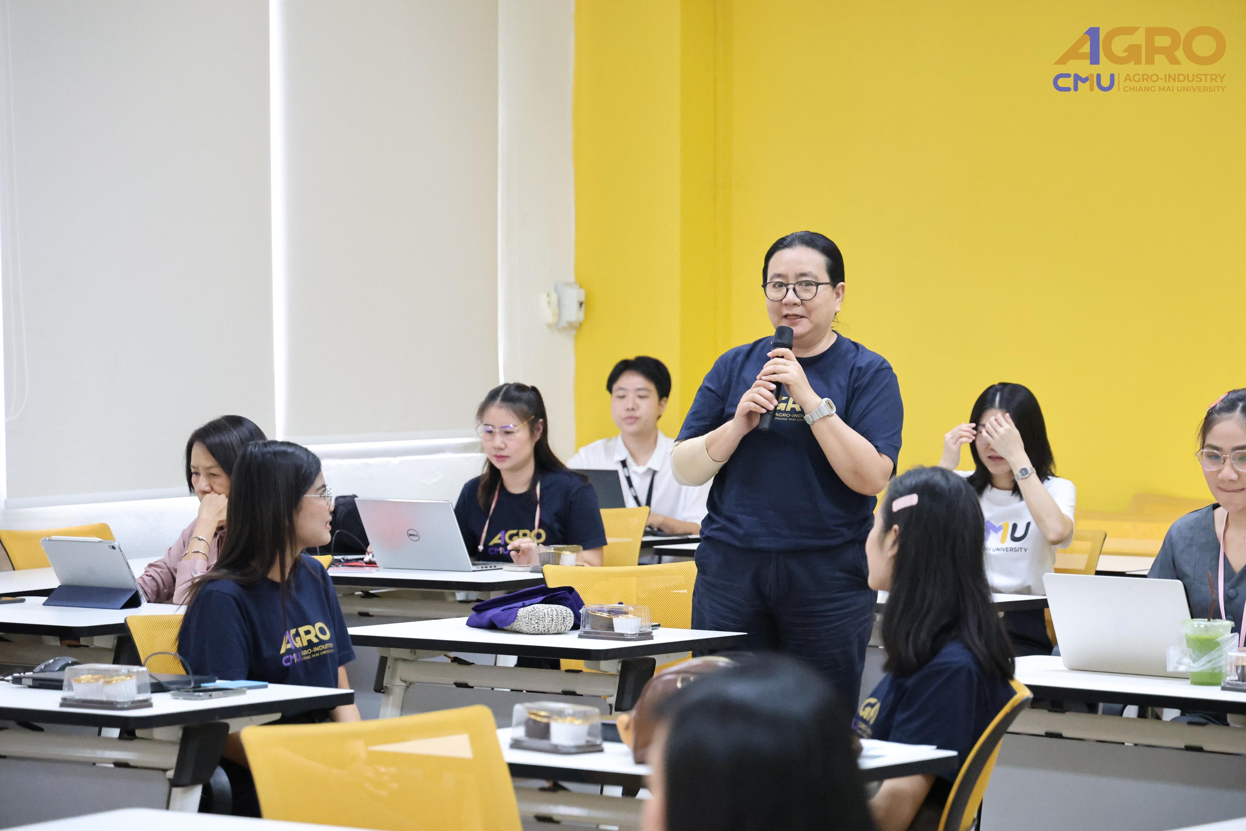 From May 1-2, 2025, the Faculty of Agro-Industry, Chiang Mai University, organized an activity for exchanging work methods among personnel from Chiang Mai and Samut Sakhon. This event involved staff from five departments under the faculty office. Assistant Professor Dr. Srisuwan Naruenartwongsakul, Deputy Dean, presided over the opening ceremony along with Assistant Professor Dr. Suphat Phongthai, Assistant Dean. Additionally, Ms. Piyanuch Sawasdee, Secretary of the Faculty of Agro-Industry, delivered a lecture on filling out General Functional workload forms, performance results according to the faculty office's indicators, and reviewing relevant rules, regulations, announcements, and practices. The event took place in Classroom 1-219, Building 1, 2nd Floor, Faculty of Agro-Industry, Chiang Mai University.