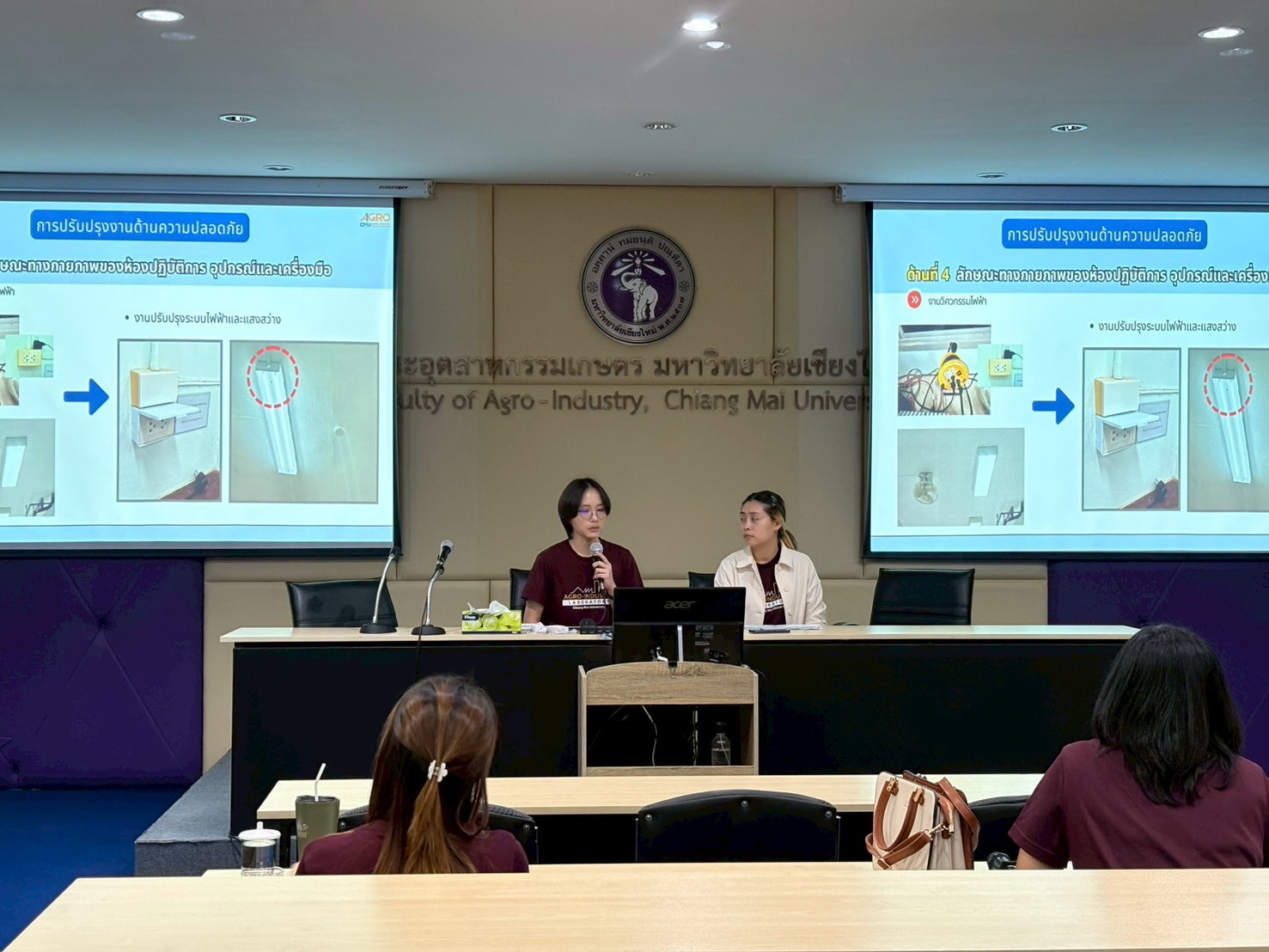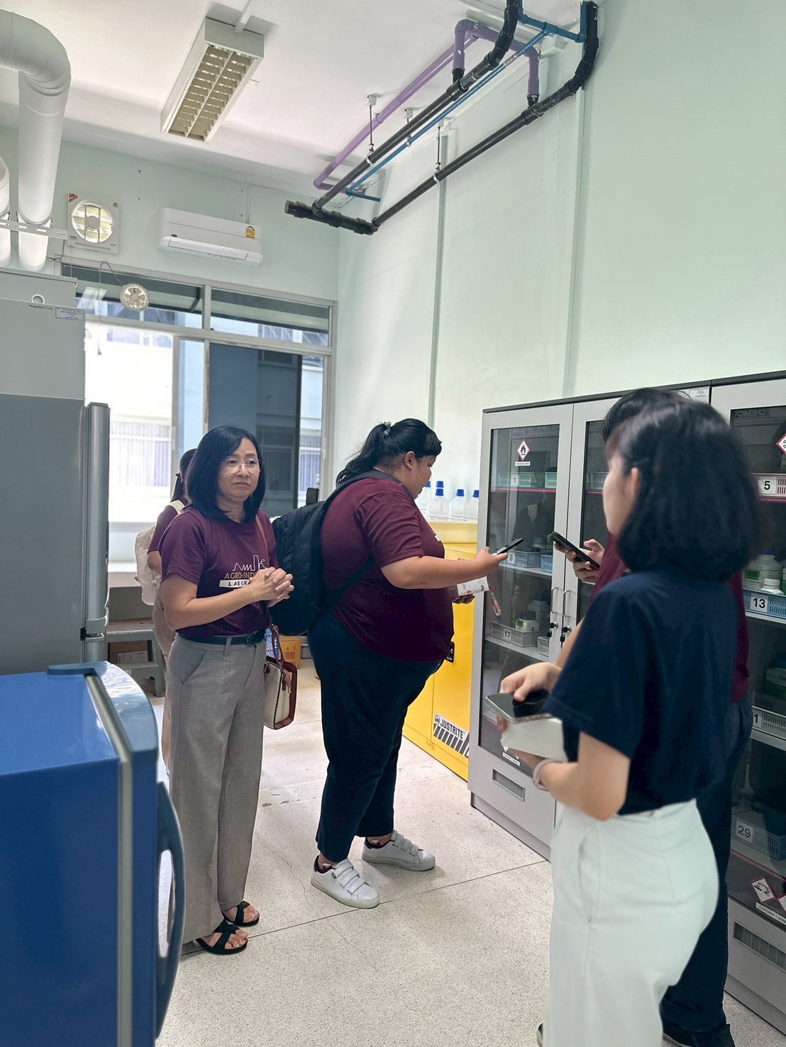 On Thursday, May 1, 2025, from 08:30 to 16:30, the Scientific Laboratory Division organized a knowledge exchange activity between the Scientific Operations Divisions of the Faculty of Agro-Industry, Chiang Mai University (CMU) and Samut Sakhon. The objective was to share experiences and best practices in laboratory management and scientific instrumentation, enhance laboratory safety standards related to chemical substances using the ESPReL Checklist, and promote the implementation of safety protocols for laboratories dealing with pathogens and animal toxins under the Pathogens and Animal Toxins Act, as well as Biosafety Level 2 laboratories.
